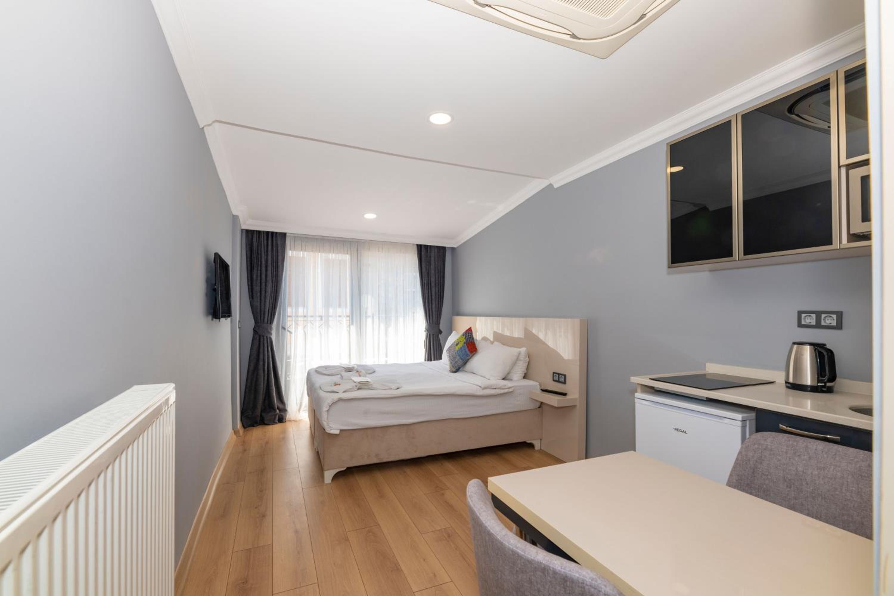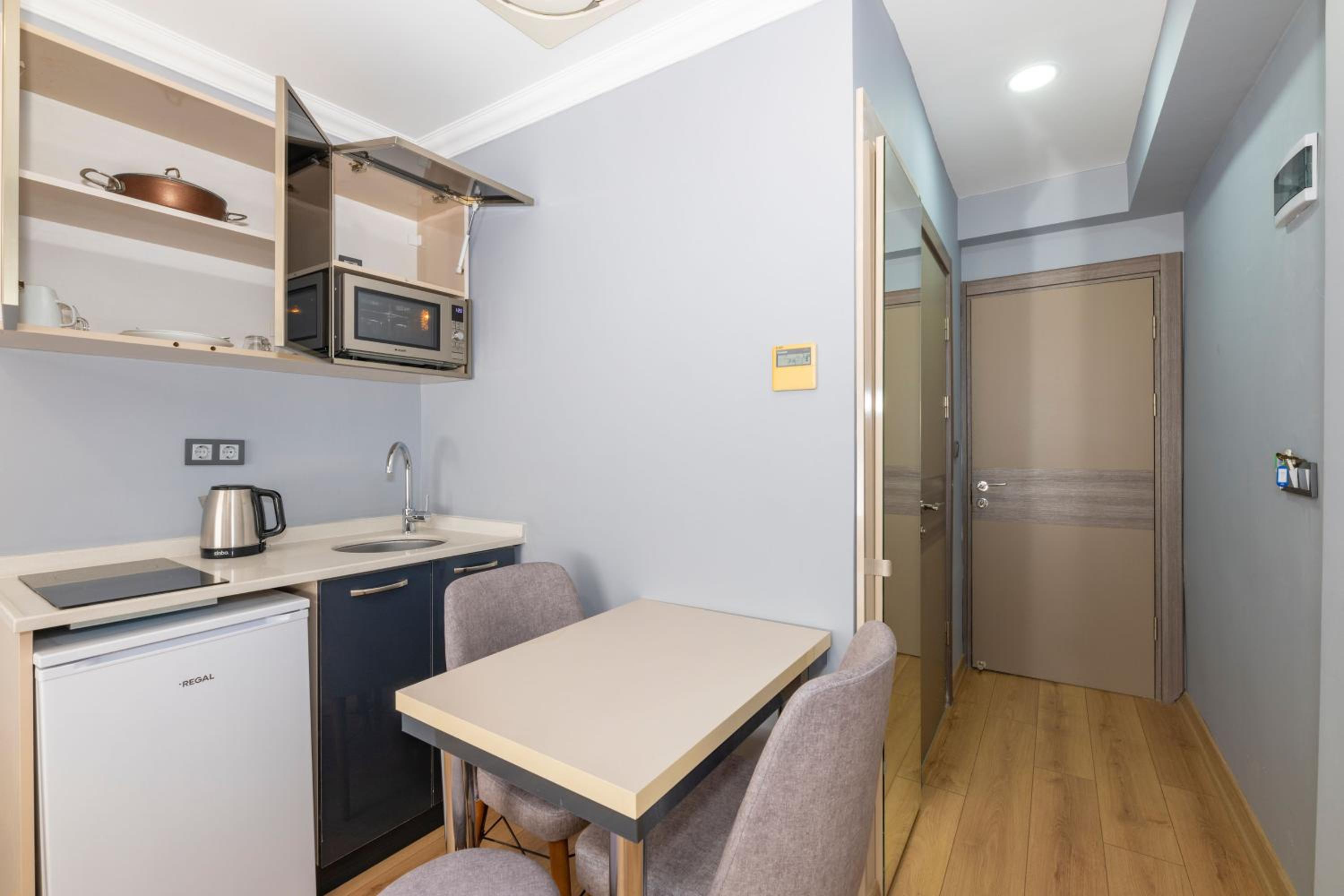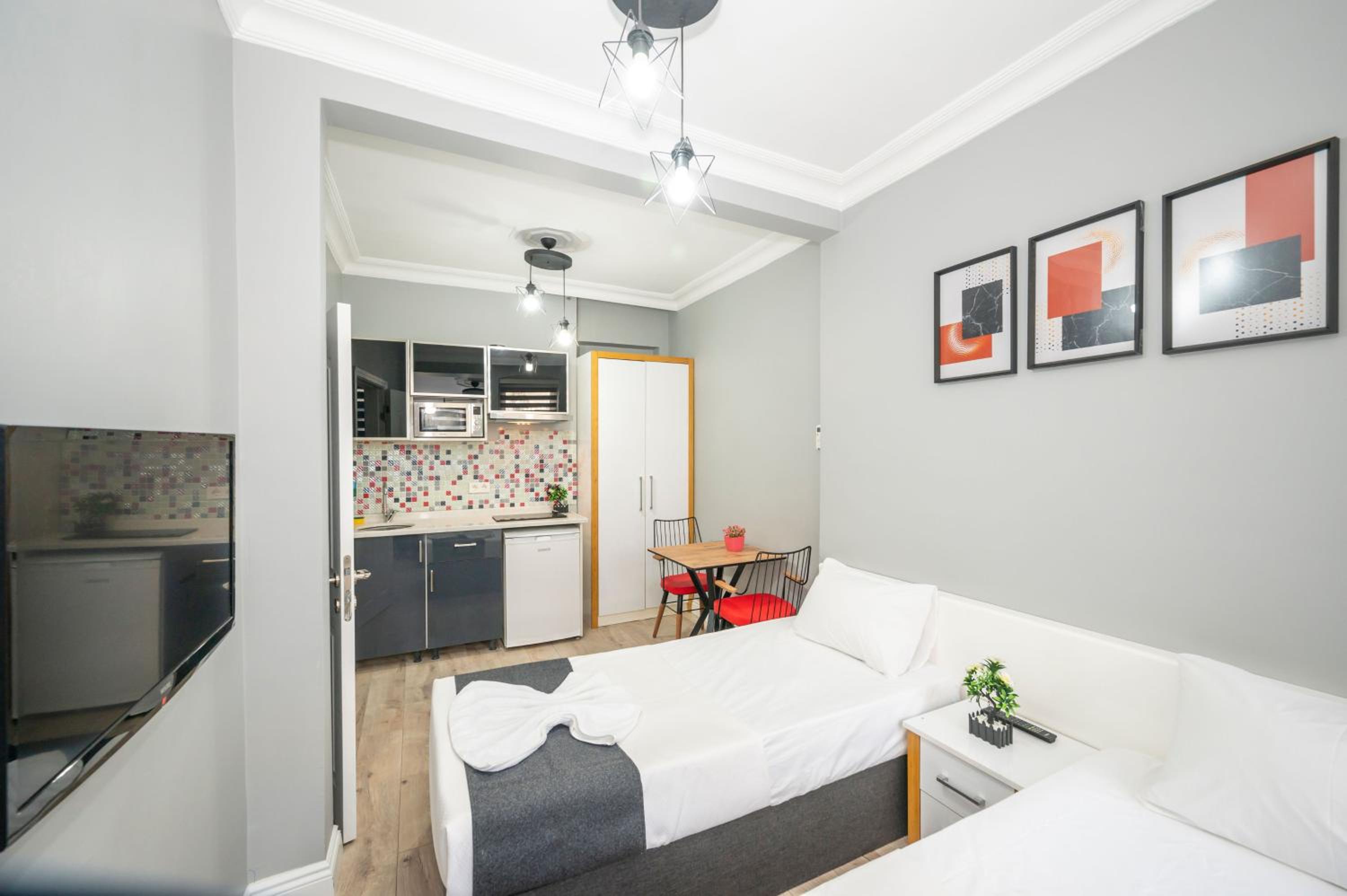 Enjoy the comfort of our spacious apartments featuring private kitchenettes, modern bathrooms, air conditioning, and complimentary Wi-Fi.
