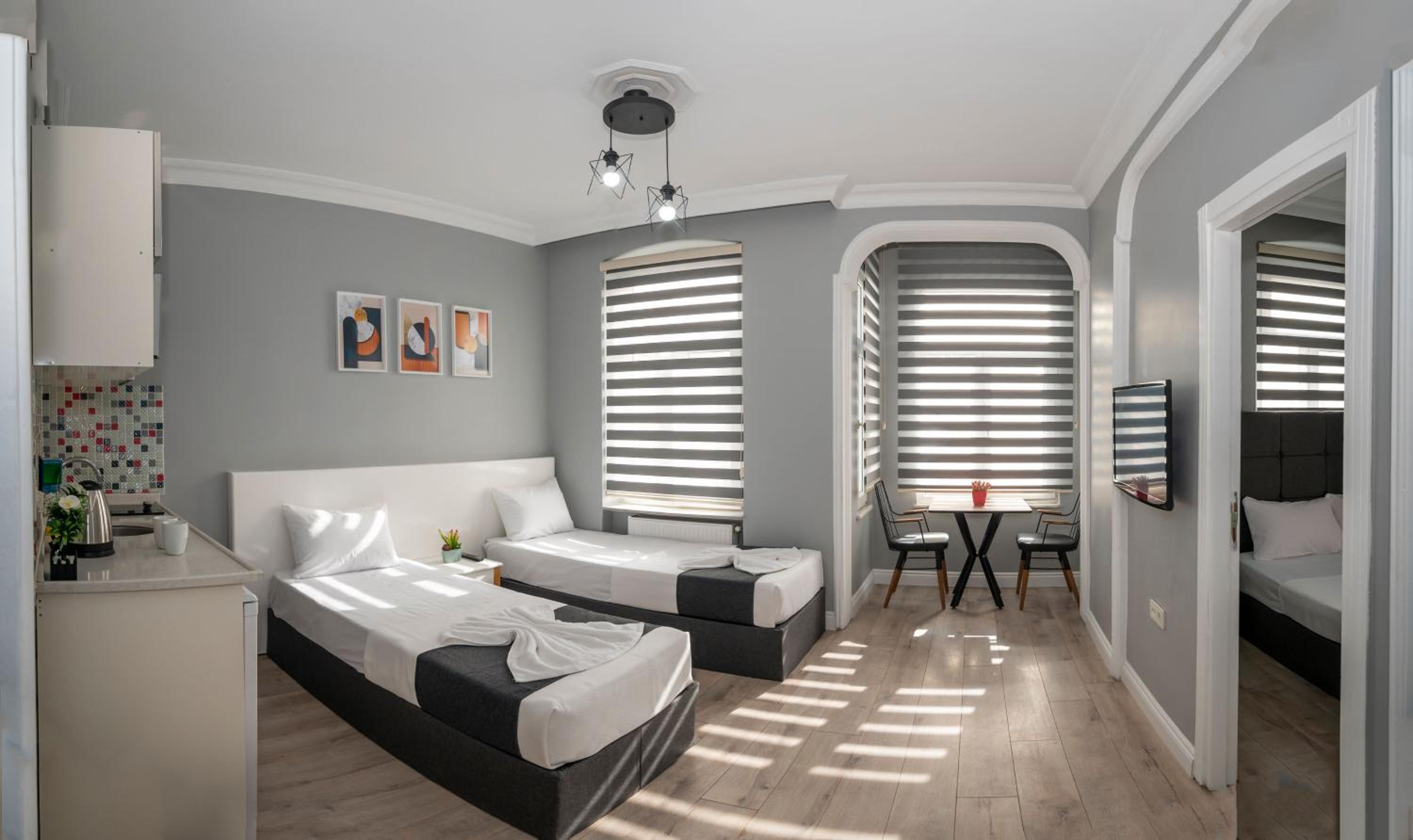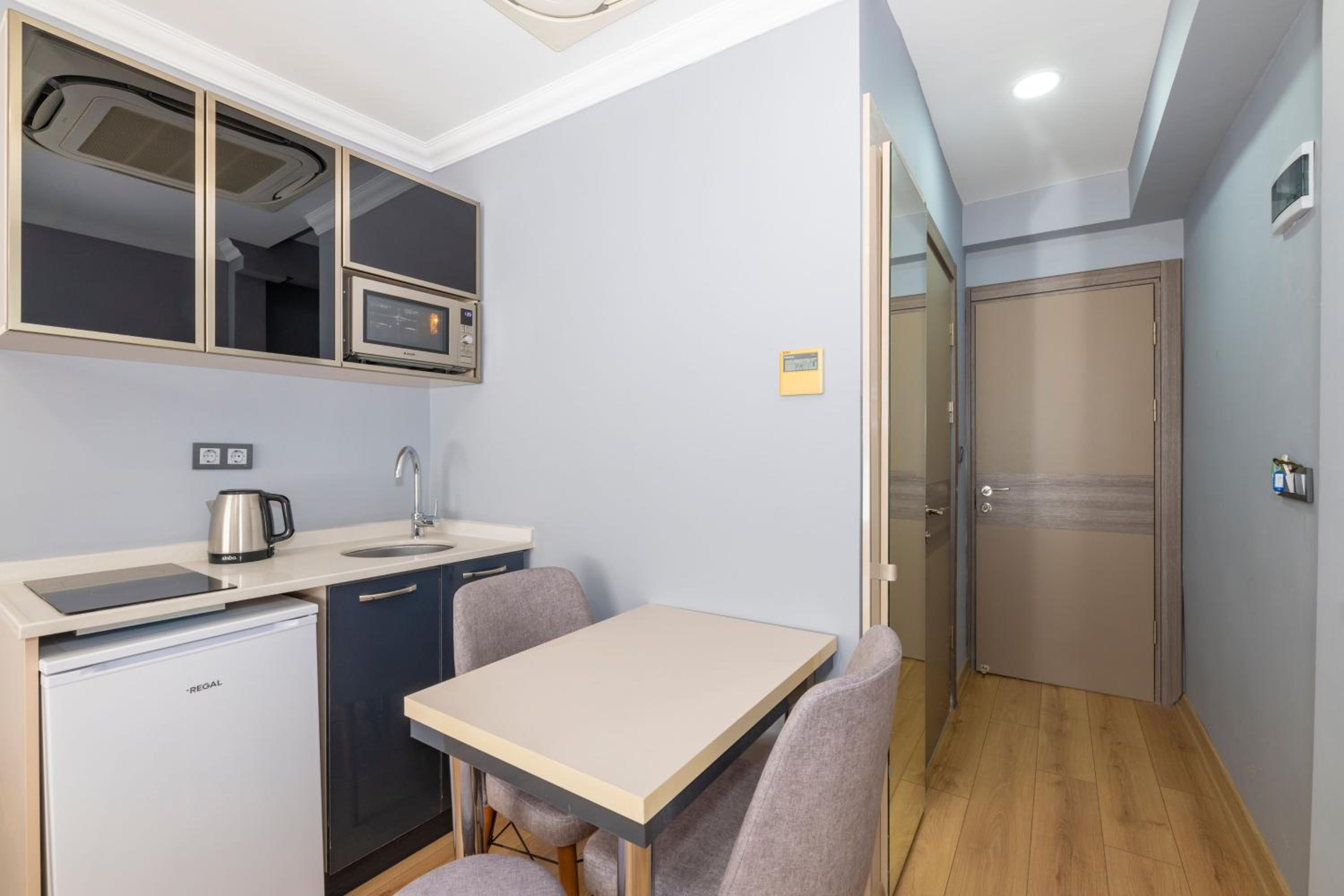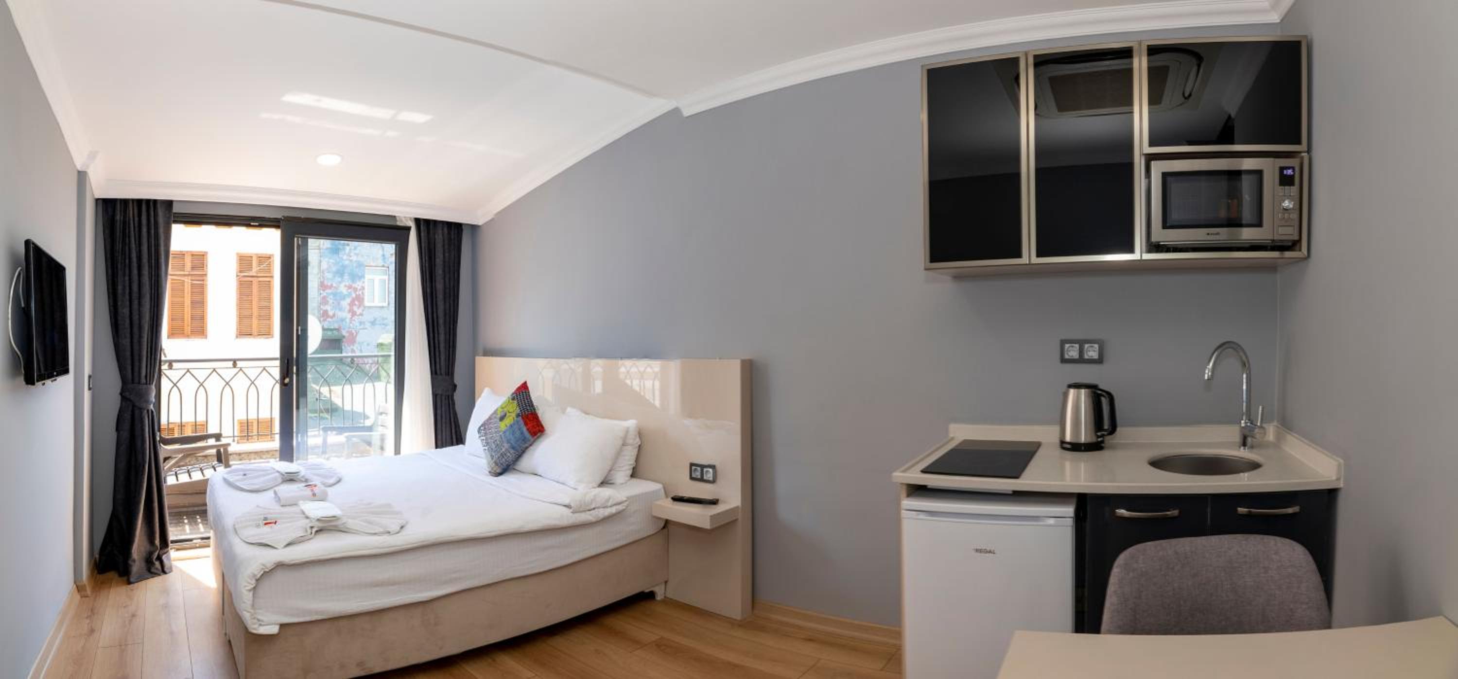 Enjoy the comfort of our spacious apartments featuring private kitchenettes, modern bathrooms, air conditioning, and complimentary Wi-Fi.