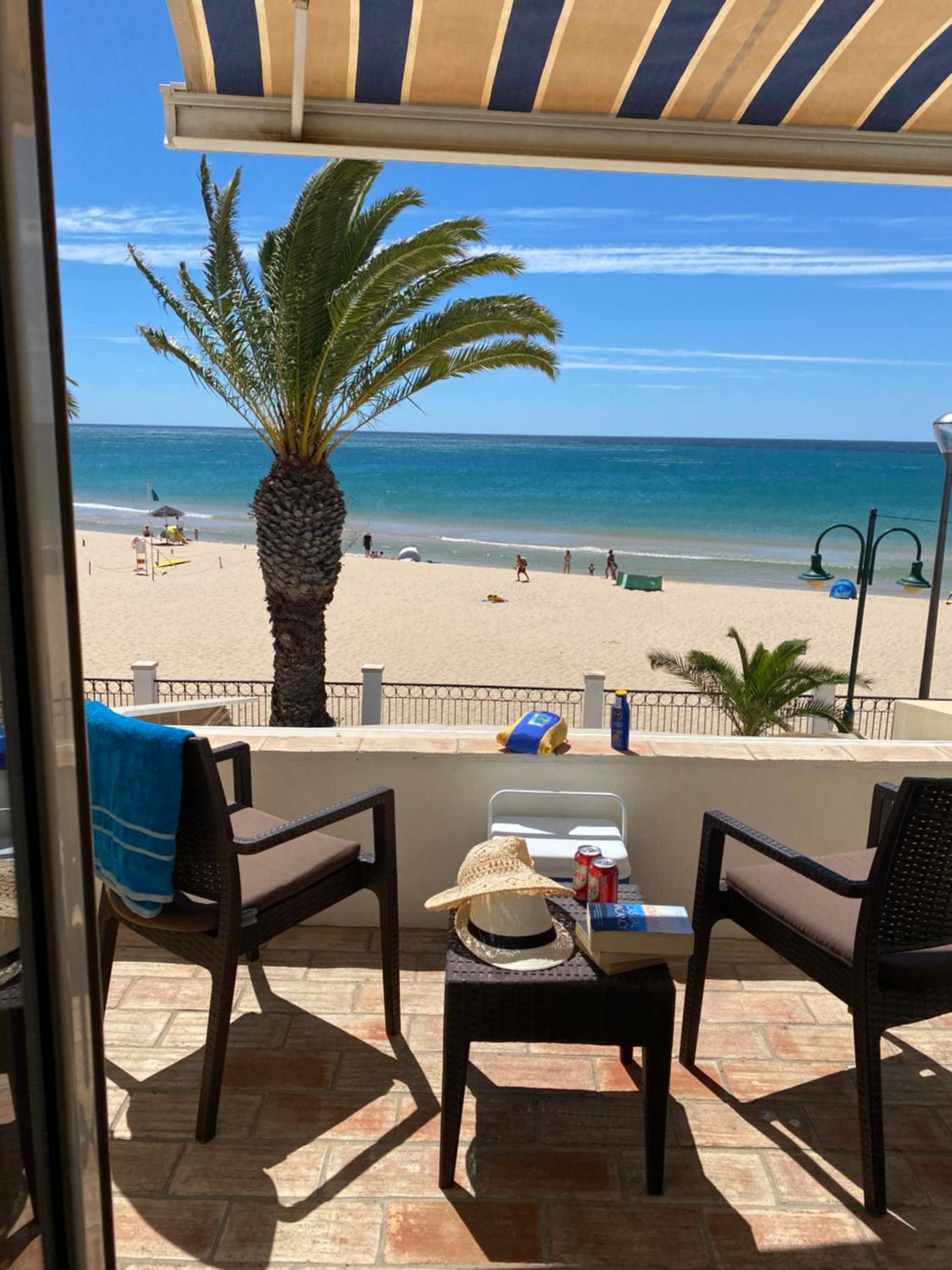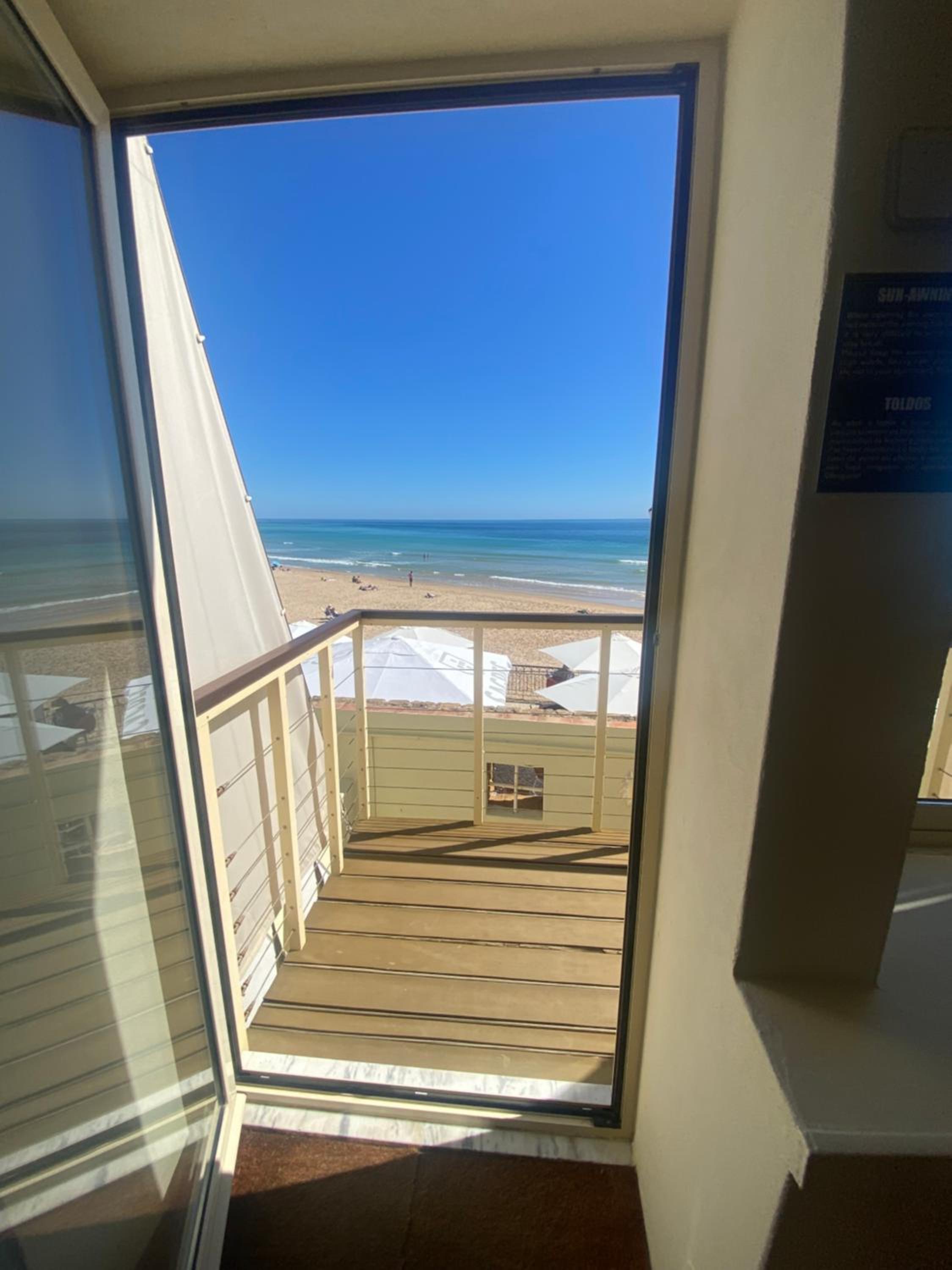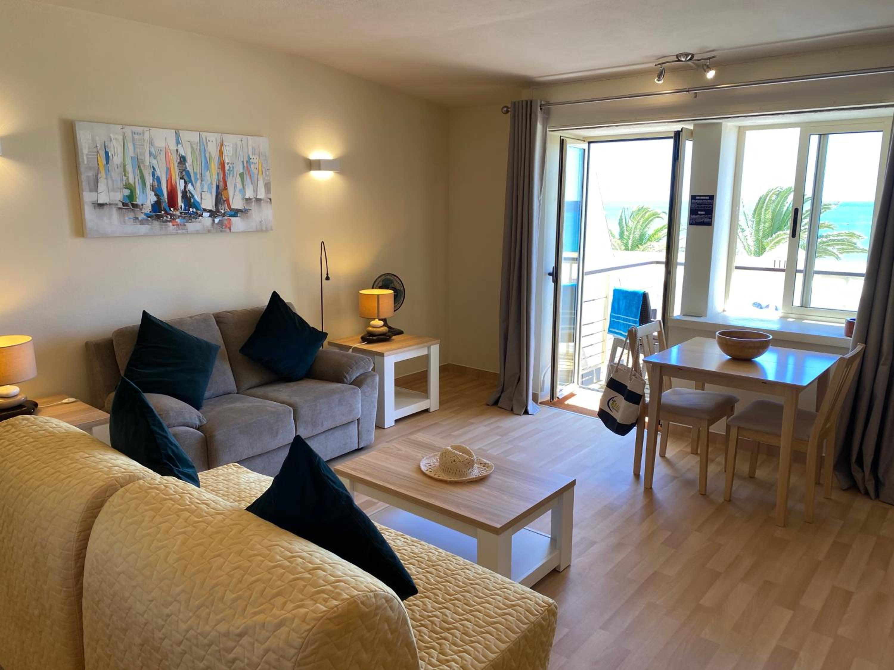 Convenient Amenities: Furnished balconies with sea views, beach picnic cooler box, parasol, and surf board provided. Relax on the south-facing terrace or explore nearby dining options and attractions.