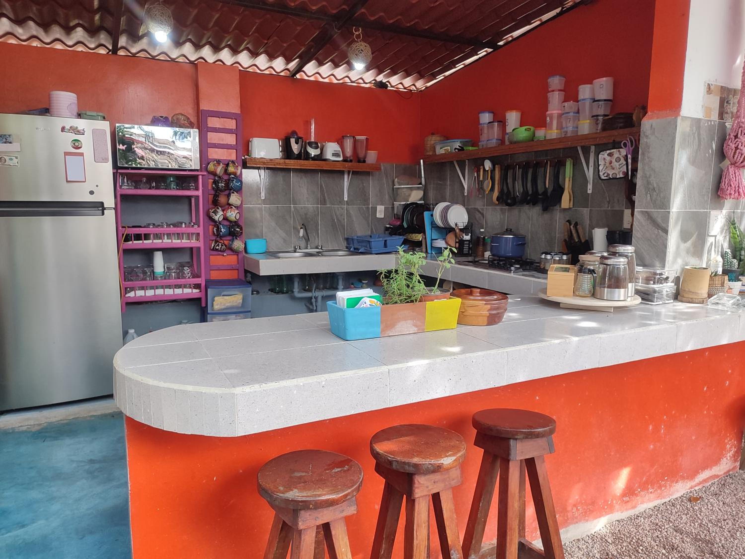 Nice hosts, we stayed twice and were able to leave bags in between. Well equipped outdoor kitchen and we got to try some fresh Guayabana from the garden.