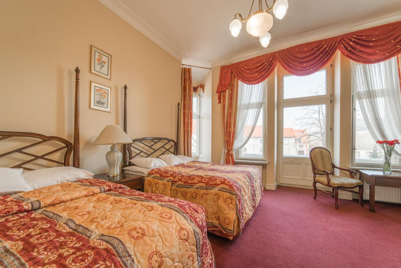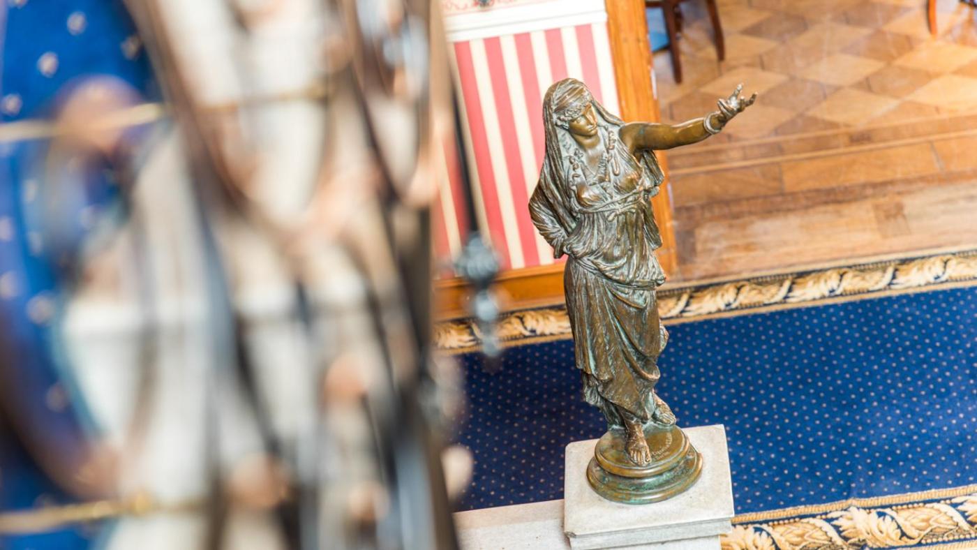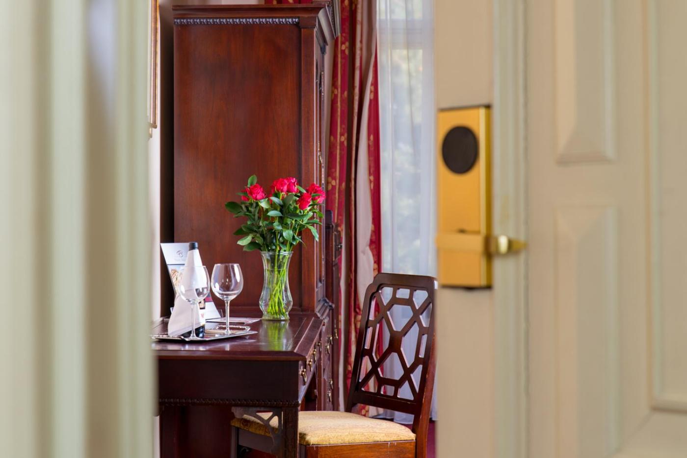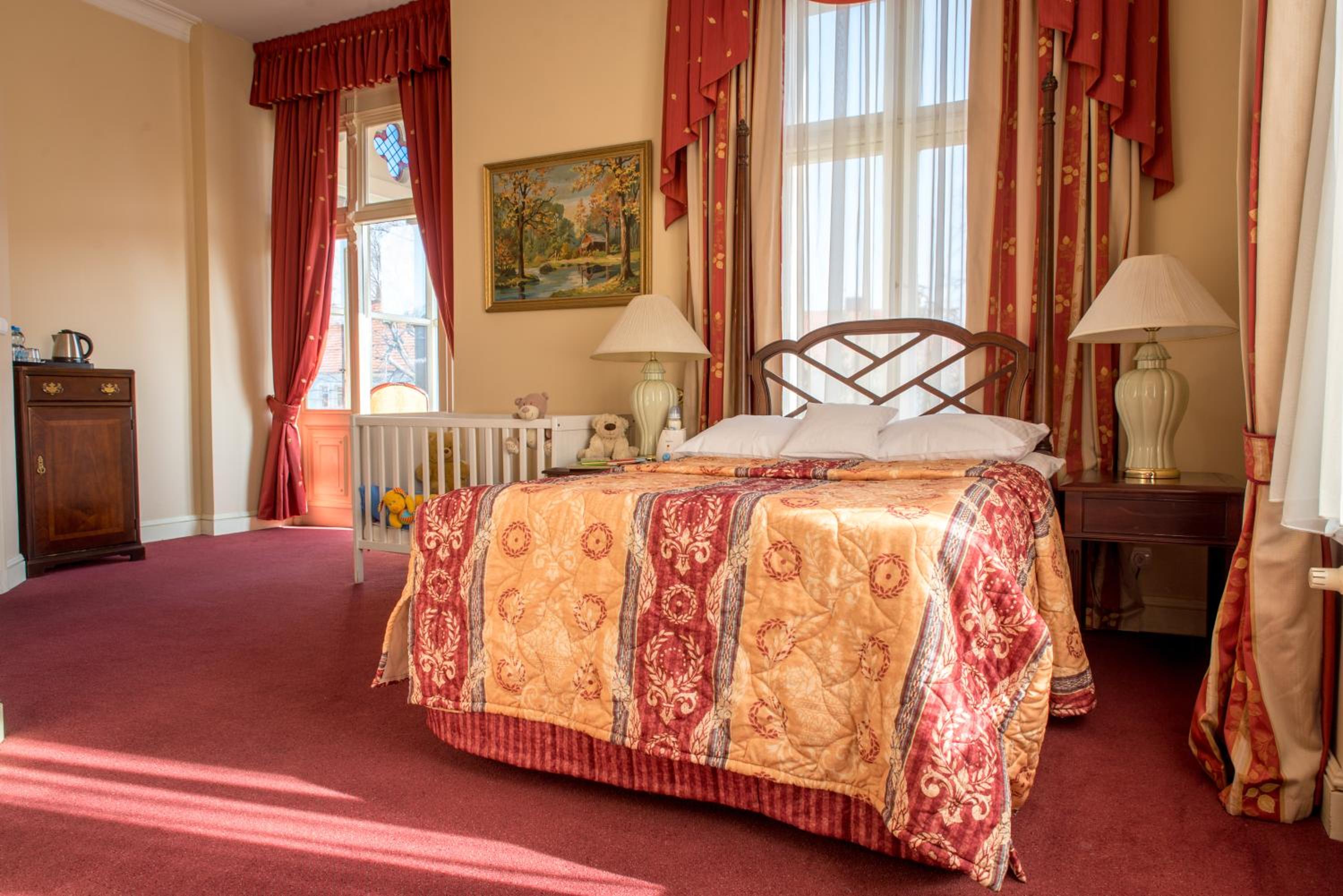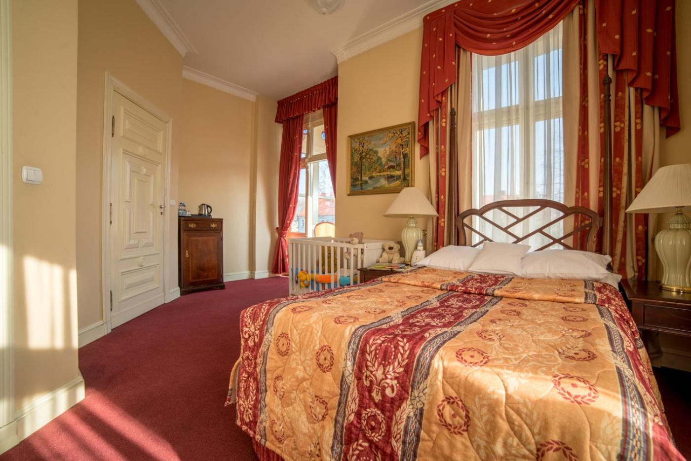 From 3 restaurant halls to a cellar pub adorned with beautiful frescoes, the hotel offers a variety of dining experiences. Guests can also unwind in the library, cocktail ballroom, or elegant billiards room.