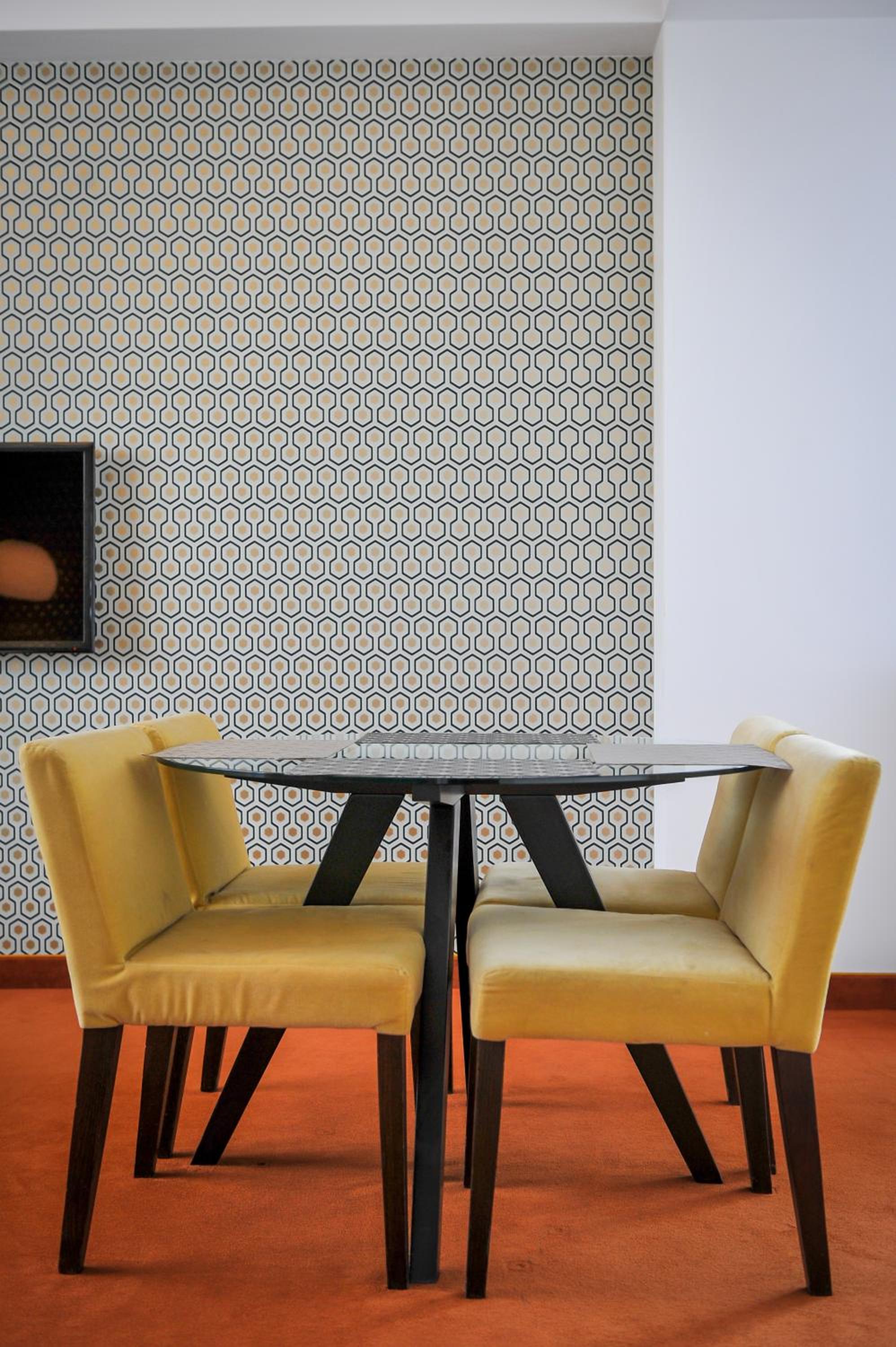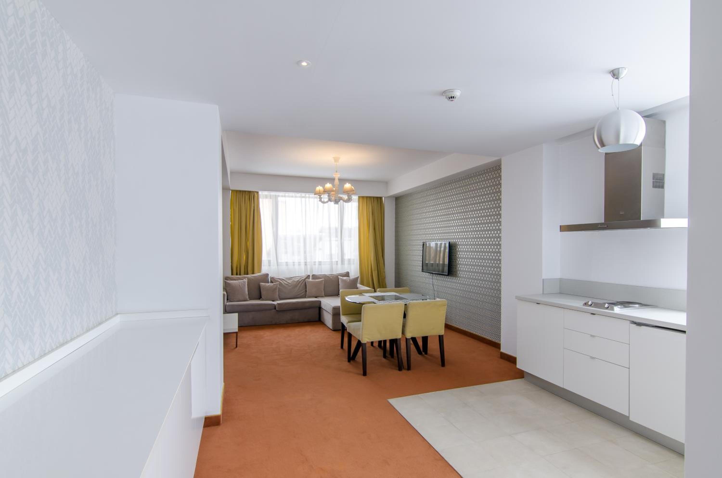 Indulge in modern comfort with self-catering apartments featuring cooking facilities and stylish bathrooms. Unwind in the elegant living room with a wall-mounted TV for entertainment.