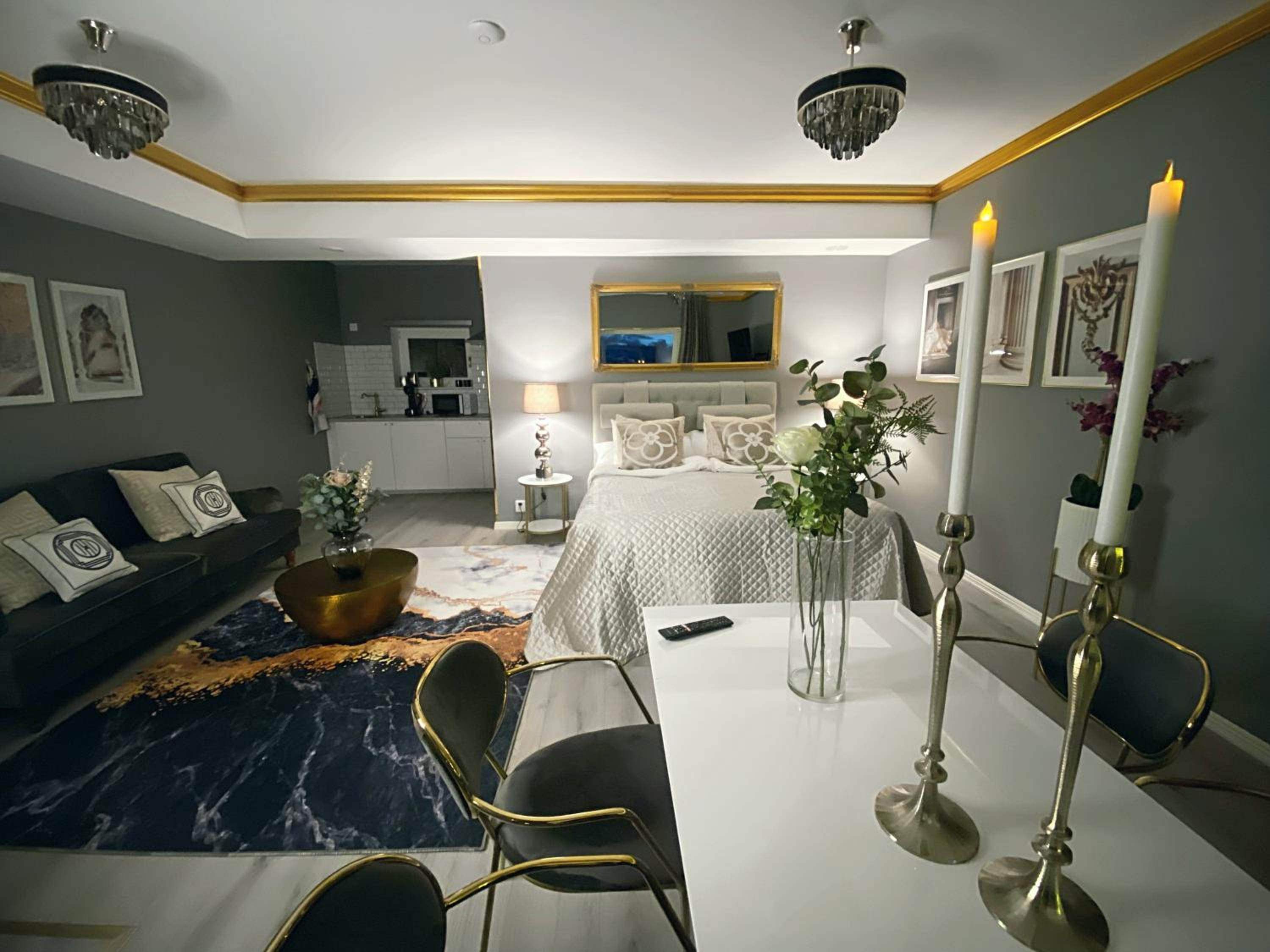 The rooms is absolutely gorgeous! Decorated with a lot of attention to details with a cool luxurious feel and look. The view is stunning with an amazing sunset over the sea.