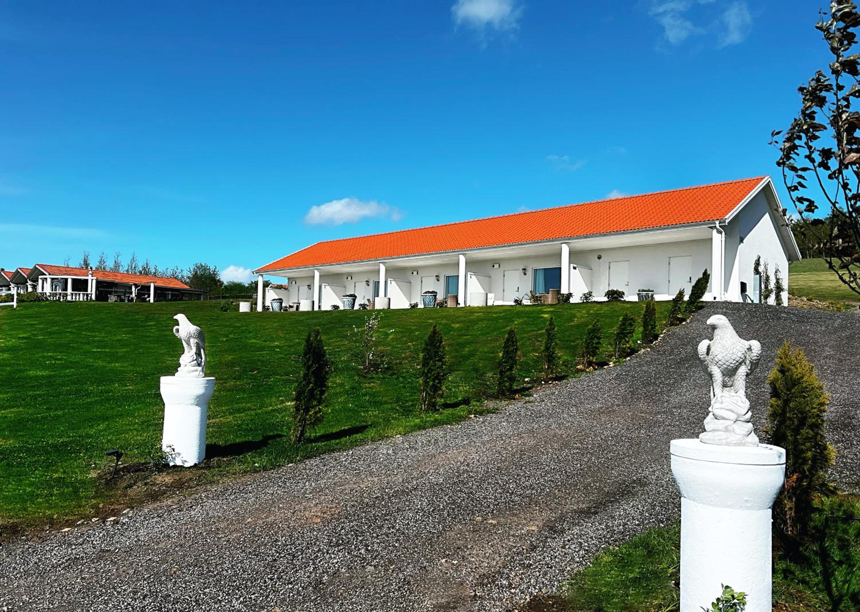 Fantastiskt beläget med en enormt vacker utsikt över grönskande sluttning och havet en bit bort. Mysig uteplats att njuta av den fina utsikten på. Där satt vi till sen kväll och tittade på solnedgång över havet. Tyst och lugnt. Fint, nytt och fräscht/välstädat boende som hade allt vi behövde. Ett boende med det lilla extra och jag skulle välja det framför ett traditionellt hotellrum alla dagar i veckan. Boendet gav oss lite känslan av att vara utomlands, sett både till inredning i rum och till fastighetens yttre och till kringliggande landskap. Utanför stadens sus men ändå väldigt nära till mycket. 10 min till Båstad, 5 min till havet. Smidig incheckning och utcheckning. Träffade ingen personal, därav kan jag inte betygsätta dem.