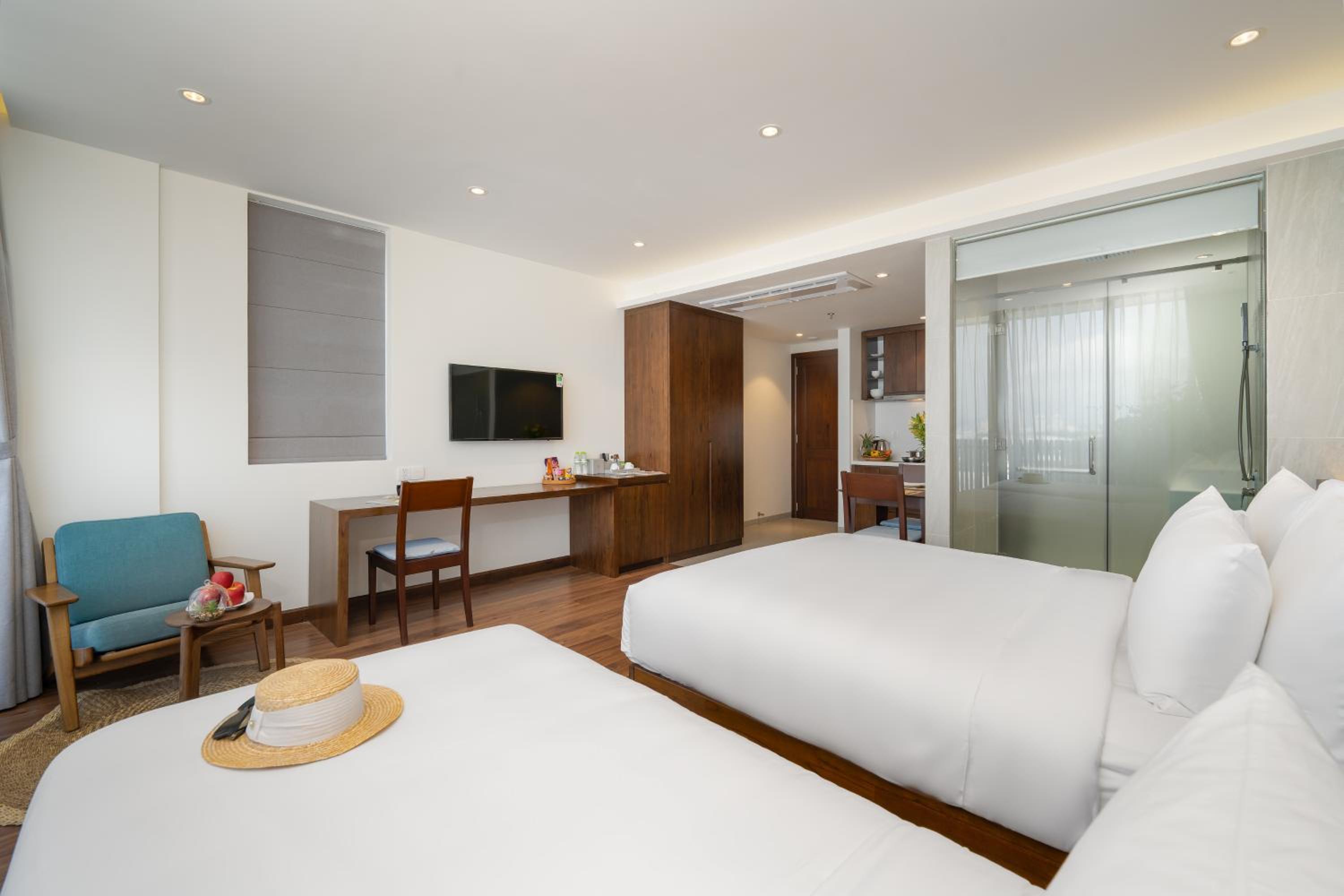Nice, clean apartment with the basic essentials provided. Big spacious room with a comfortable bed. Air conditioning worked well and was great after being in the Da Nang heat. They have a lift to go go up and down which works well and the pool on the top level was nice and provides a good view of the surrounding area.