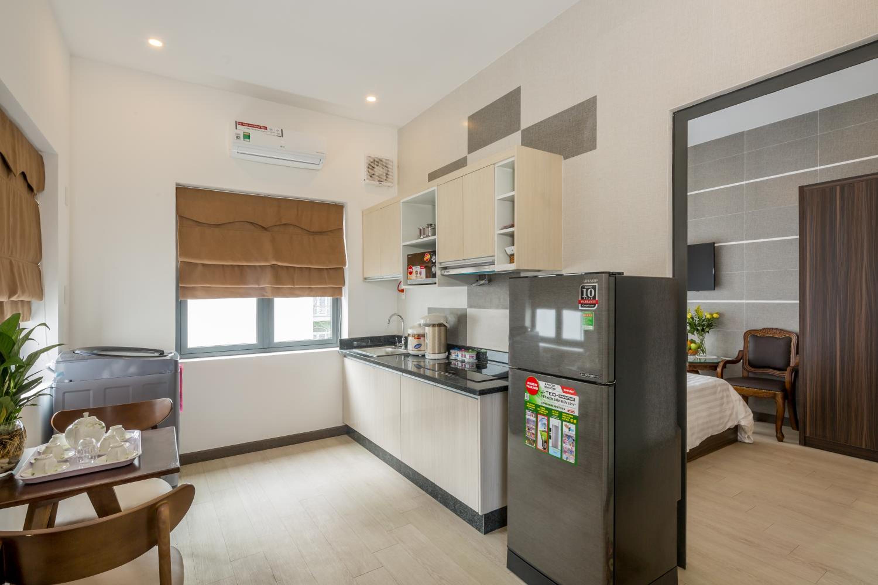 Modern Amenities: Each room at White Villar Đà Nẵng is equipped with air conditioning, a well-fitted kitchen, and a private bathroom with luxurious amenities, providing guests with a comfortable and enjoyable stay.