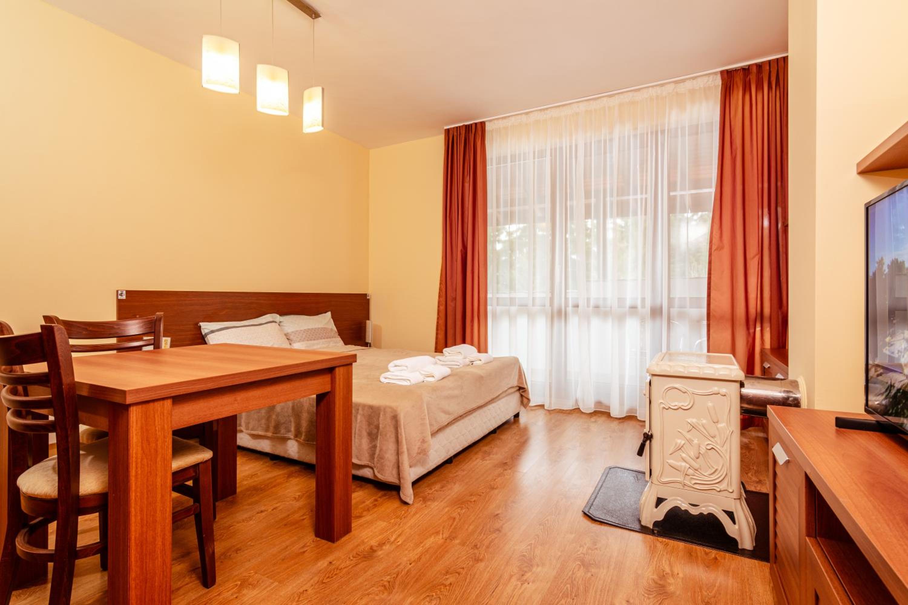 В студиото имаше всичко необходимо! Беше много топло, въпреки минусовите температури навън, а от терасата се открива страхотна гледка. Камината, снегът навън и уютната обстановка направиха престоя ни наистина незабравим.