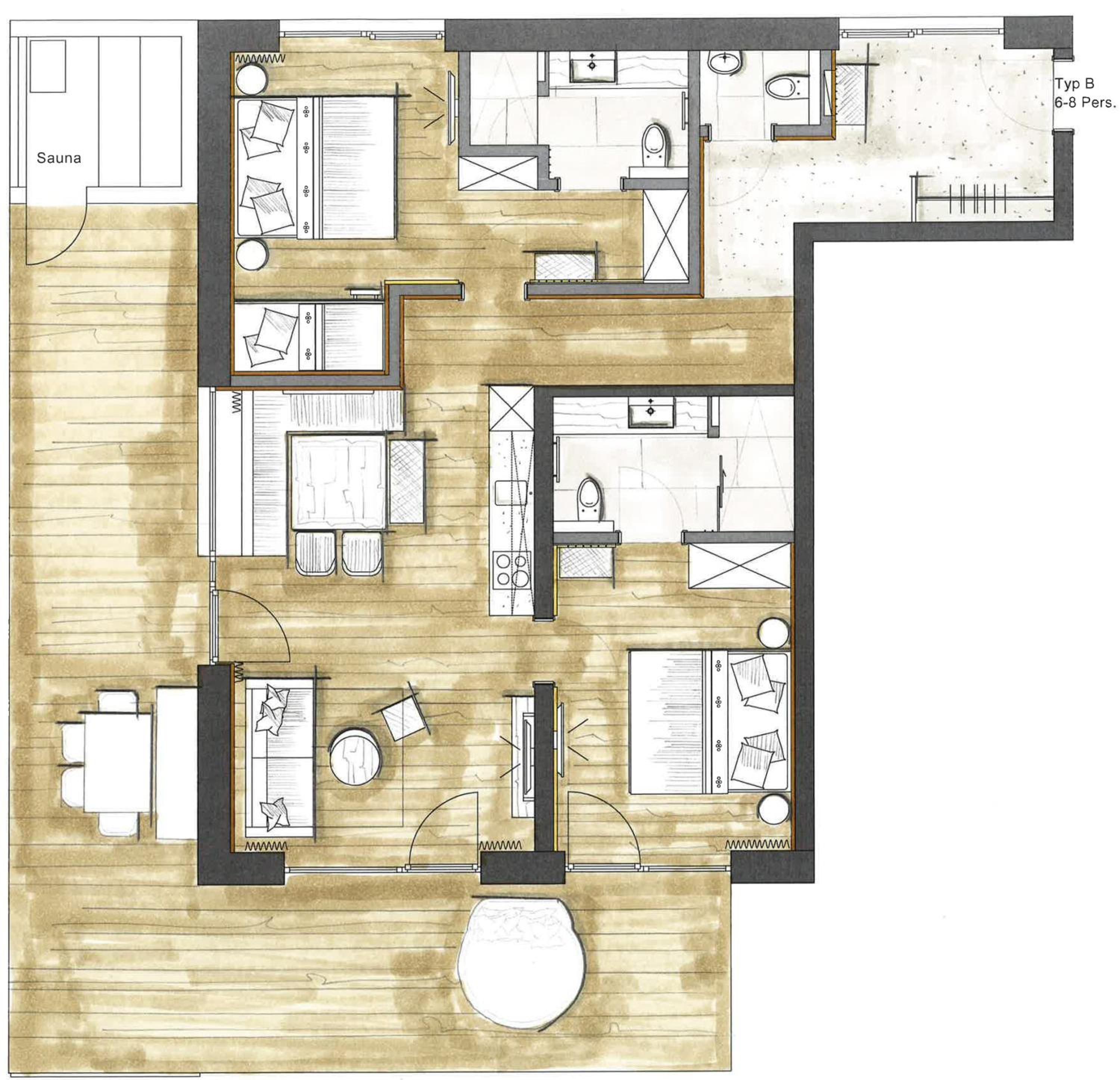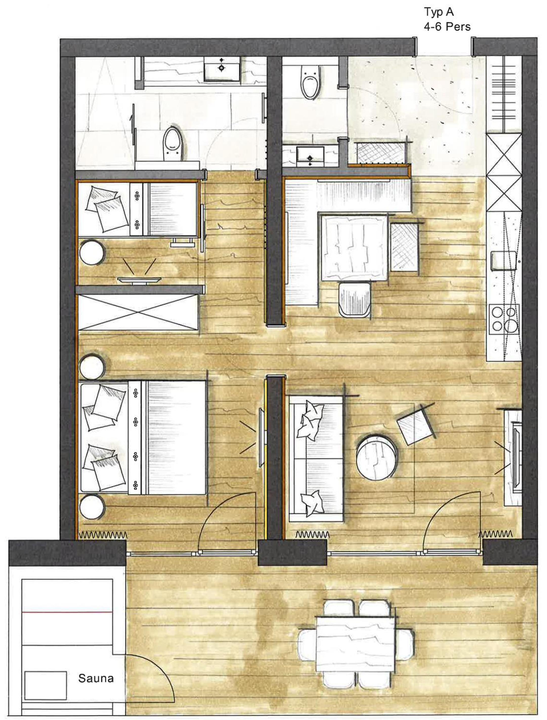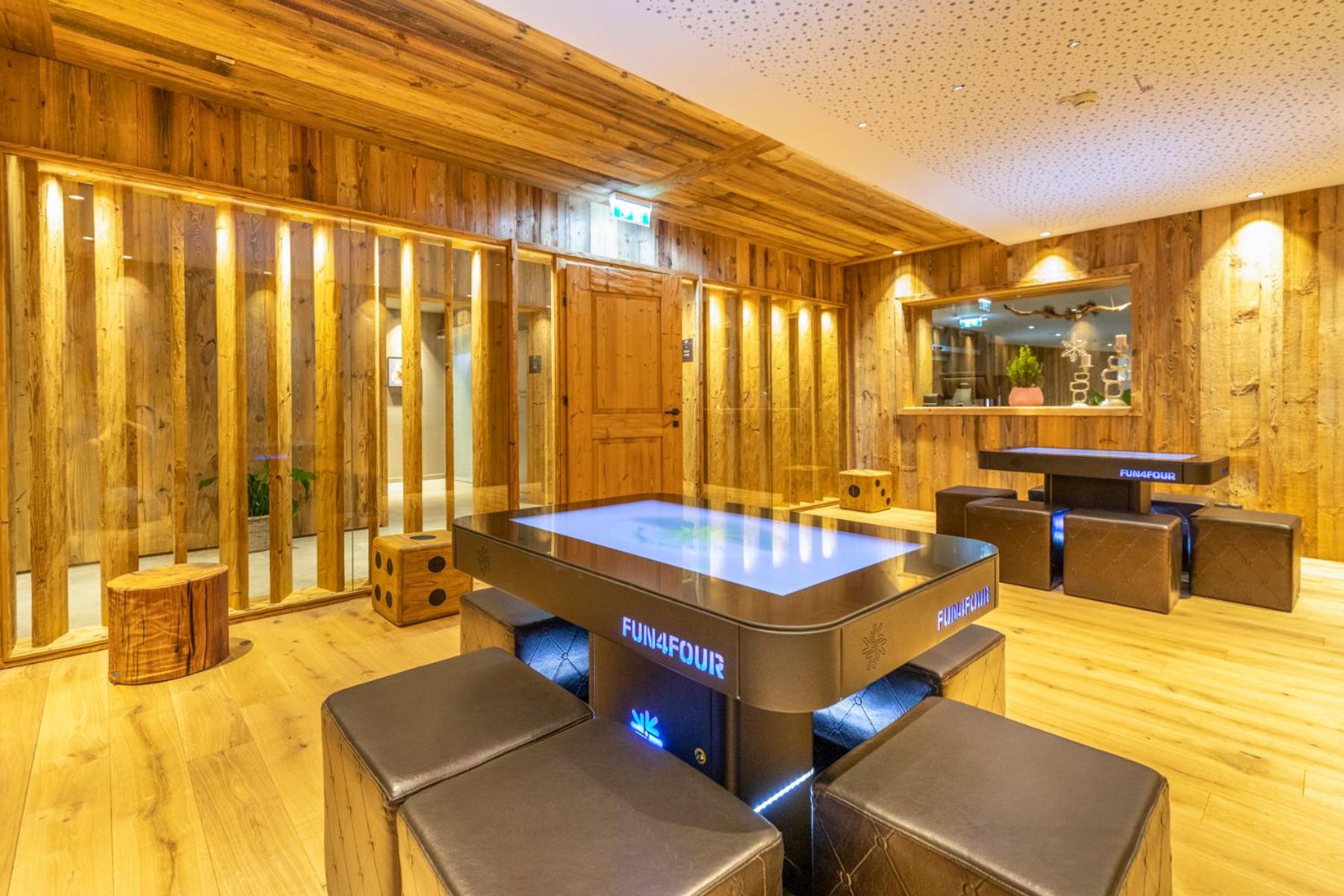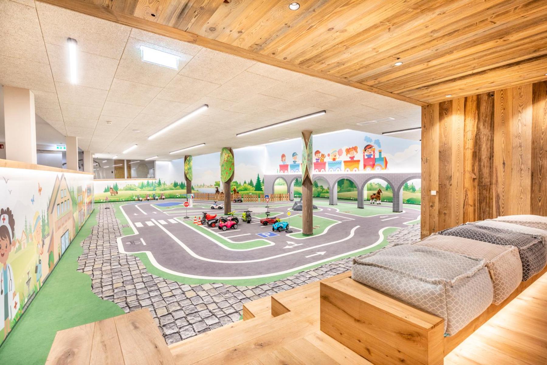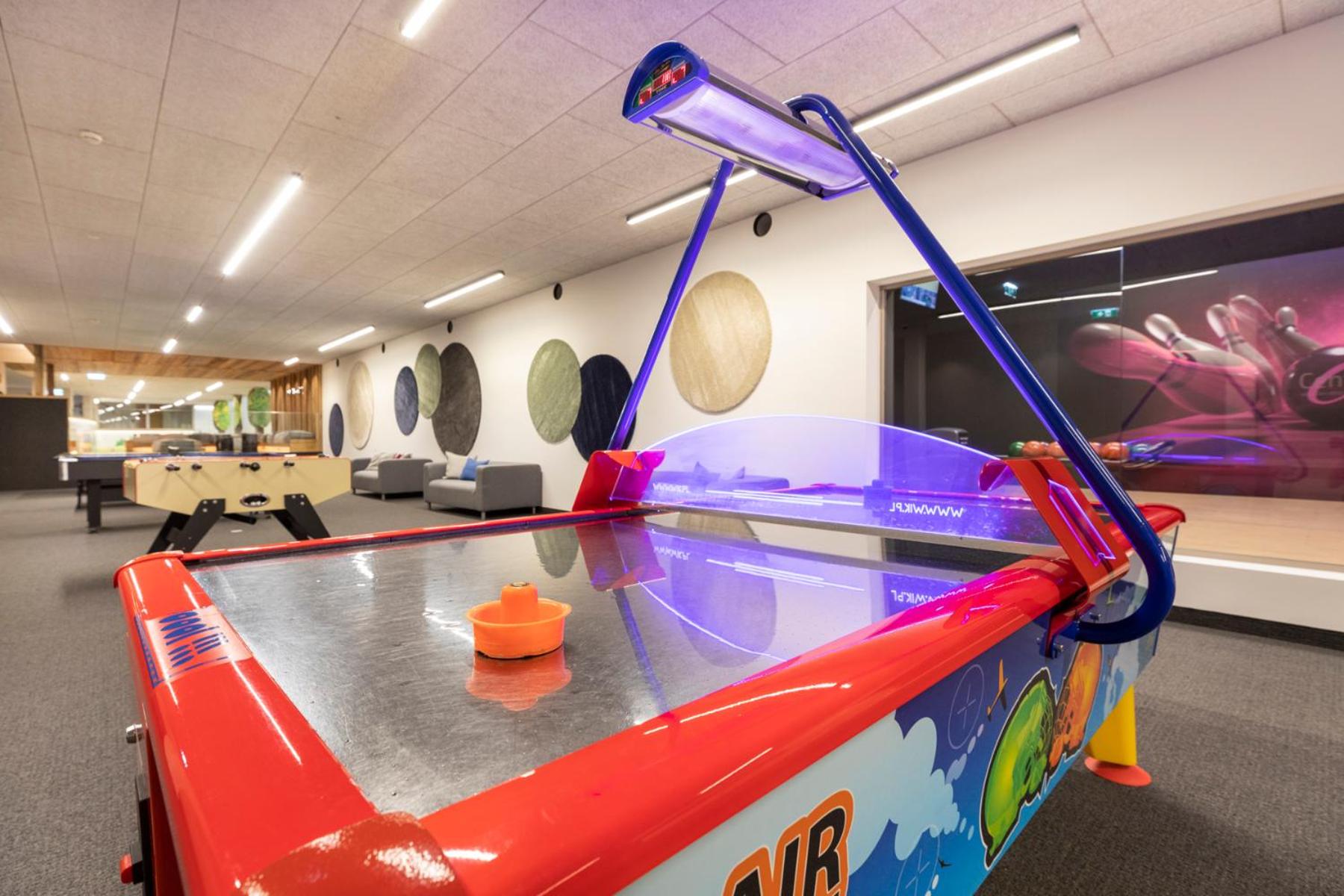 Möglichkeit zu diversen sportlichen Aktivitäten (Tischtennis, Bowling, Fussball,Trampolin, Fitnessgeräte. Ein grosse Kinder spiellandschaft und ein Kinosaal für Klein und Gross.