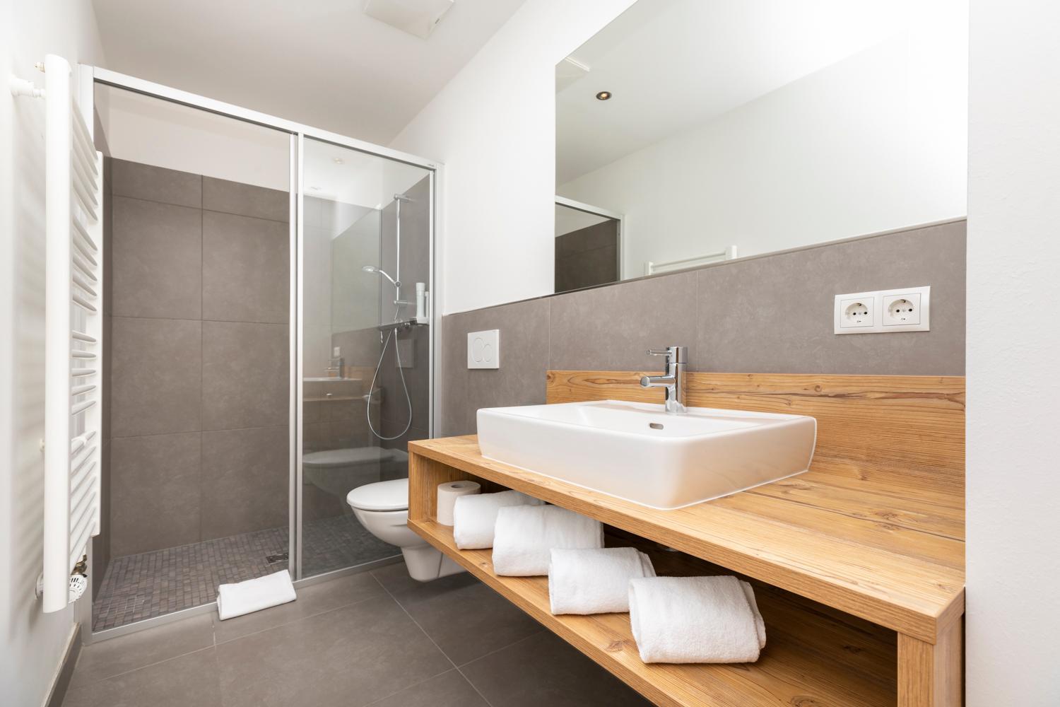 Man würde erwarten, dass in so einem gehobenen Appartementhotel Bademäntel vorhanden und im Hallenbad Badetücher zum Wechseln vorrätig wären.