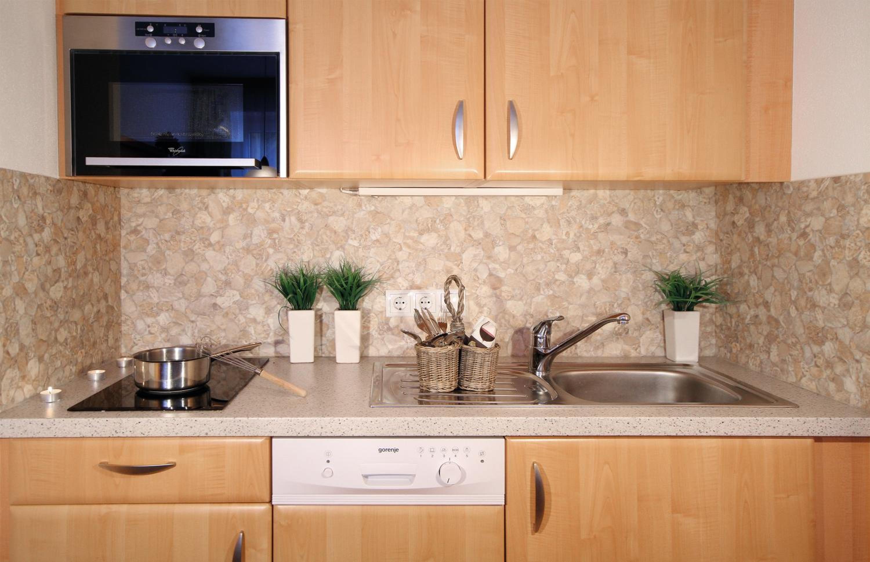 Plně vybavená kuchyňka, včetně myčky na nádobí. Prostorné pokoje, velké postele. Příjemné prostředí.