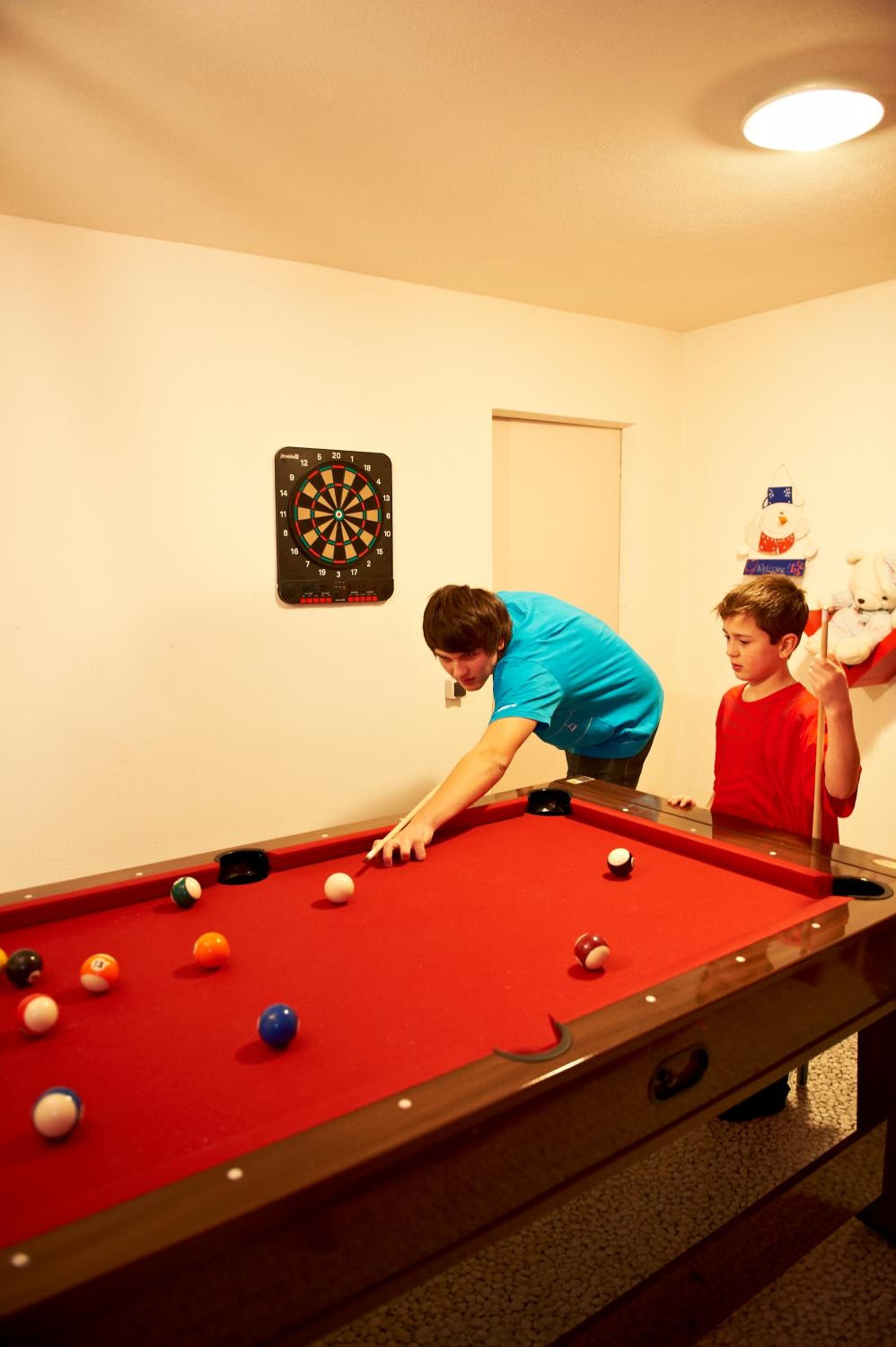 Schöner Welnessbereich und großzügiger Aufenthaltsraum. Fitnessraum mit Tischtennisplatte und Spielraum mit Billiard und Dart für die Kinder!