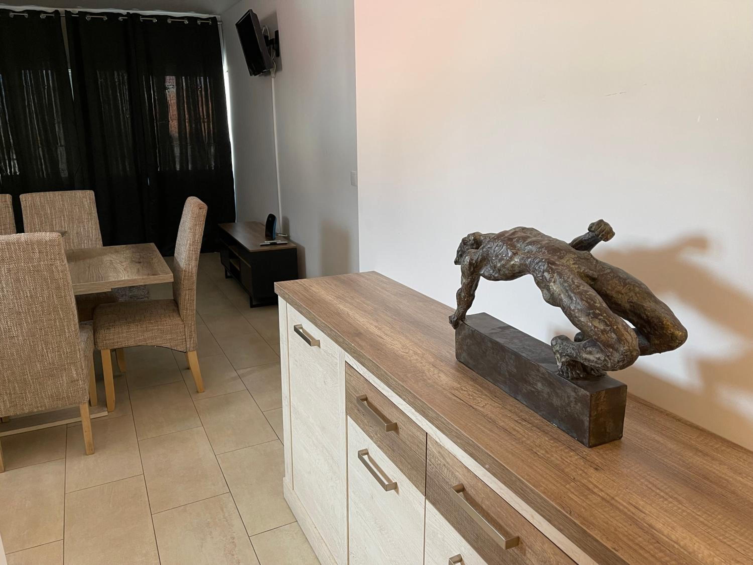 Na een tijdje was het warme water op dus dit was vervelend voor de persoon die als tweede ging douchen. Keukengerei voelde wat muffig/ oud. Inchecken ging telefonisch, onze vlucht kwam heel vroeg aan maar we konden niet eerder inchecken.