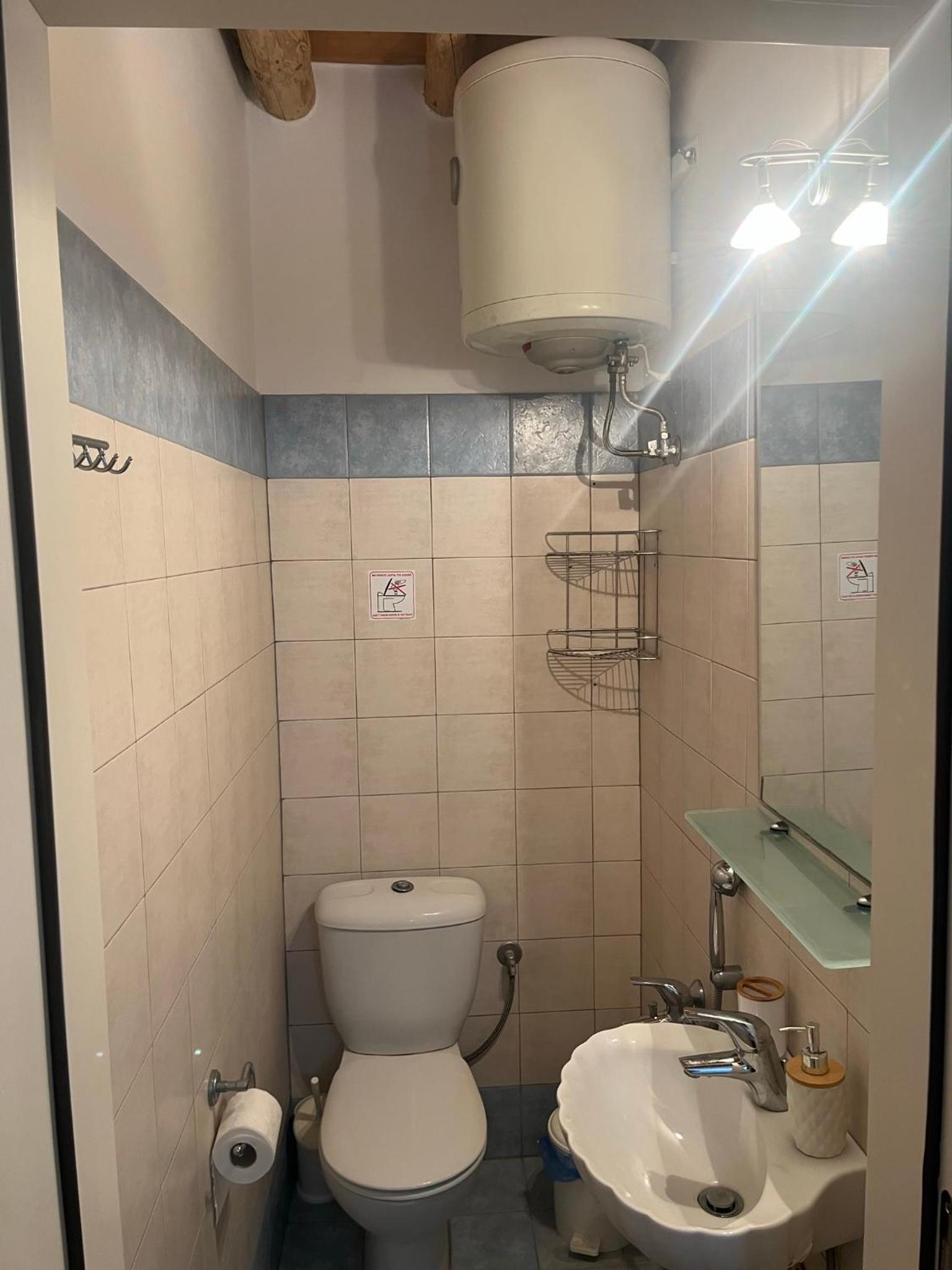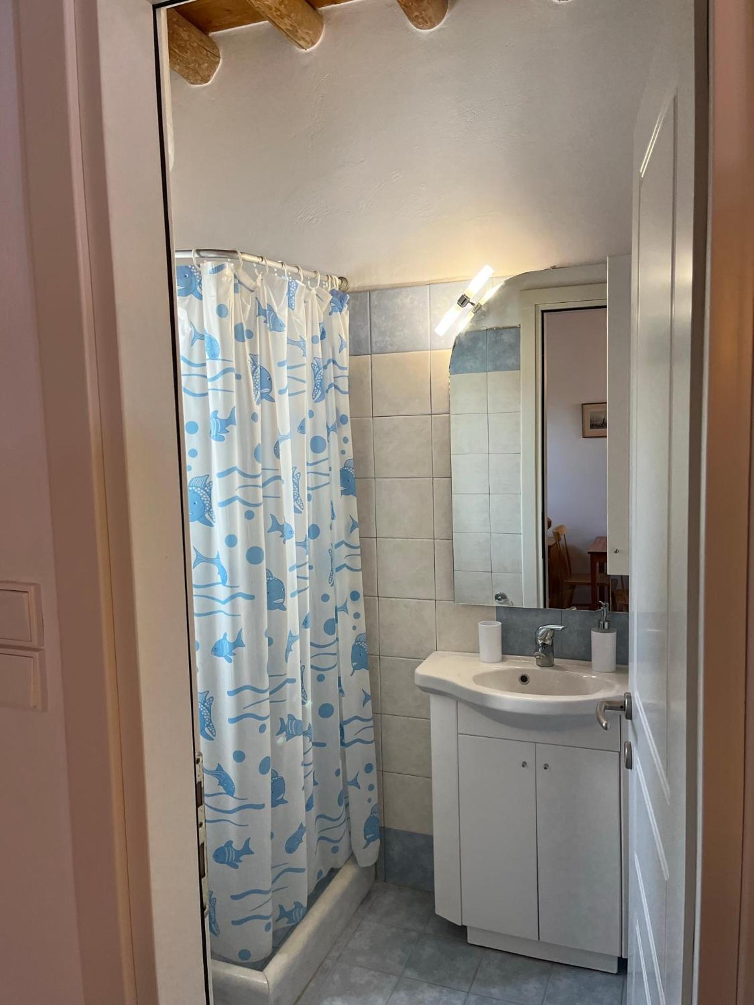 Shower curtain might be renewed & bathroom is quite tiny (which is often the case in Greece though)