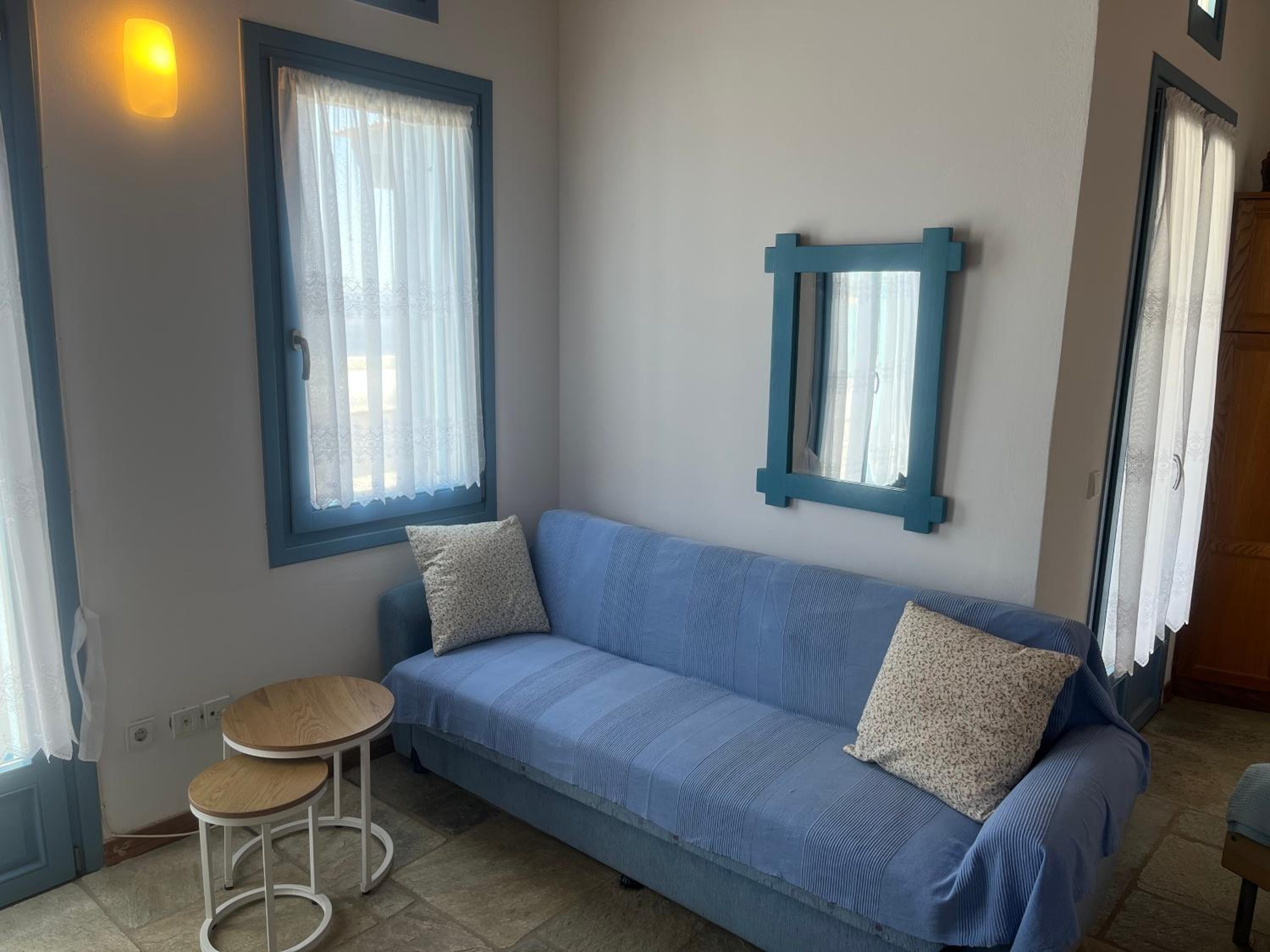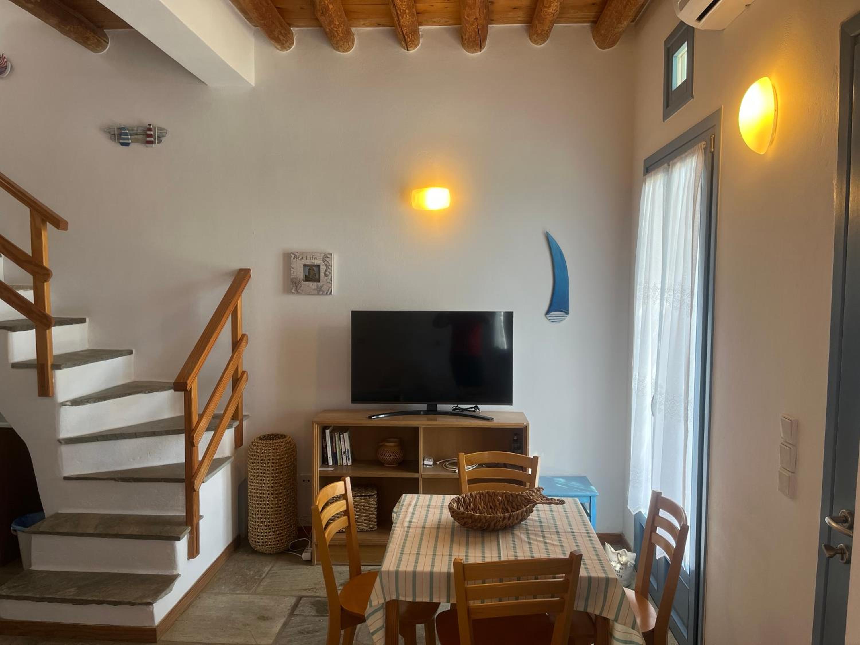 Struttura molto bella, tipicamente greca, ampi spazi esterni, confortevole, in una posizione fantastica, vista mare stupenda, splendida vegetazione, spiagge raggiungibili a piedi, taverne e bar nelle vicinanze, host gentilissimo e premuroso, bellissimo soggiorno.