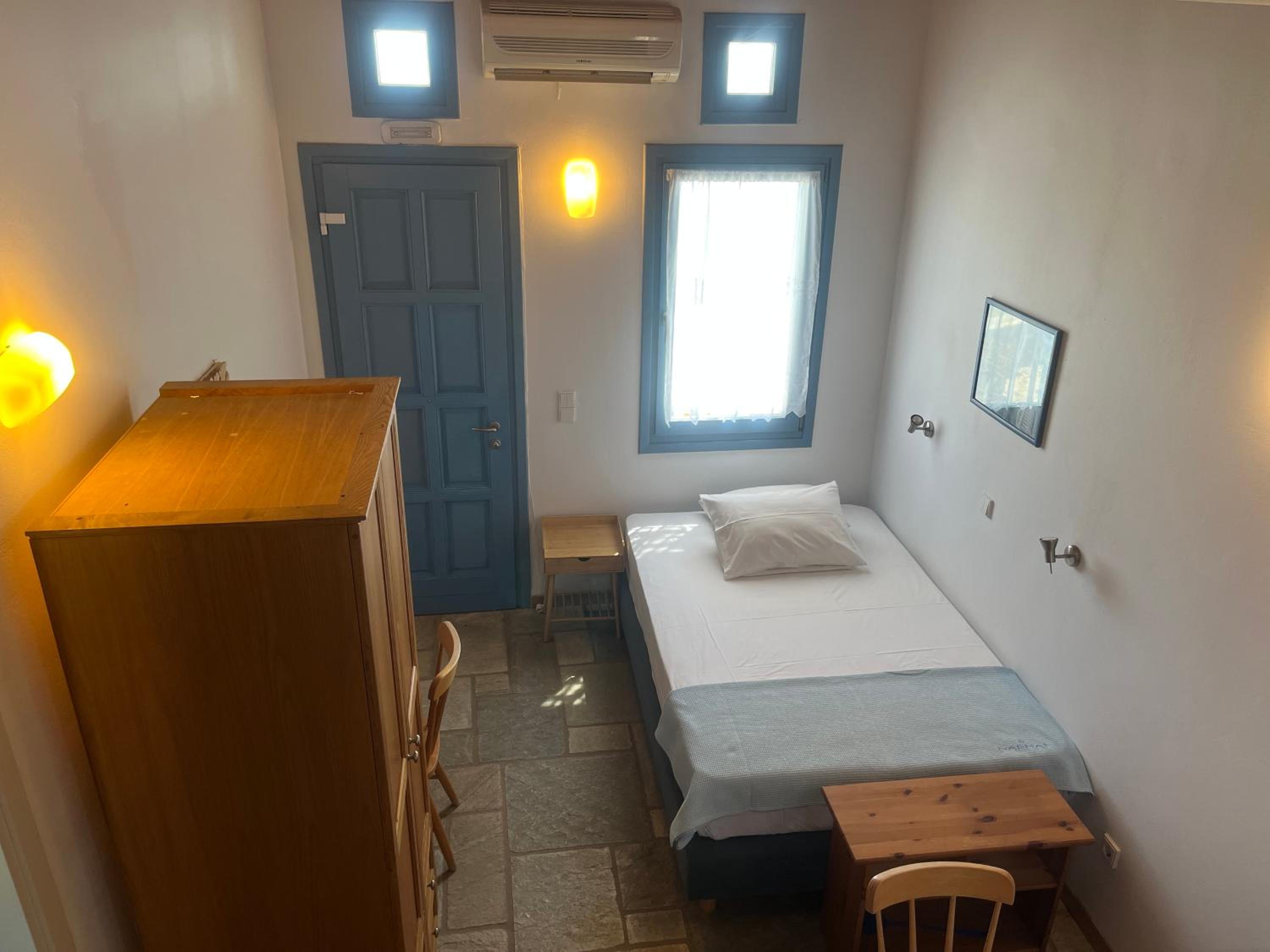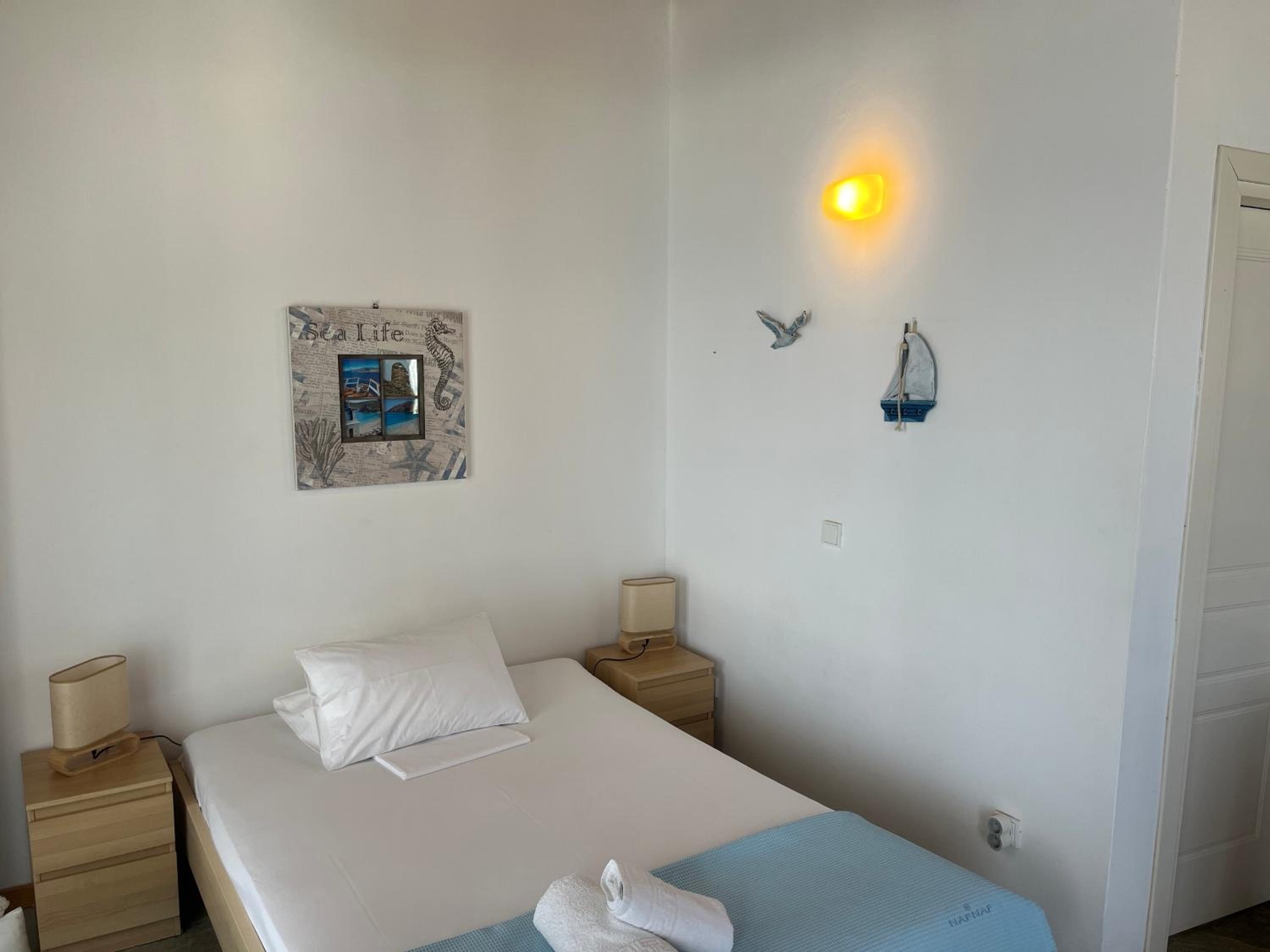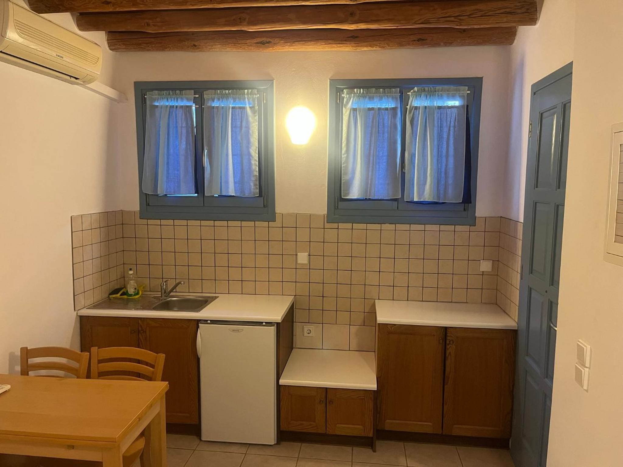 The property’s location was perfect as it is 5 mins from gavrio port and 10 minutes from Batsi! It has a nice sea view and the room was clean.