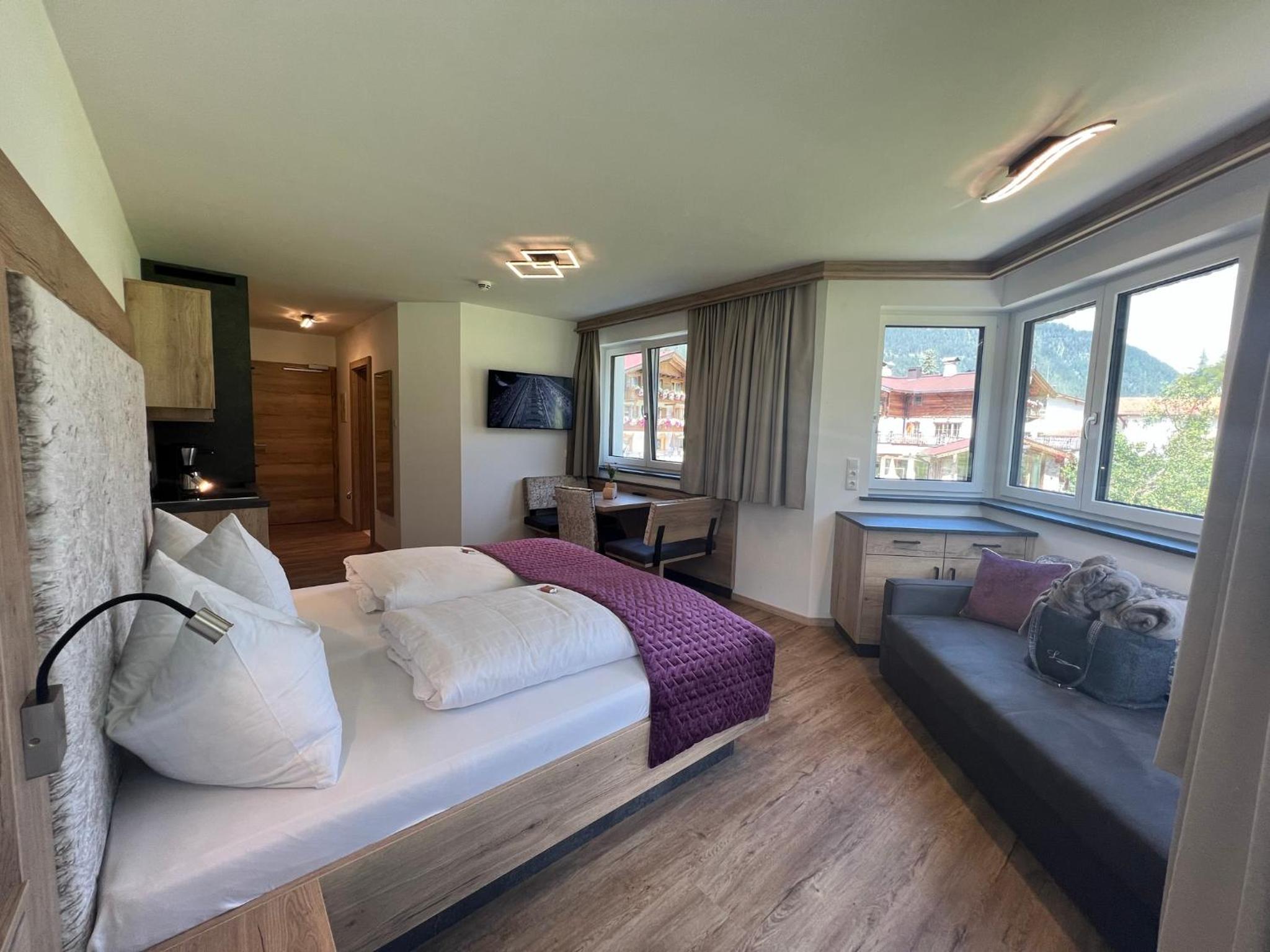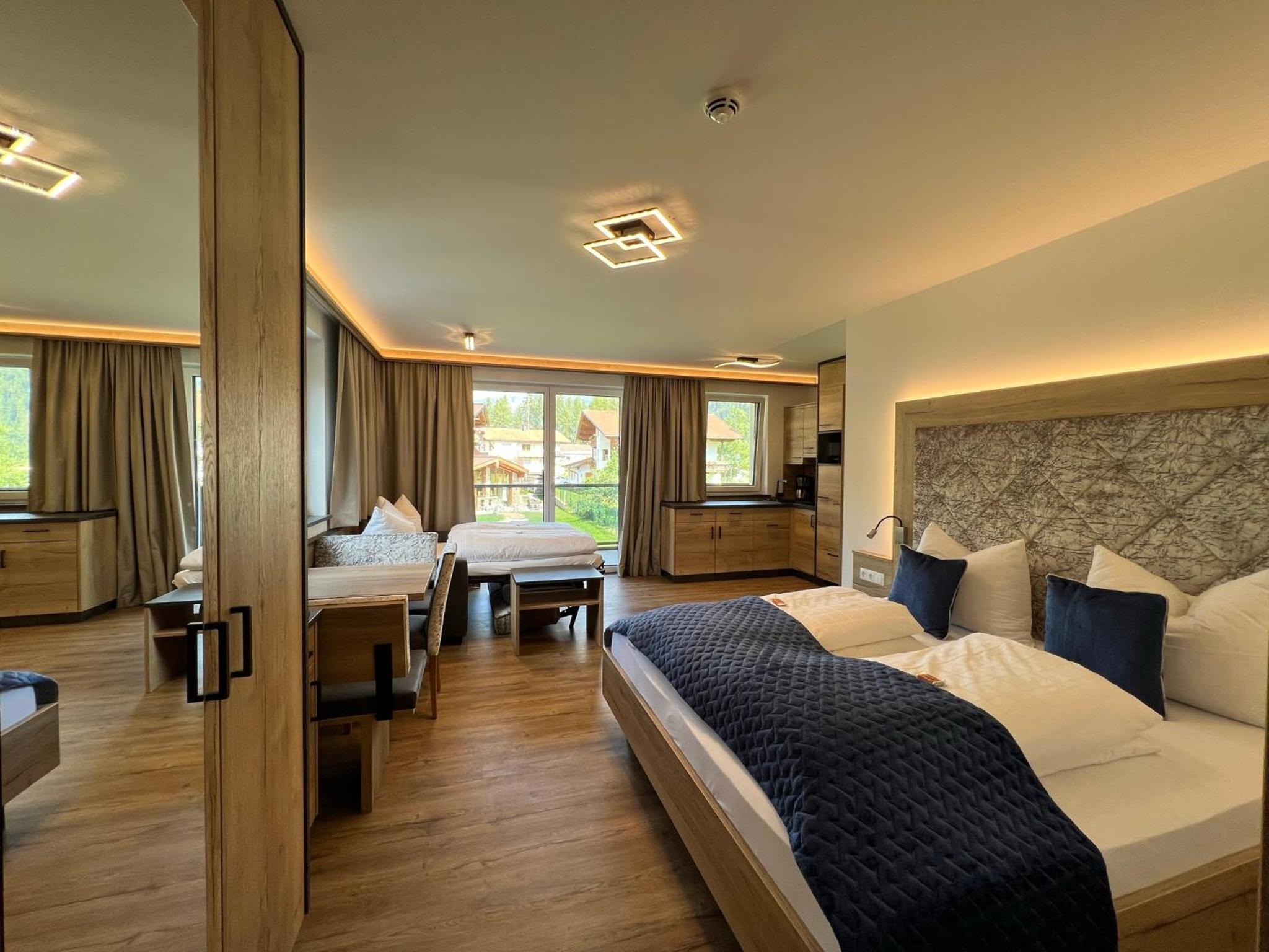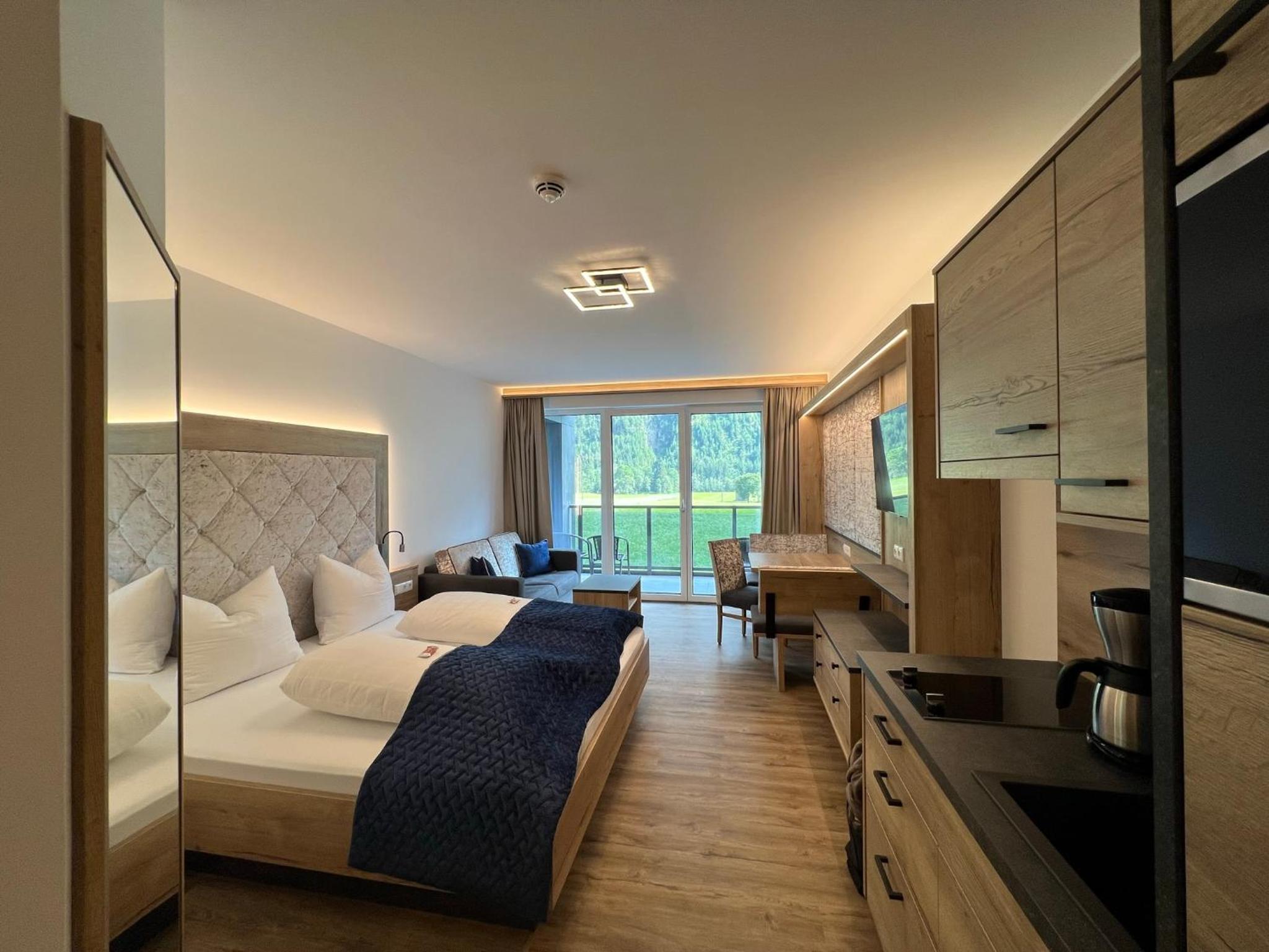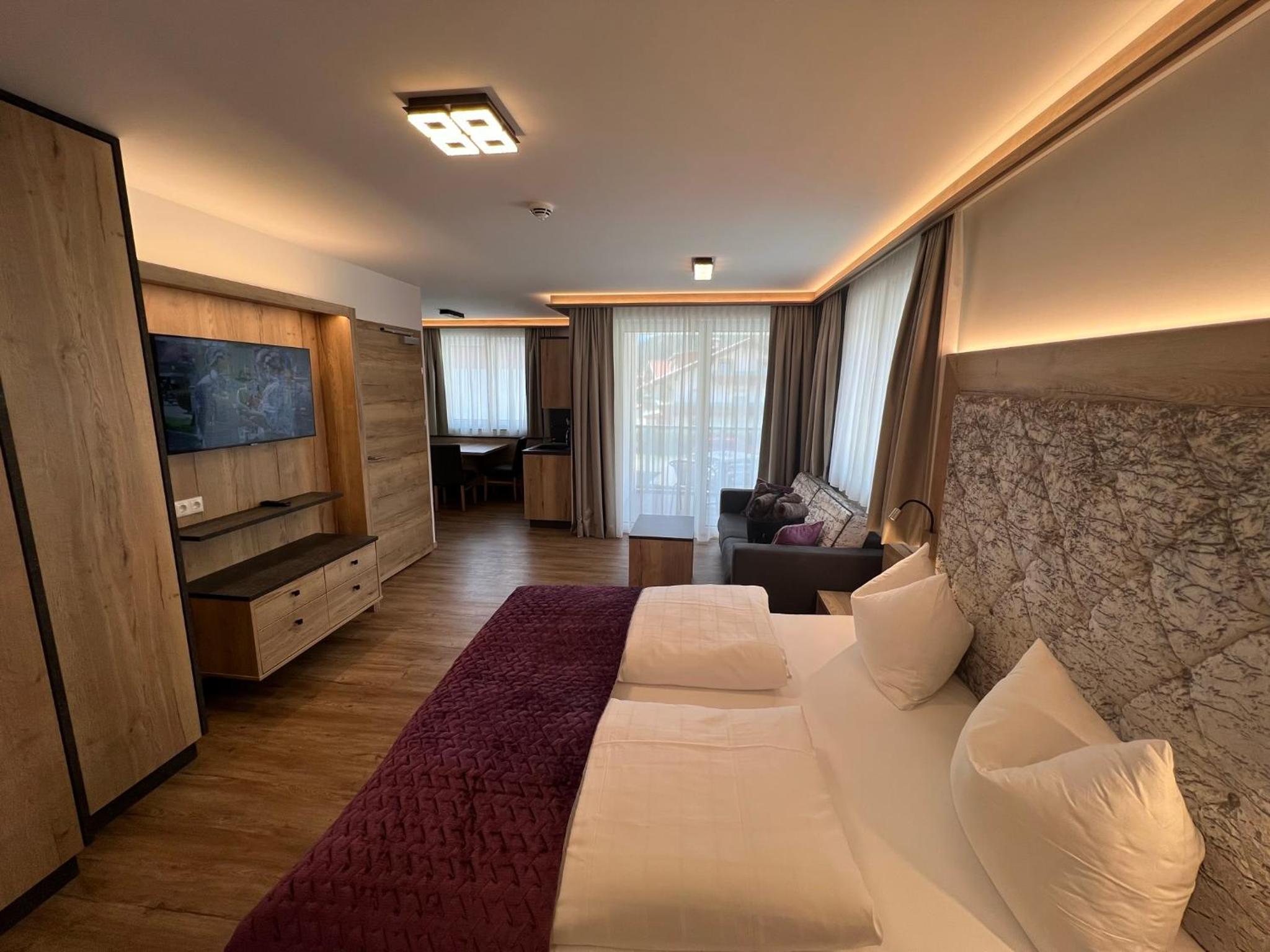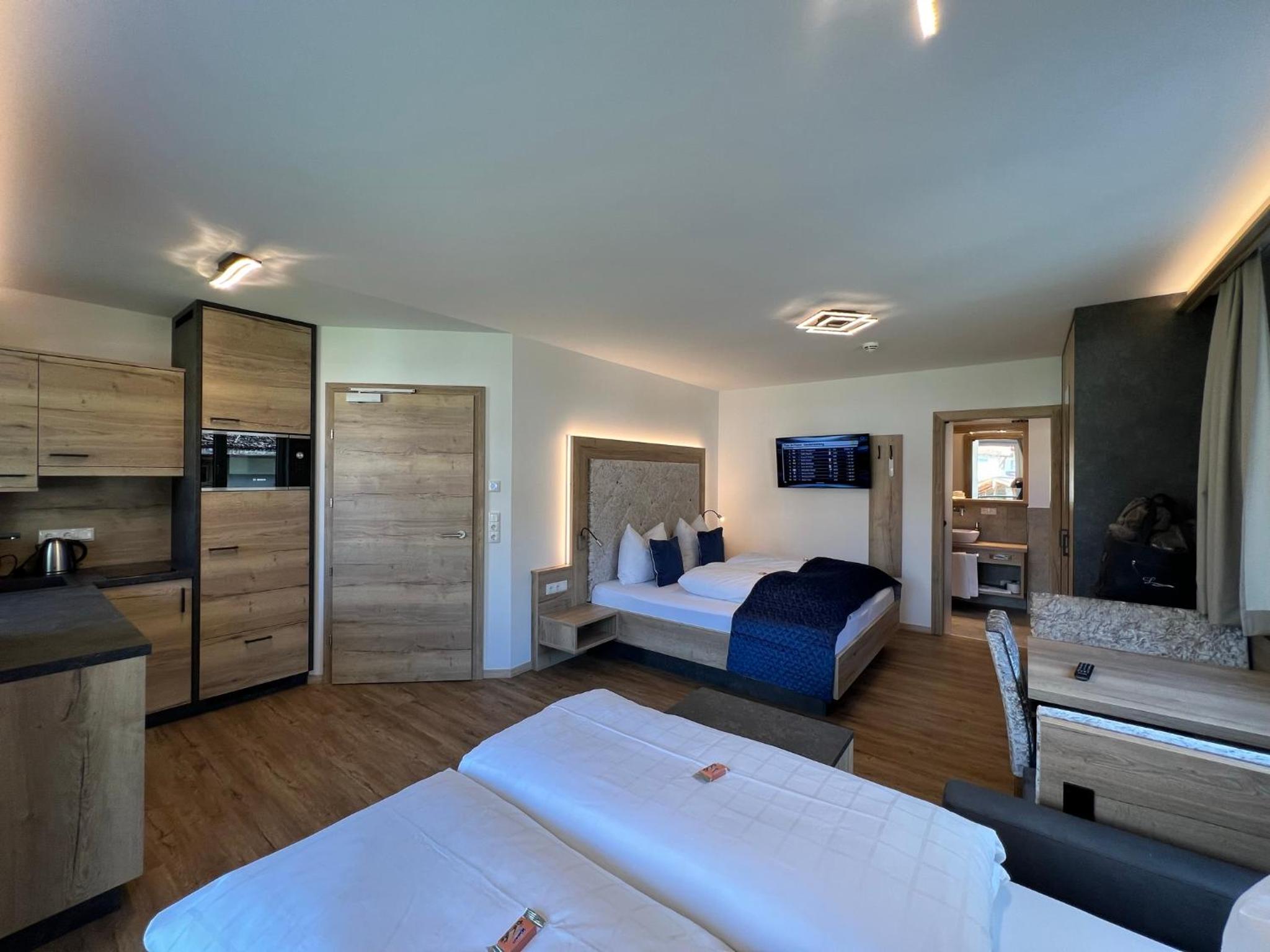 Das Personal war sehr freundlich und zuvorkommend. Das Apartment ist gut eingerichtet, die Küche ist klein (2 Platten) aber völlig ausreichend, das Bett groß und bequem. Sehr angenehm fanden wir, das man im Bademantel über einen unterirdischen Gang ins Hotel und zur Sauna gehen kann. Außerdem sehr praktisch, dass man ganz nach Belieben Frühstück und/ oder Abendessen zu buchen kann, auch tageweise. Der Brötchenservice funktioniert prima. Wir haben uns rundum wohl gefühlt und können es nur empfehlen.