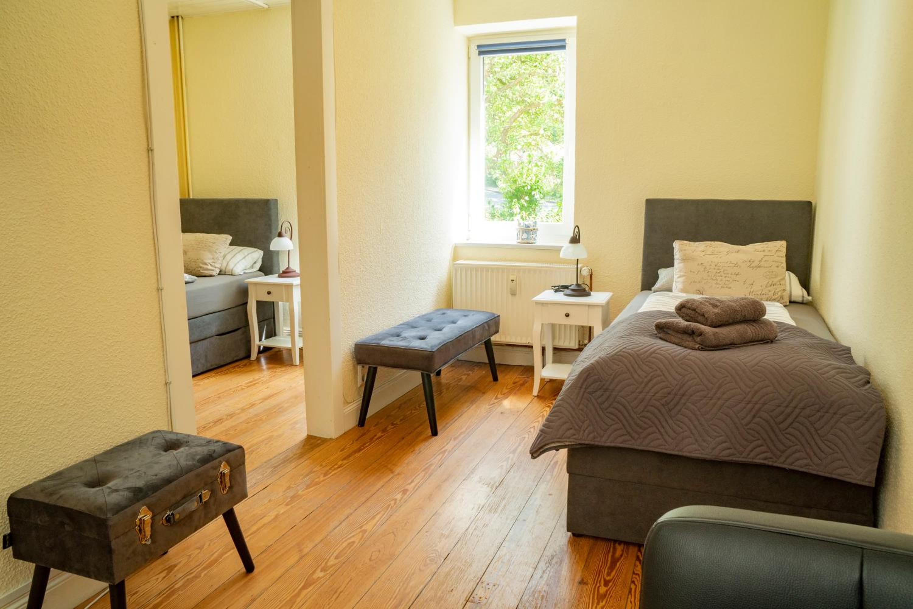 Sehr ruhig, sauber, Parkplätze privat und kostenfrei direkt vorm Haus, Infobroschüren, Frühstückskonzept gut mit bereitstellen vor dem Zimmer auf einem Servierwagen anstatt Frühstücksraum (wenn auch nicht genutzt) aber vor allem die Hausdame „Sabine“ hat unsere Erwartungen mit ihrer freundliche, aufgeschlossenen, lösungsorientierten Art übertroffen sodass auch unvorhersehbare, grössere Probleme noch am Anreisetag binnen 1-2 Stunden gelöst werden konnten (Sie weiss worum es ging 😉).