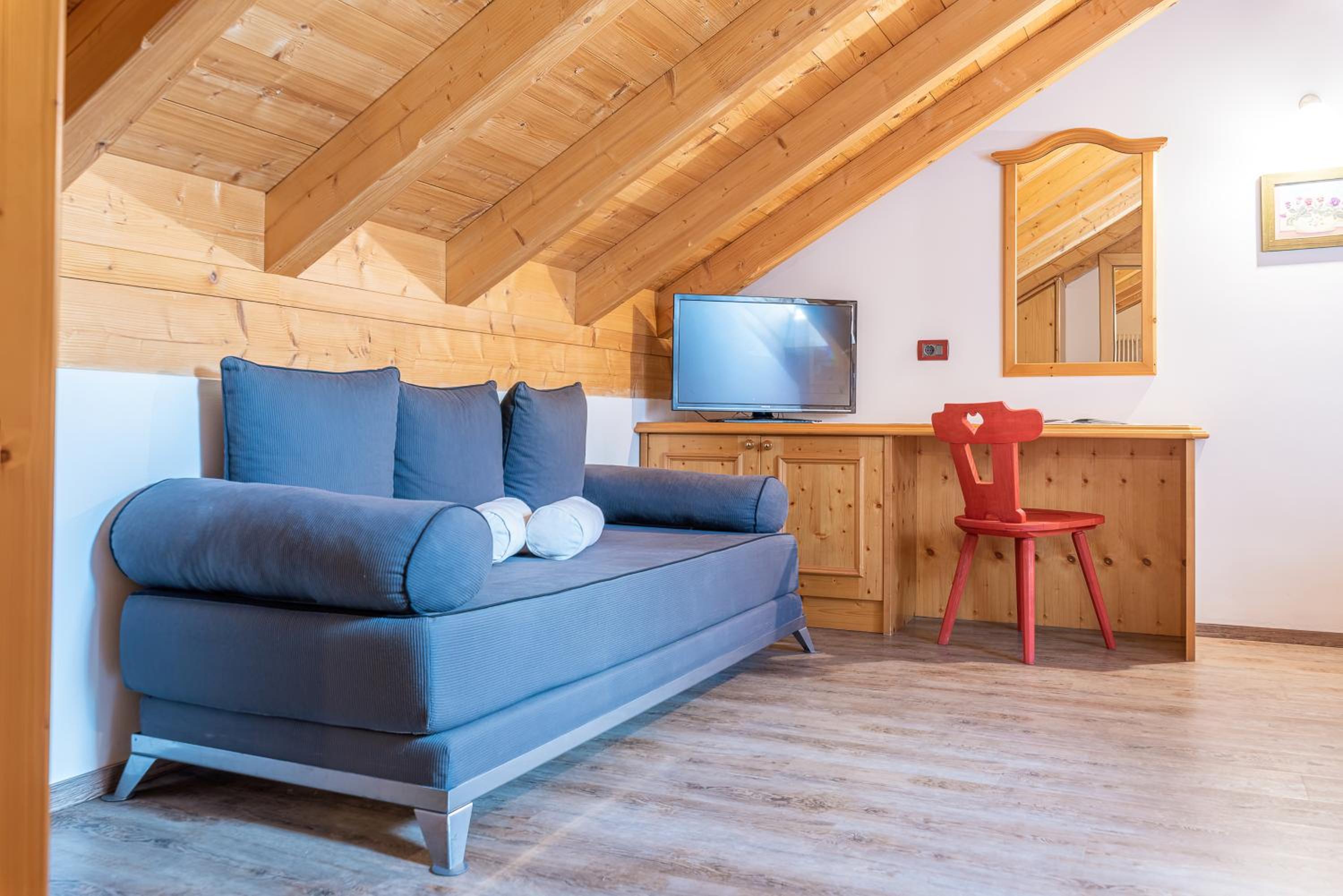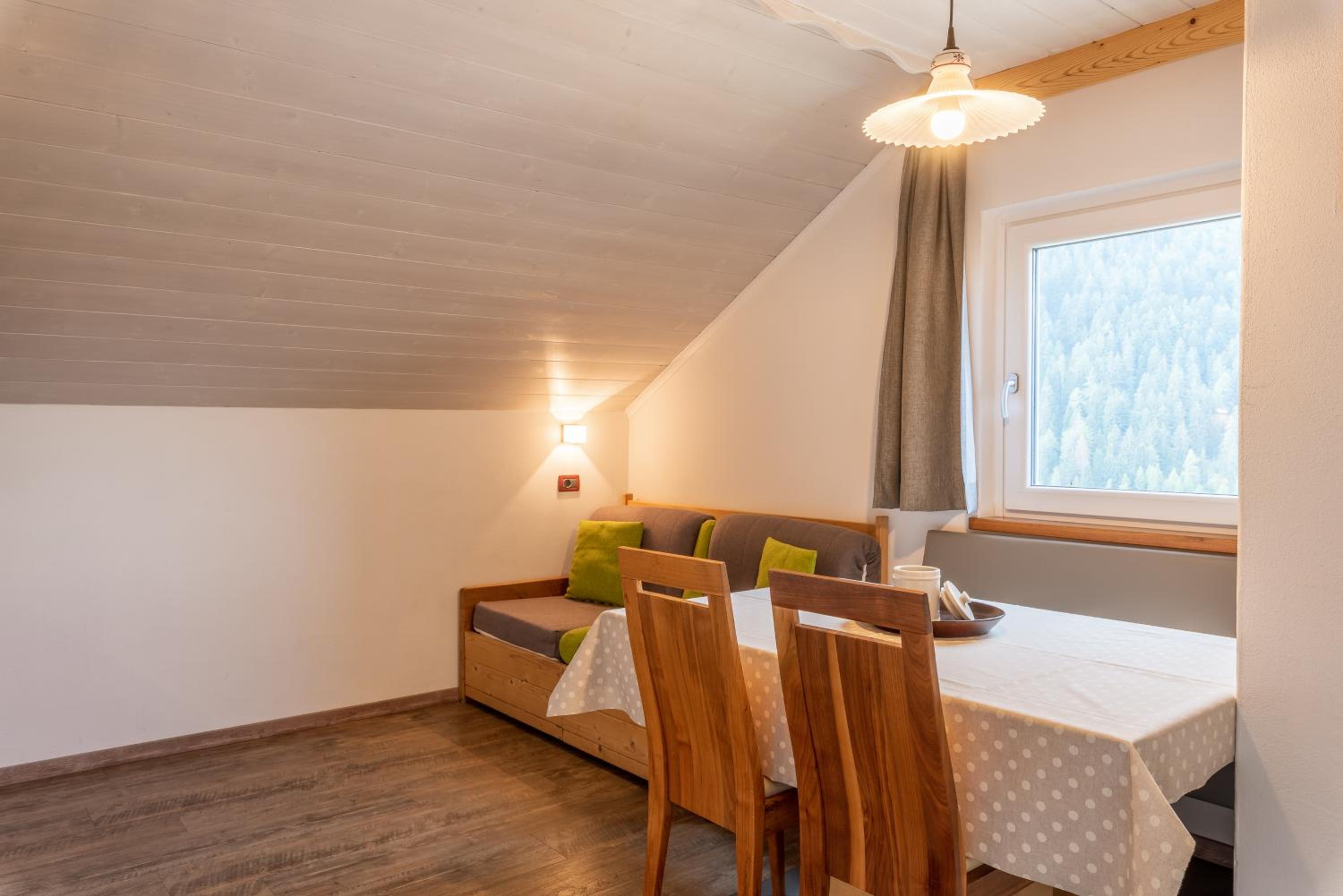 הנוף מדהים אל ההרים מחלונות גדולים משני כיוונים, נקי, מעוצב יפה, עם מחשבה על כל פרט, אומנותי עם הרבה עבודה בעץ, מאובזר בכל מה שצריך, קלאודיה בעלת הבית מקסימה ומסבירת פנים. מקום לחזור אליו גם למי שעושה סקי וגם למי שלא. קרוב לעיר. קרוב למסלול הליכה - טיילת. נסיעות בחינם, כניסה לבריכה בחינם לאורחי המקום.