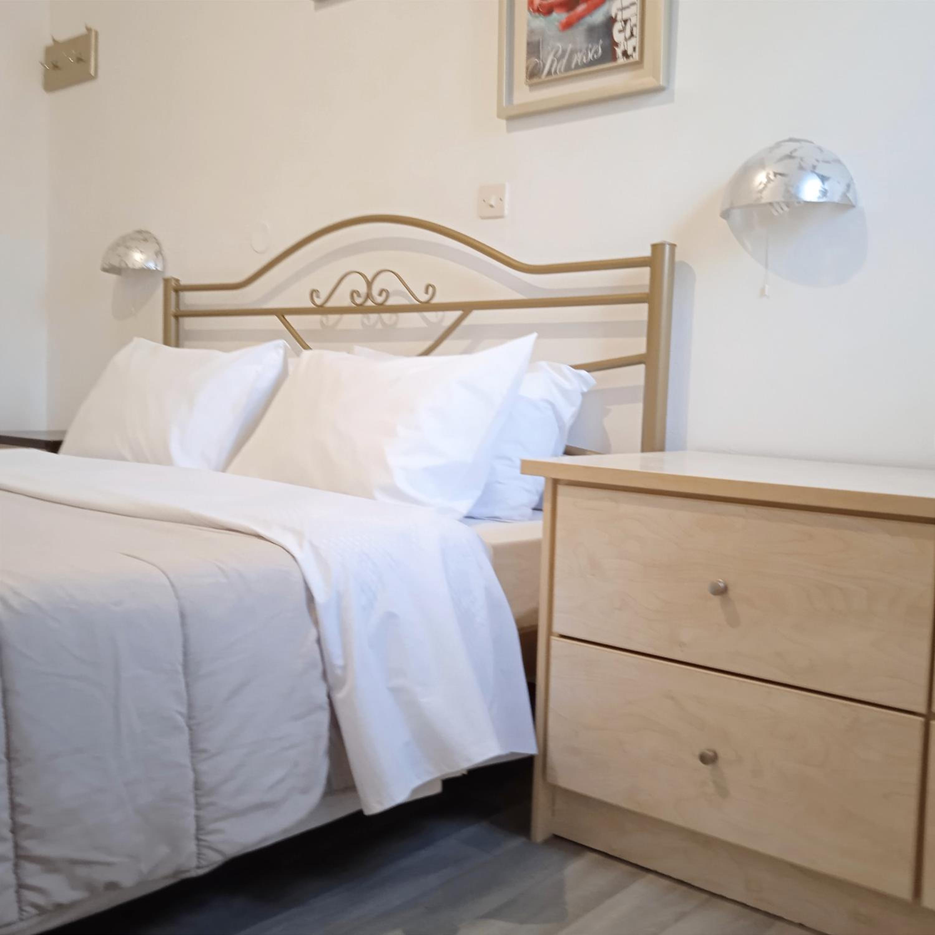 Peaceful hotel 5 minutes from beach and very close to shops and restaurants. The lady Maria who runs the apartments is exceptionally nice and helpful. Perfect for a tranquil getaway.