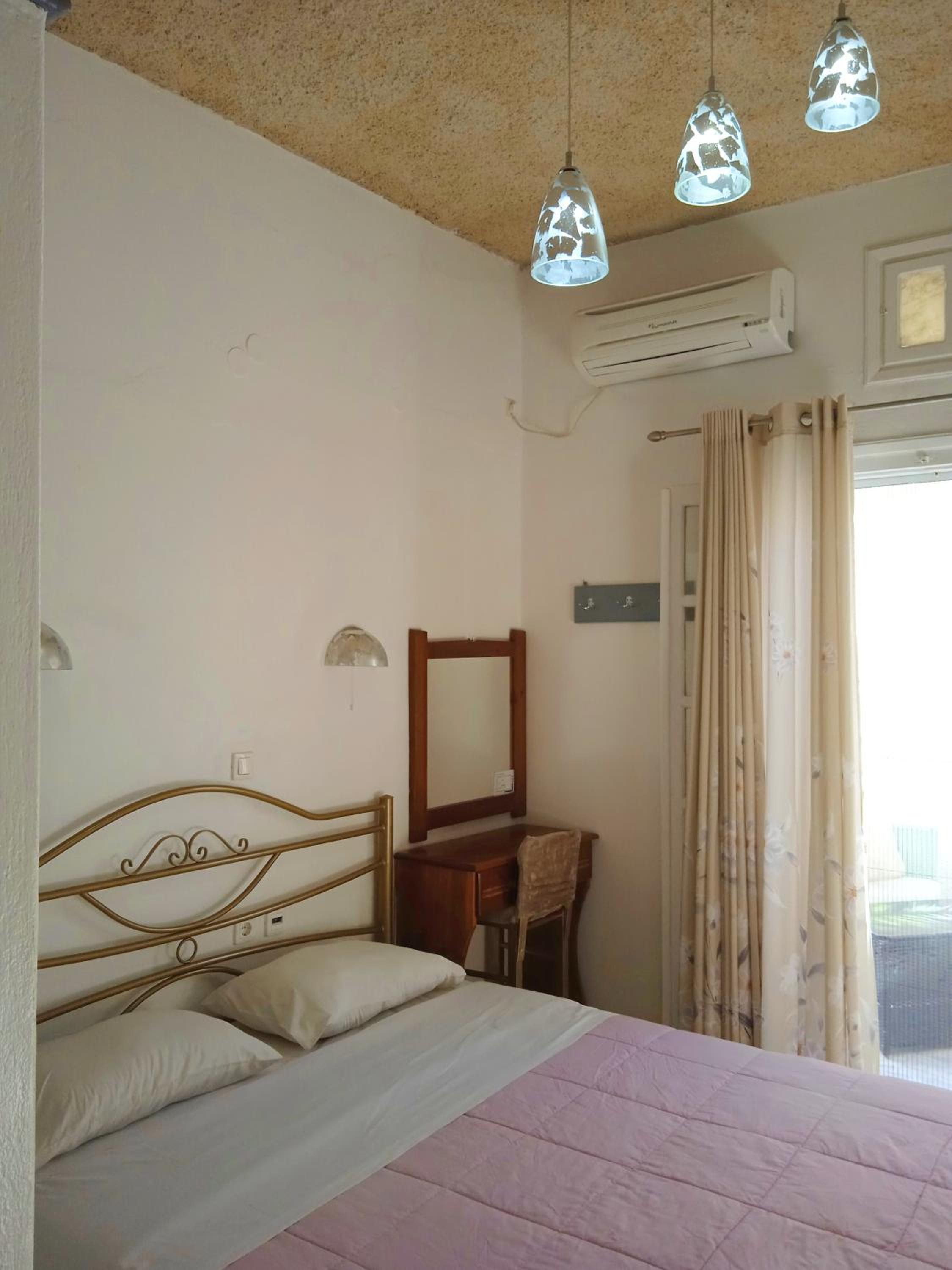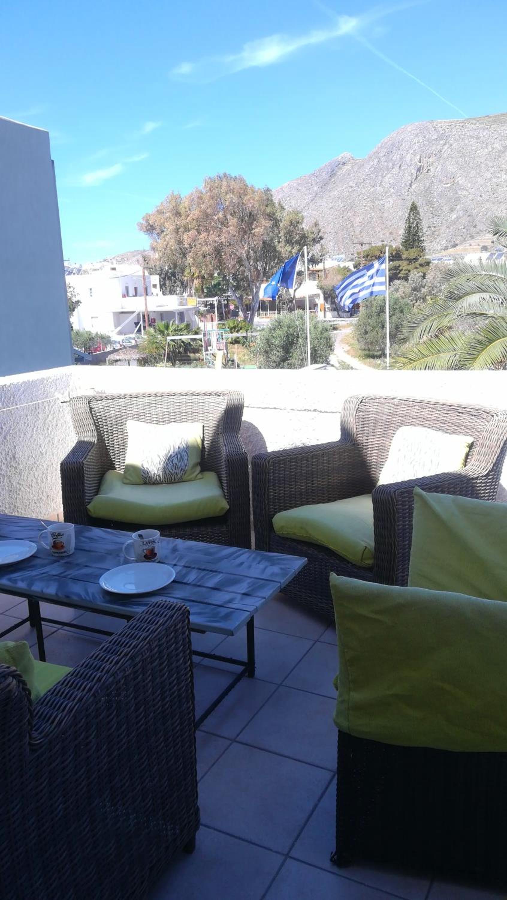 Very clean, comfortable, big room, they provided tools to eat , water, coffee, tea, very close to perissa beach, very good location to take bus to go around island, also Maria and the owner were sooo kind and helpful😊😎