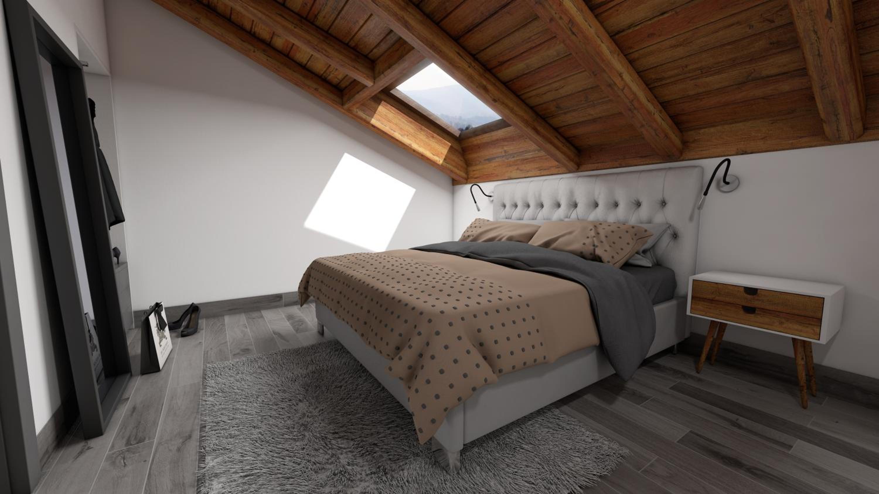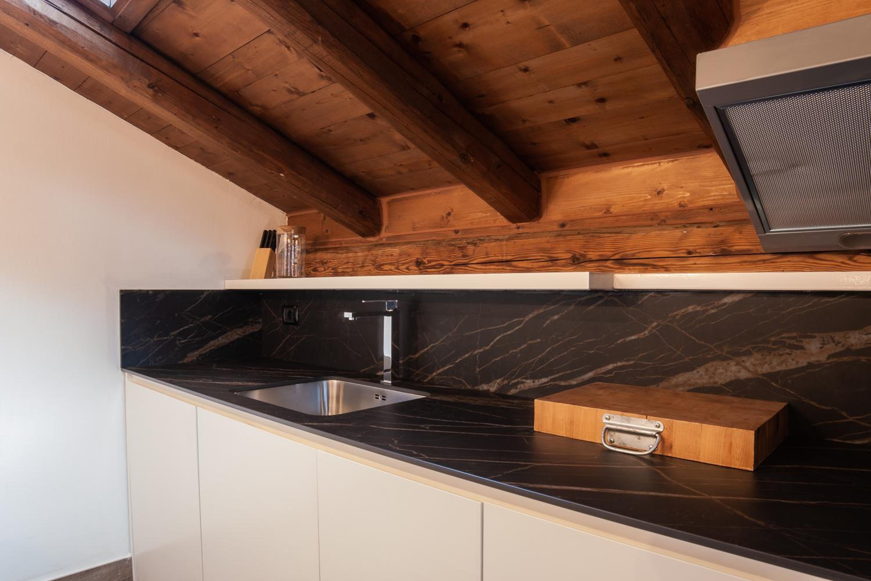 One of the apartments was at the attic with sloping roof in the kitchen what may be a problem for tall people