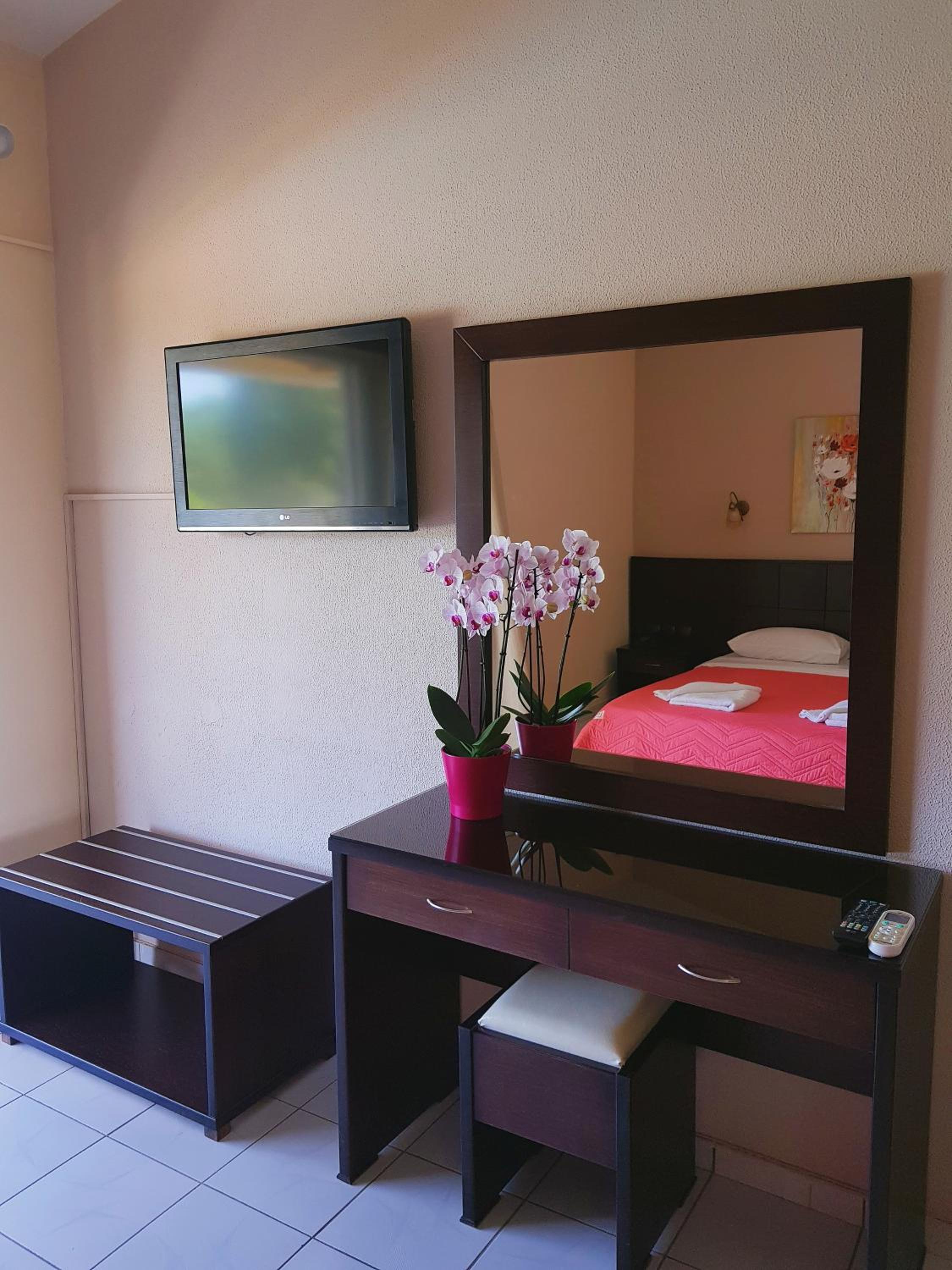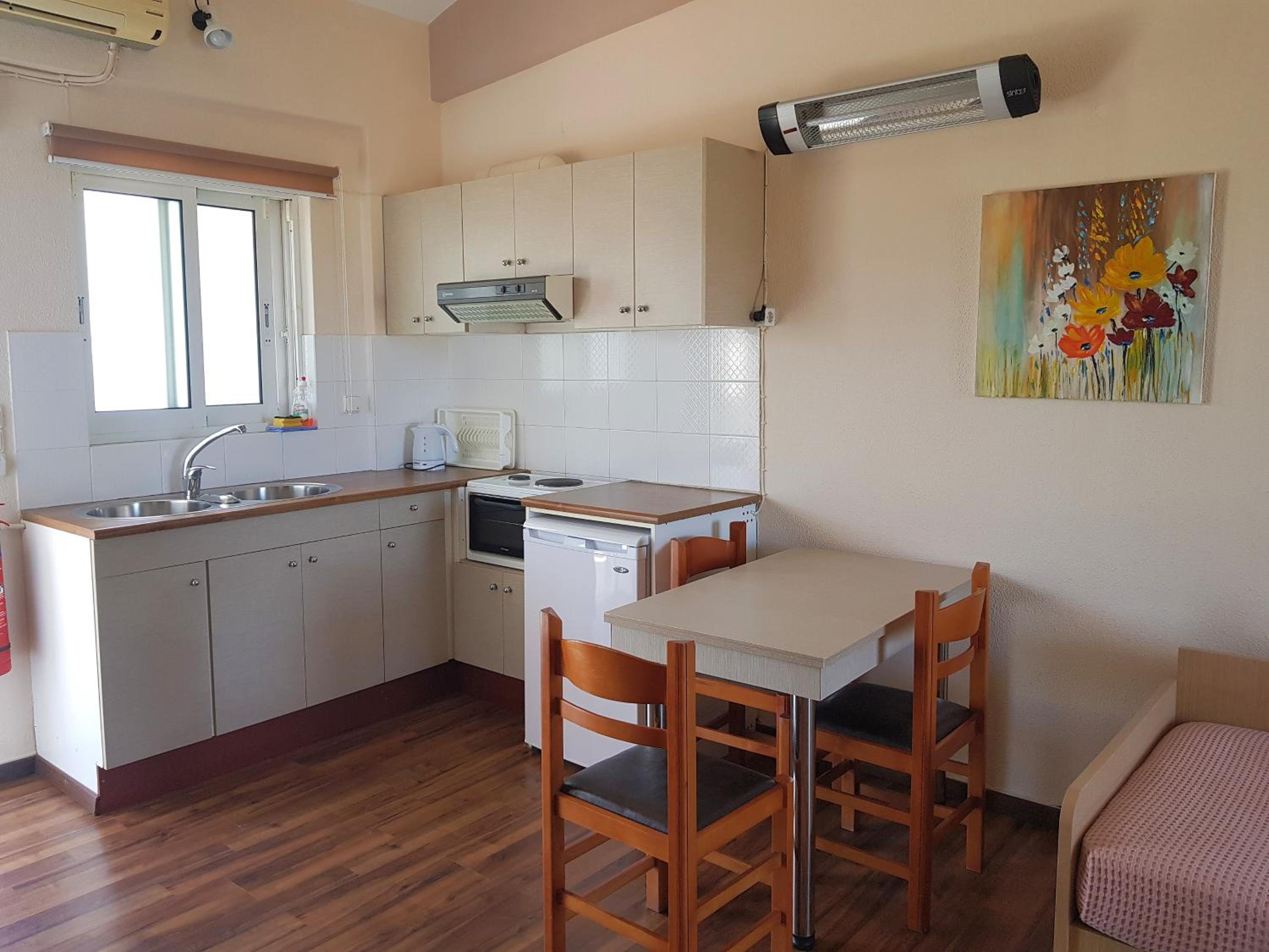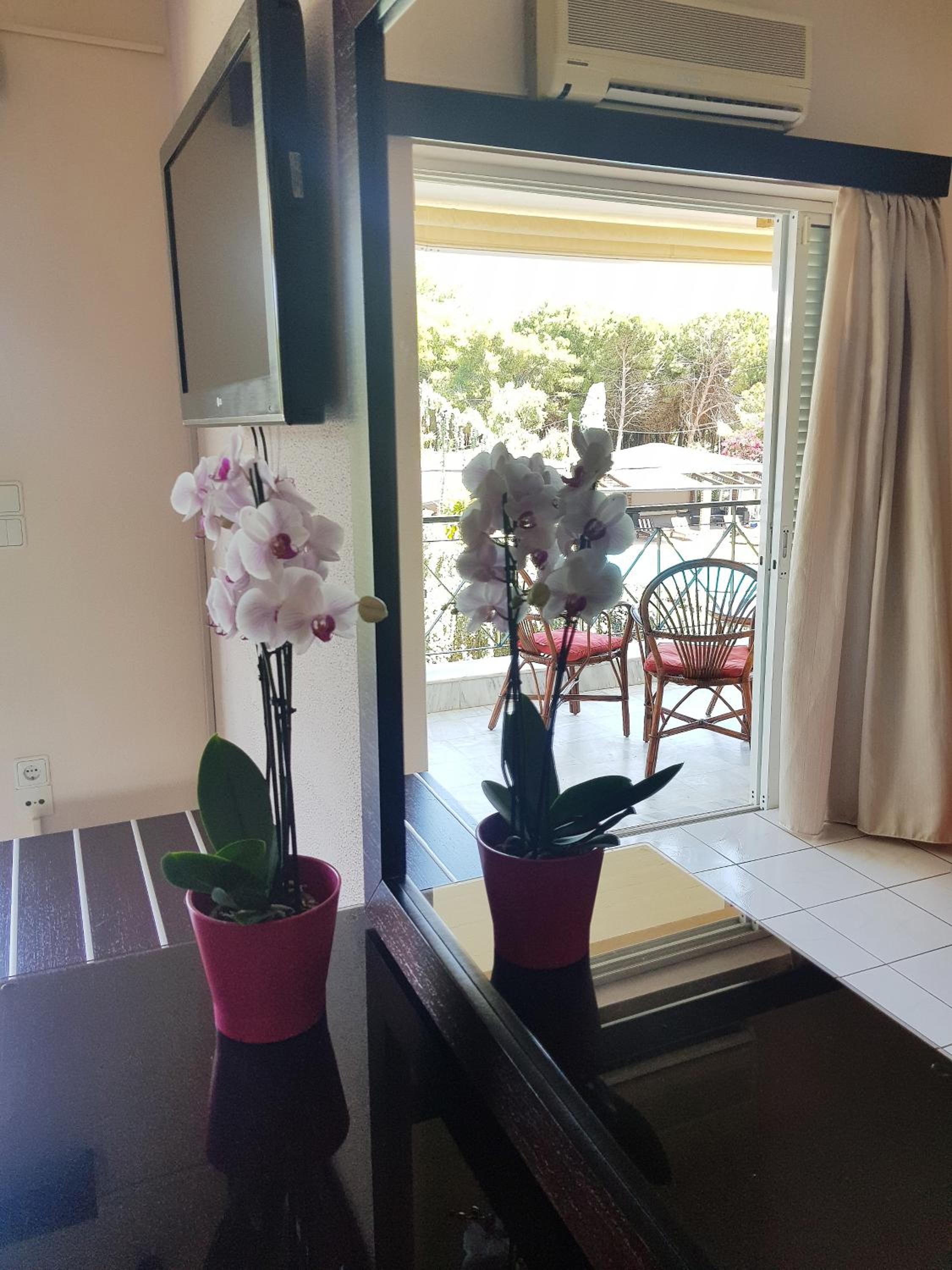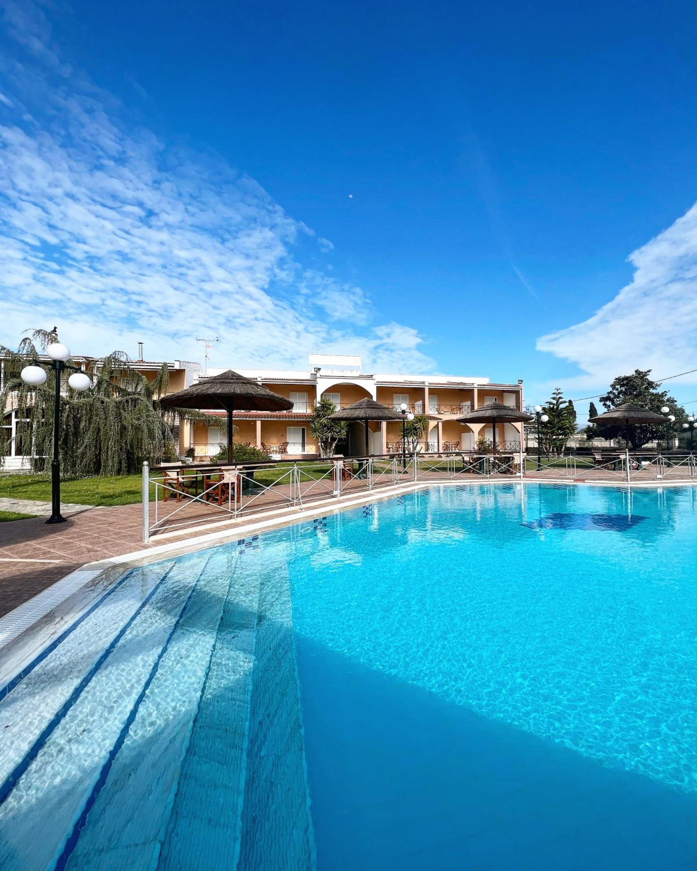 Very friendly welcome; beautiful pool; 5 min walk to local beach. Comfortable air conditioned rooms with kitchenette and balcony; only 12 min drive from Preveza Airport,