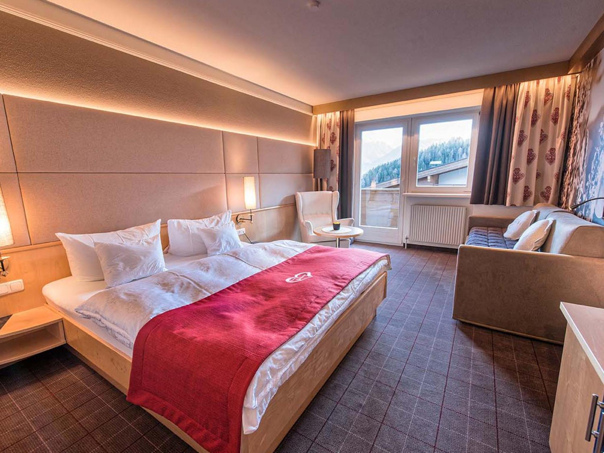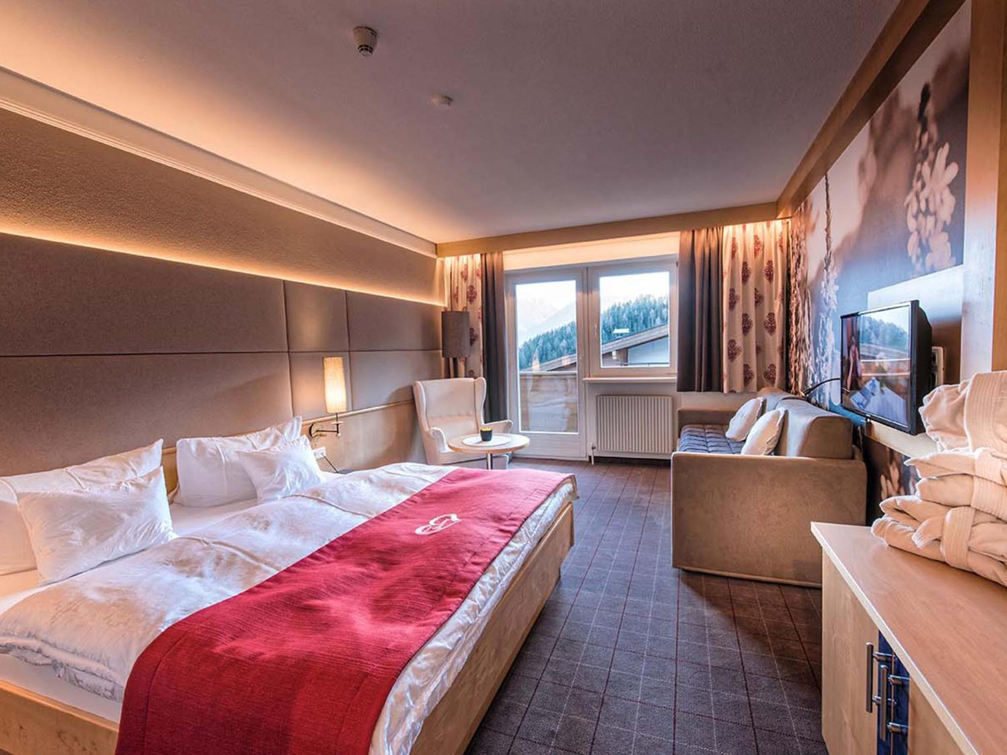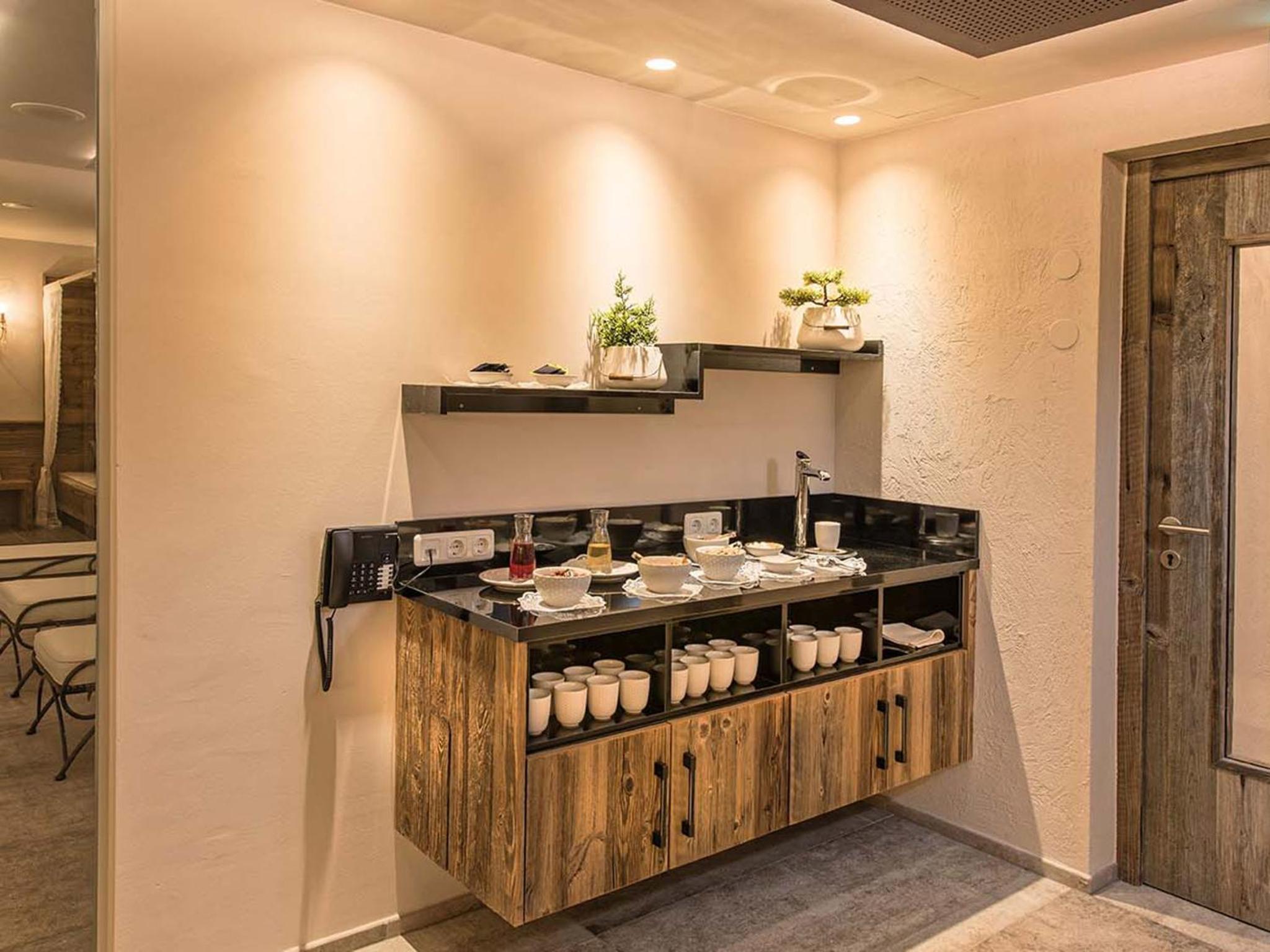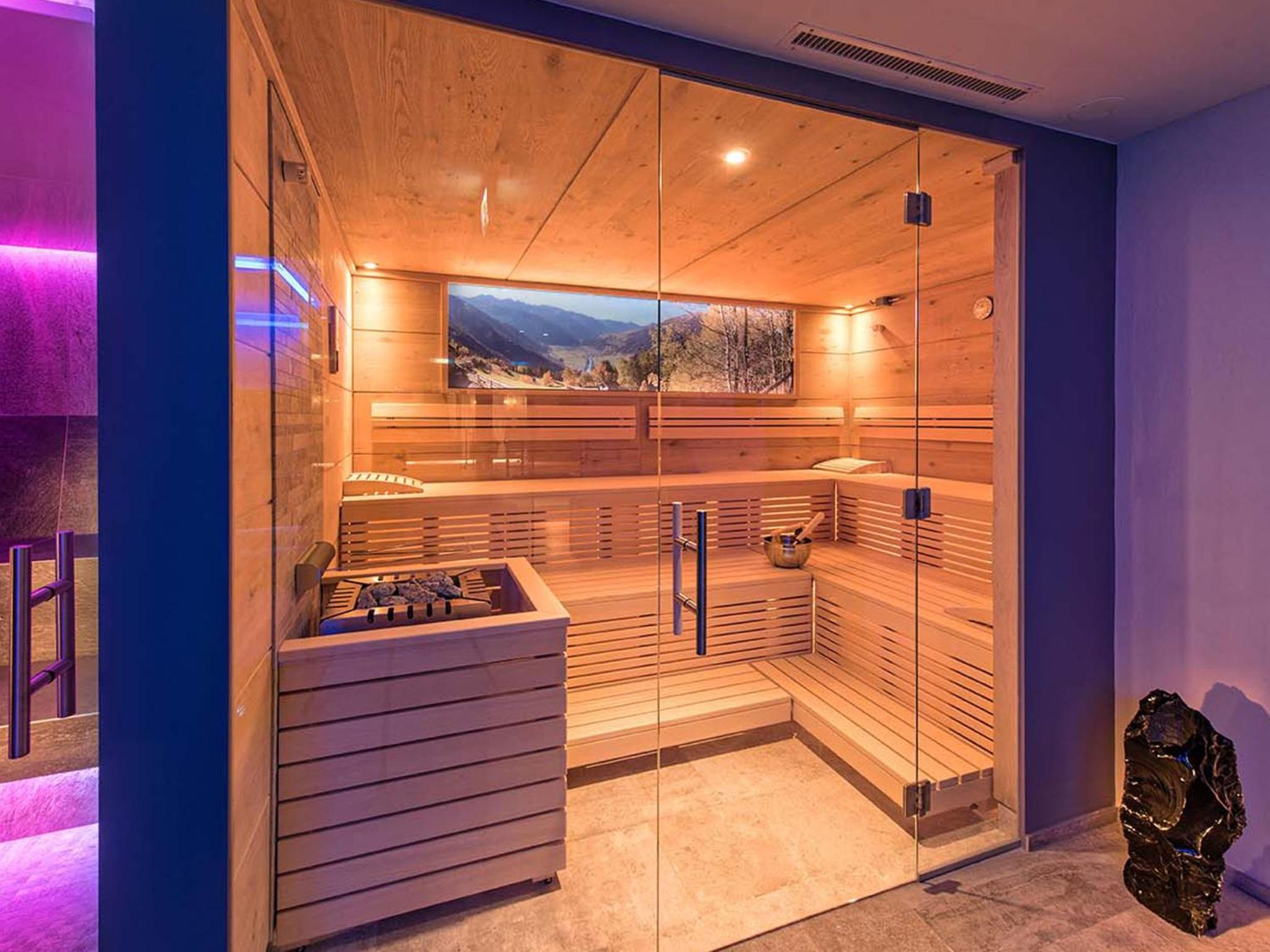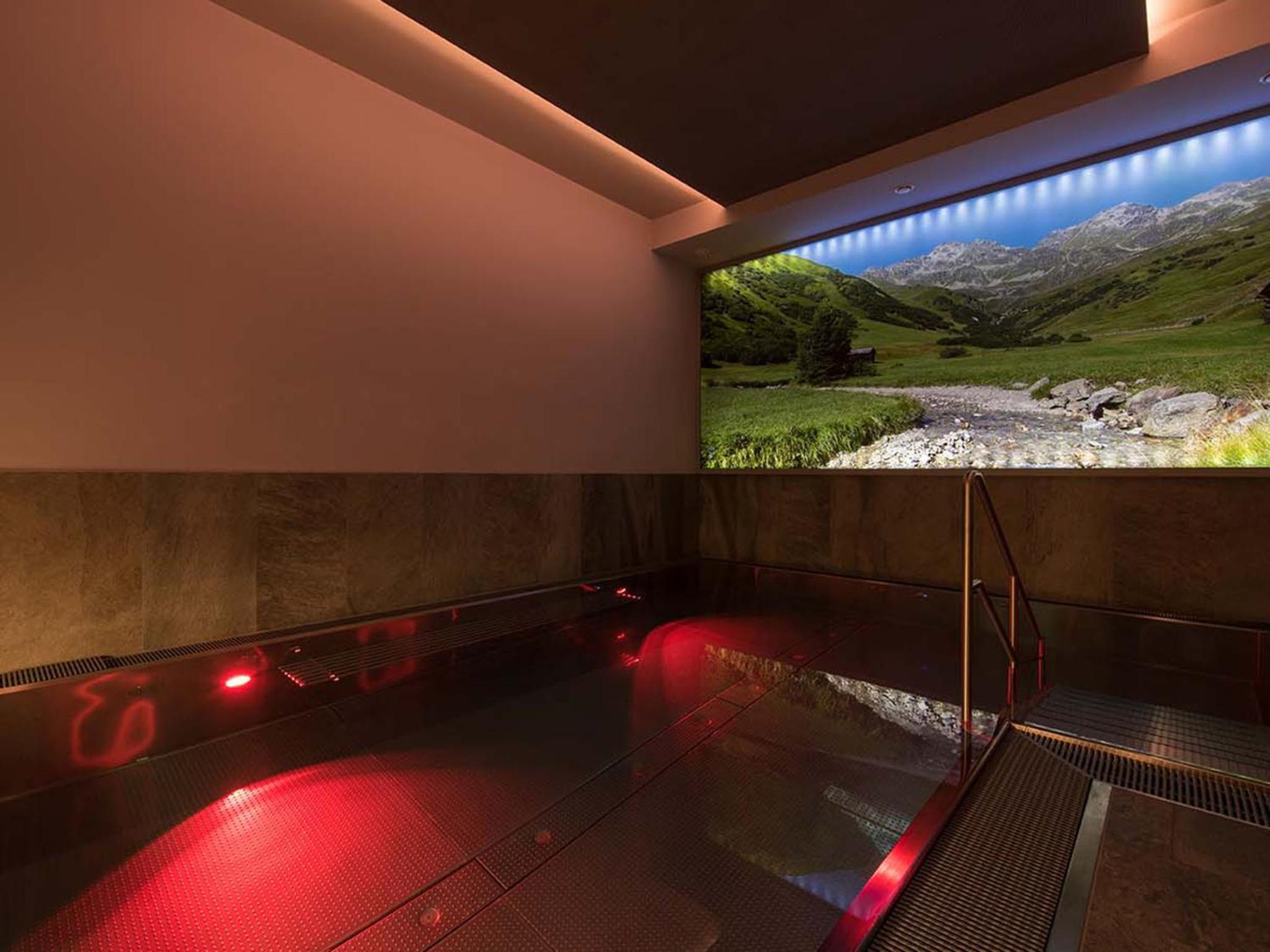 Indulge in relaxation at Hotel Universo's wellness area, offering a sauna, steam bath, and sun bed for the ultimate pampering experience after a day of exploring Serfaus.