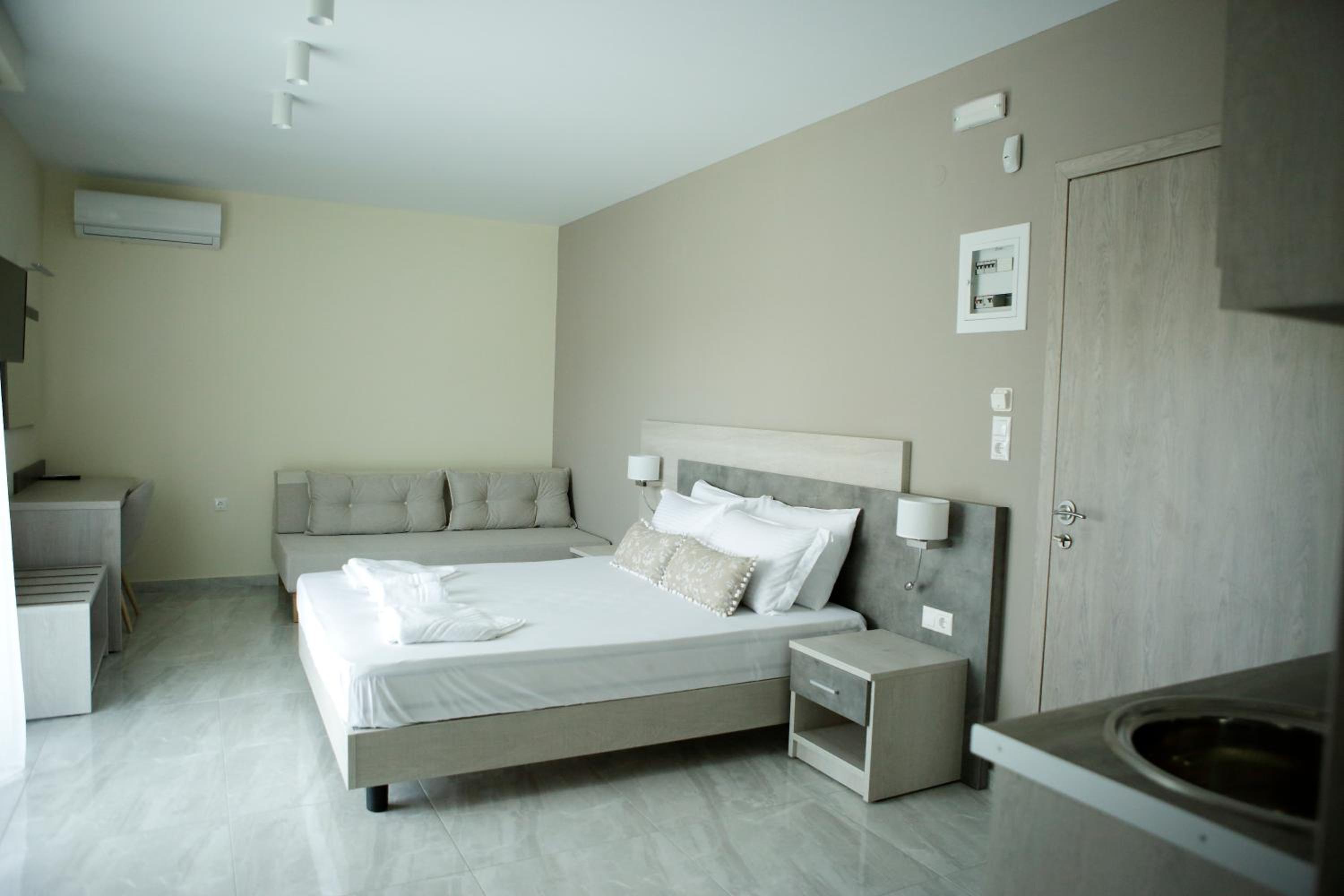 The house is super new and clean, and the location is perfect: very quiet, yet just a 5-minute walk to the beach, bars, and tavernas, and only 10 minutes on foot to the center.