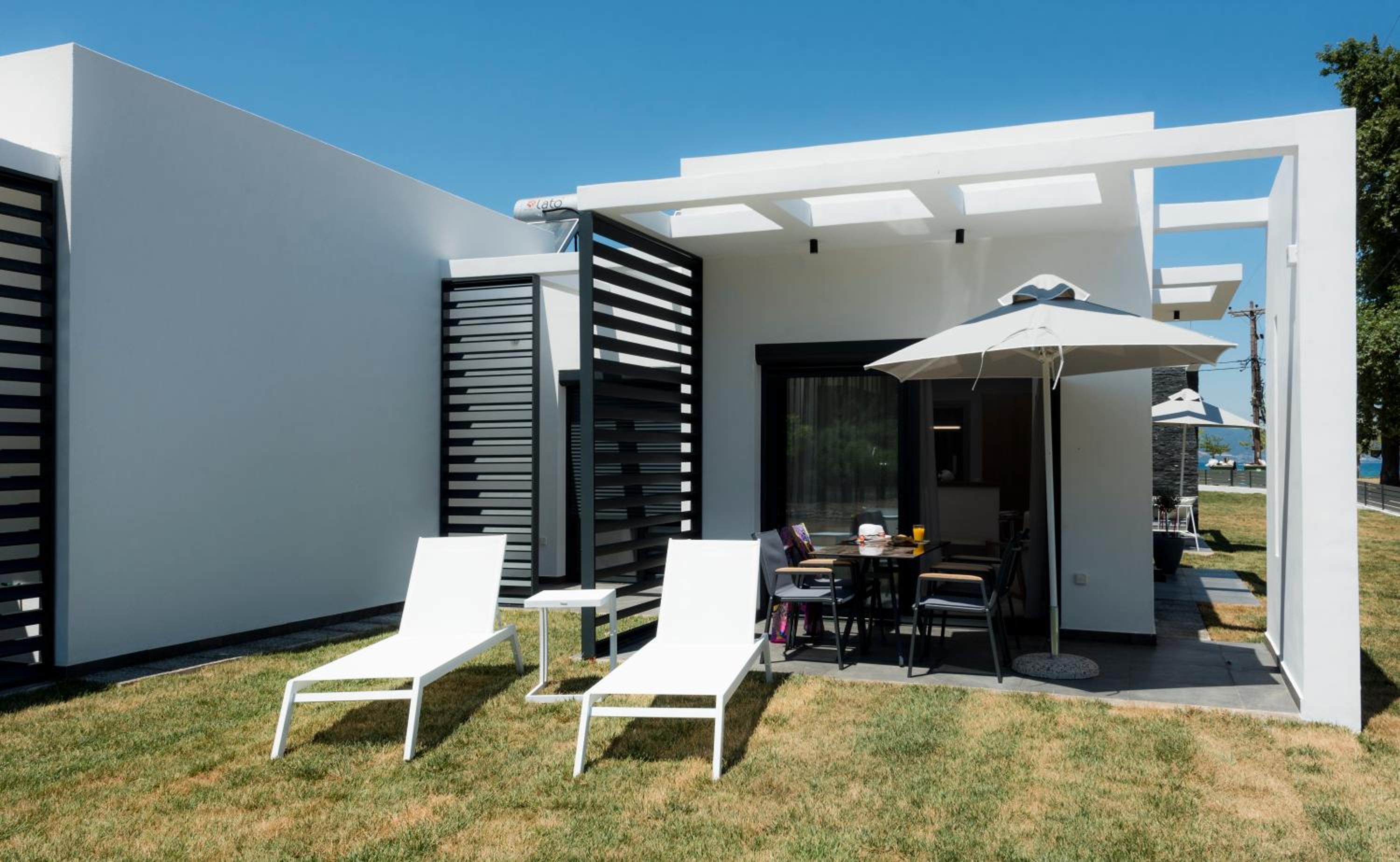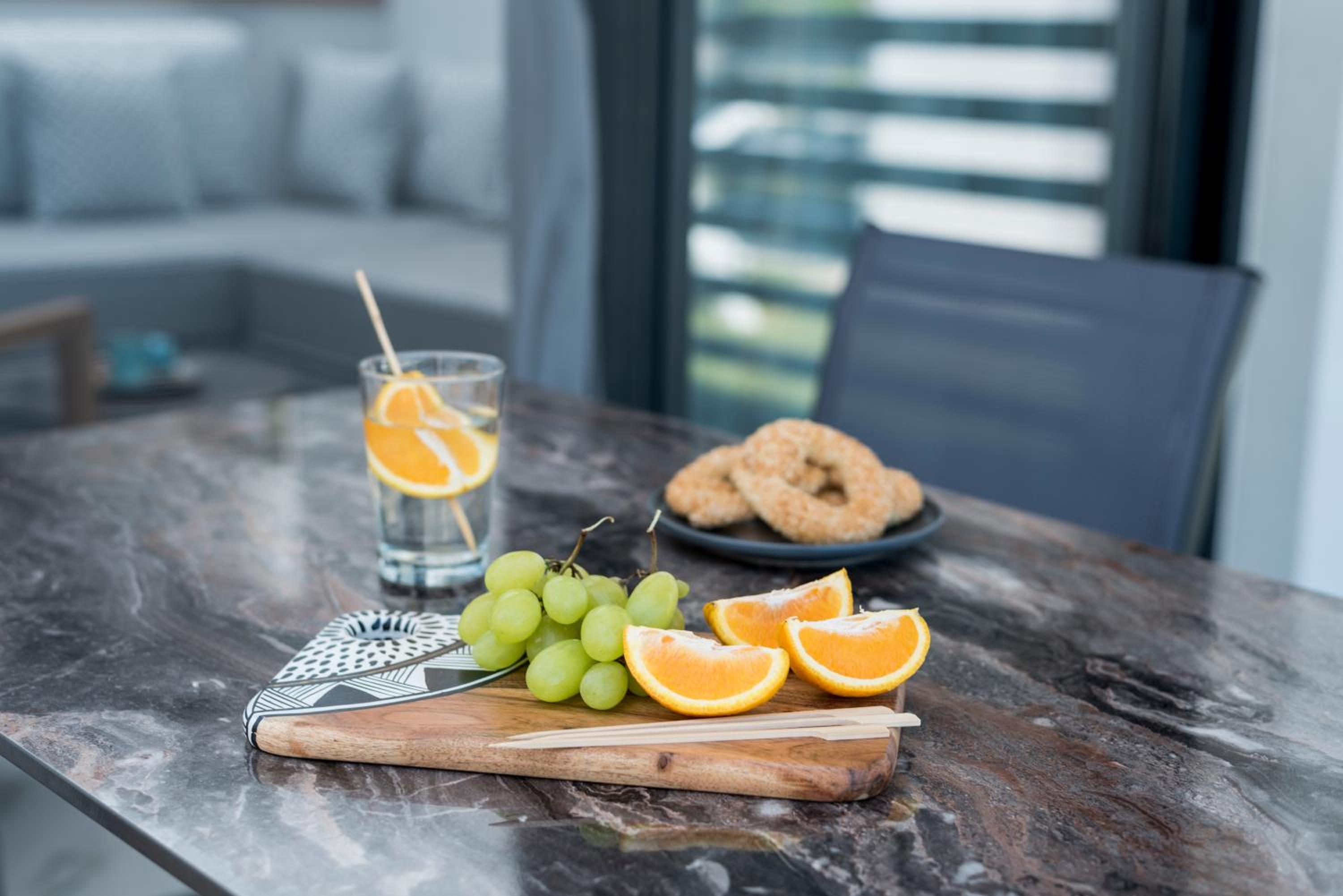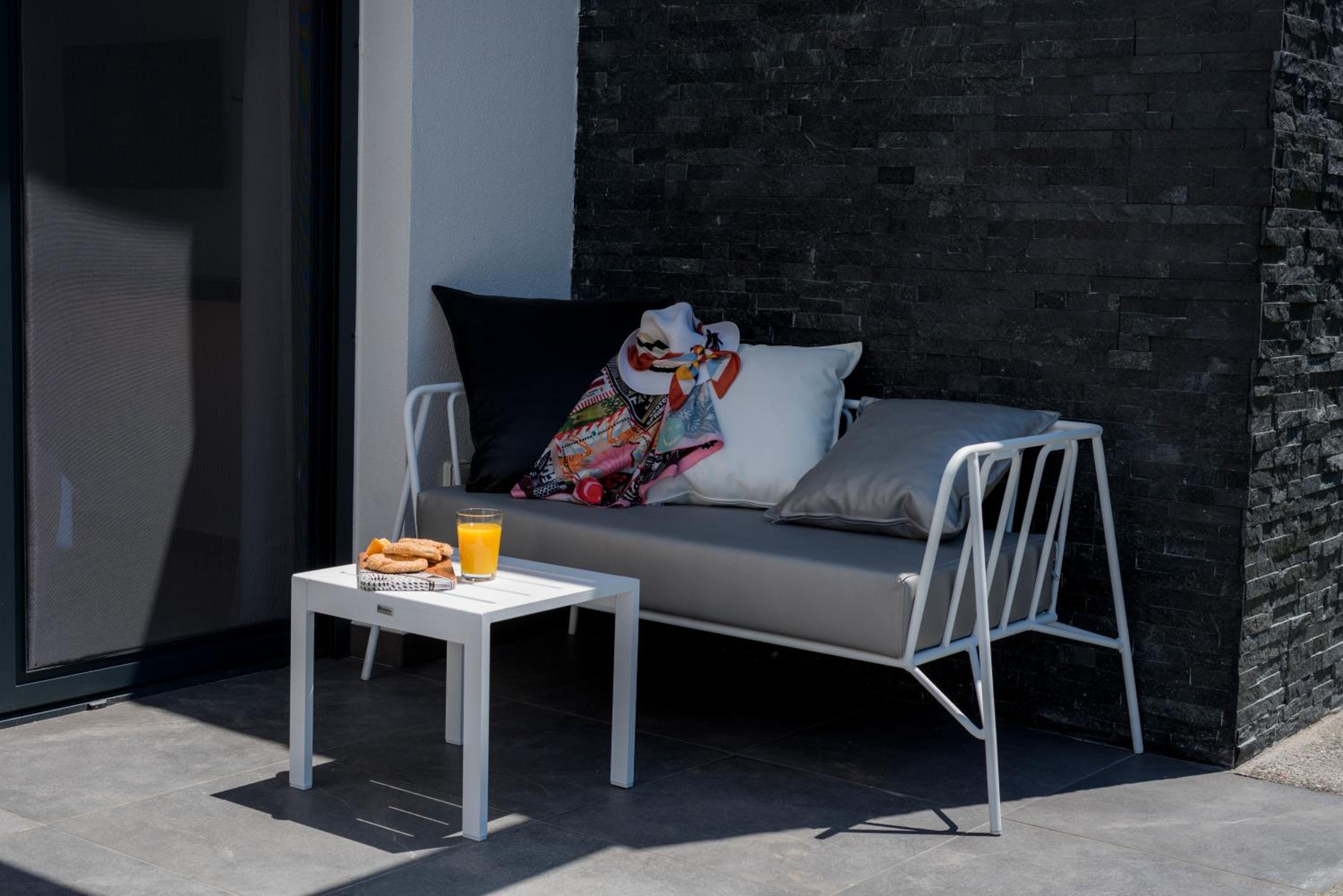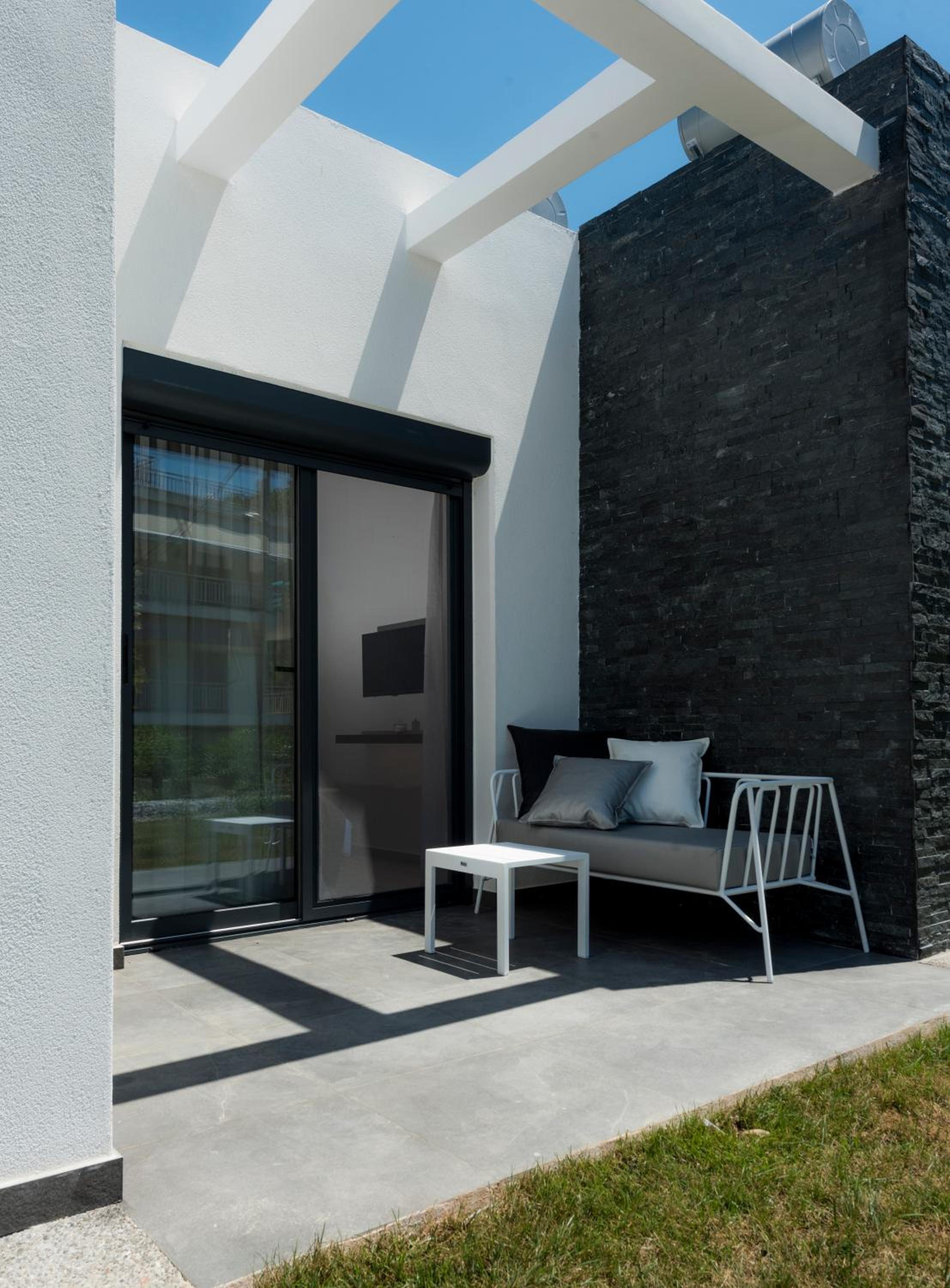 Being on the ground floor, with entrances from both sides, sun loungers in the garden, and the greenery surrounding it are all great things. The building is also new and close to the sea is also very nice.