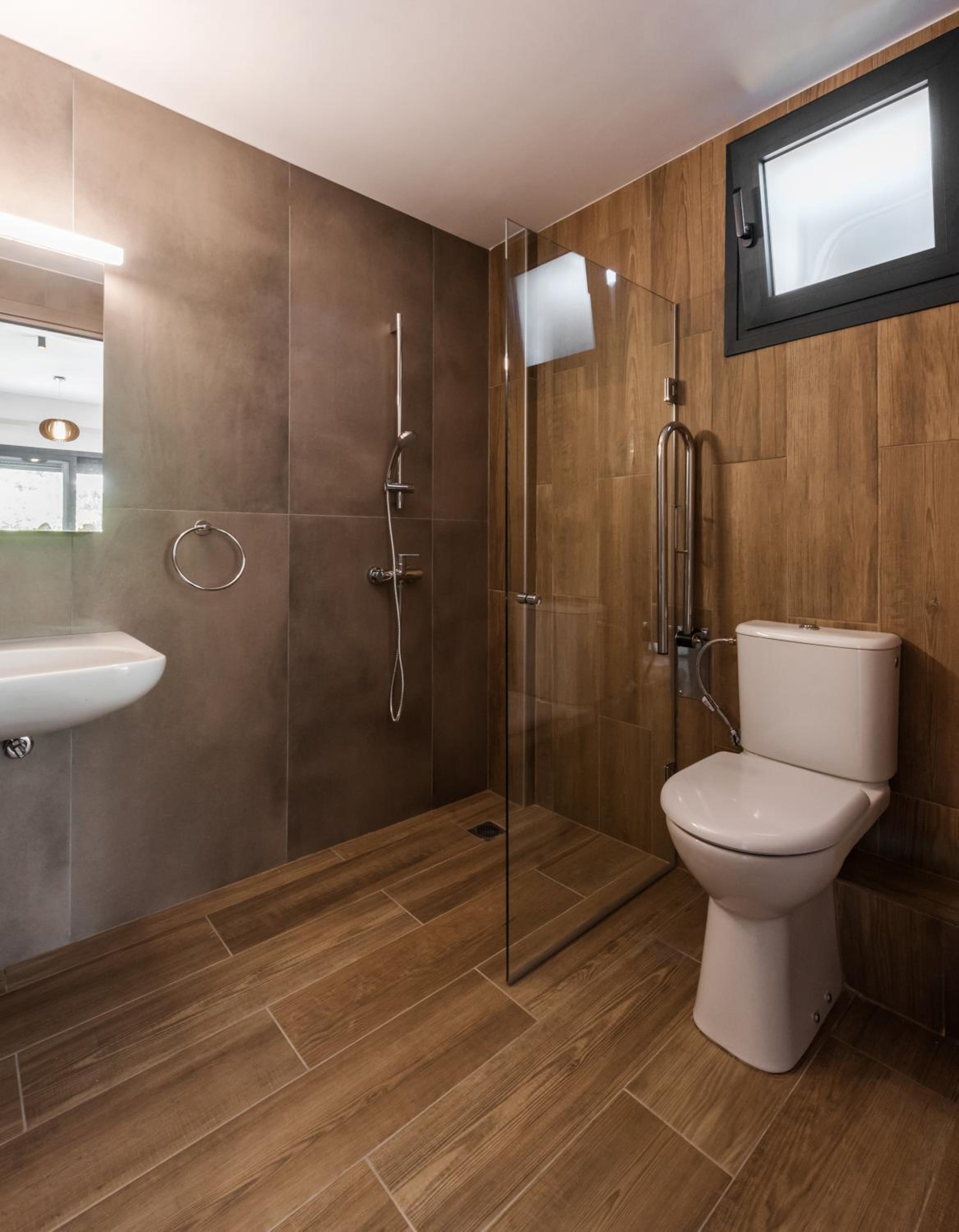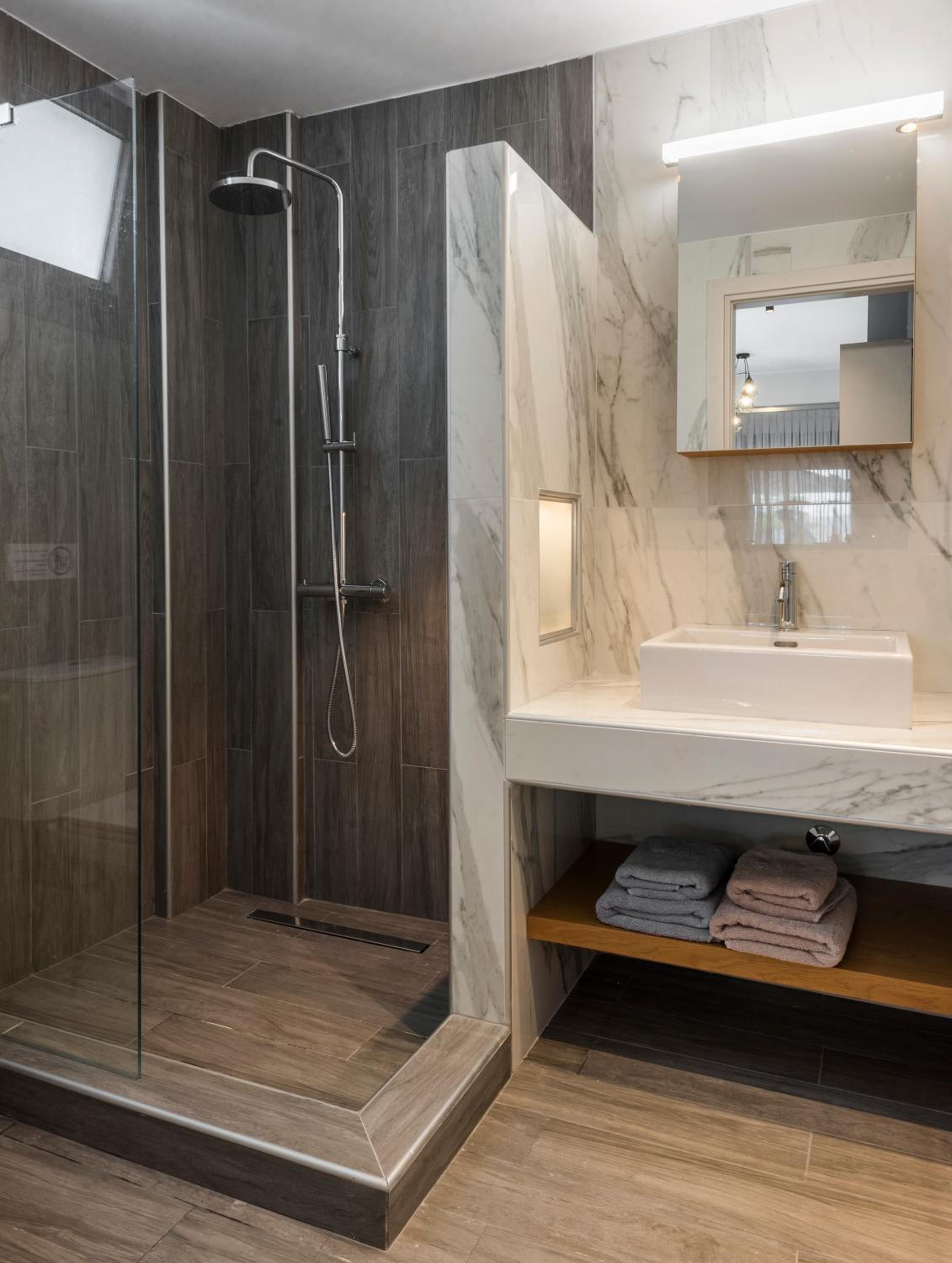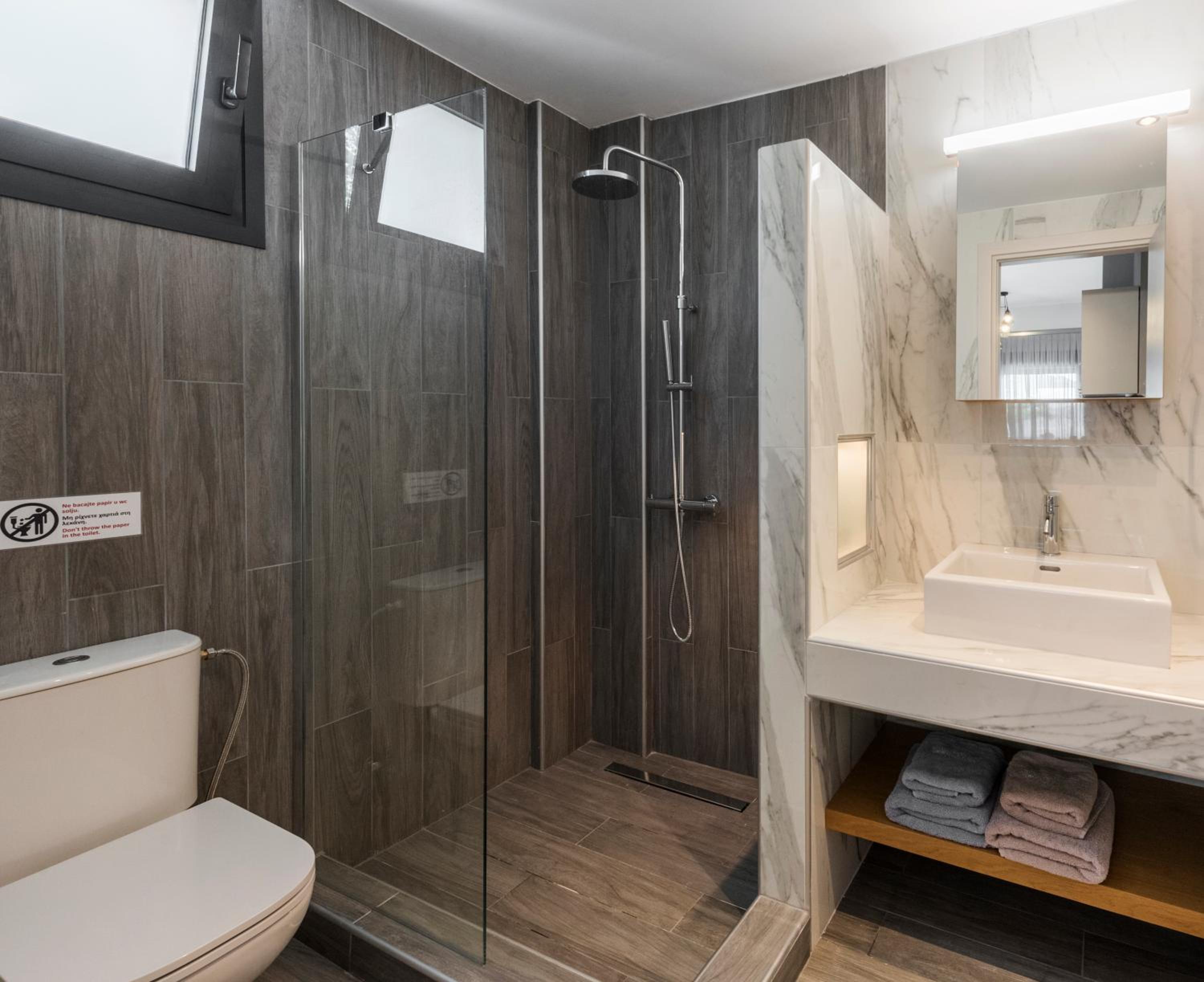 While the apartman is good sized the bathroom is on the small side. The shower has no door, so if one is using the otherwise great rain shower head - the whole bathroom gets wet.
