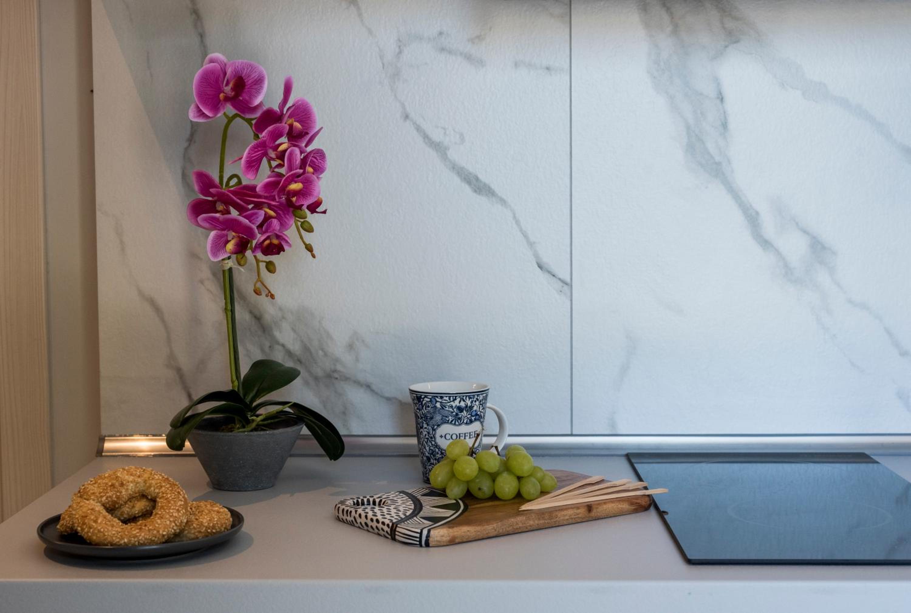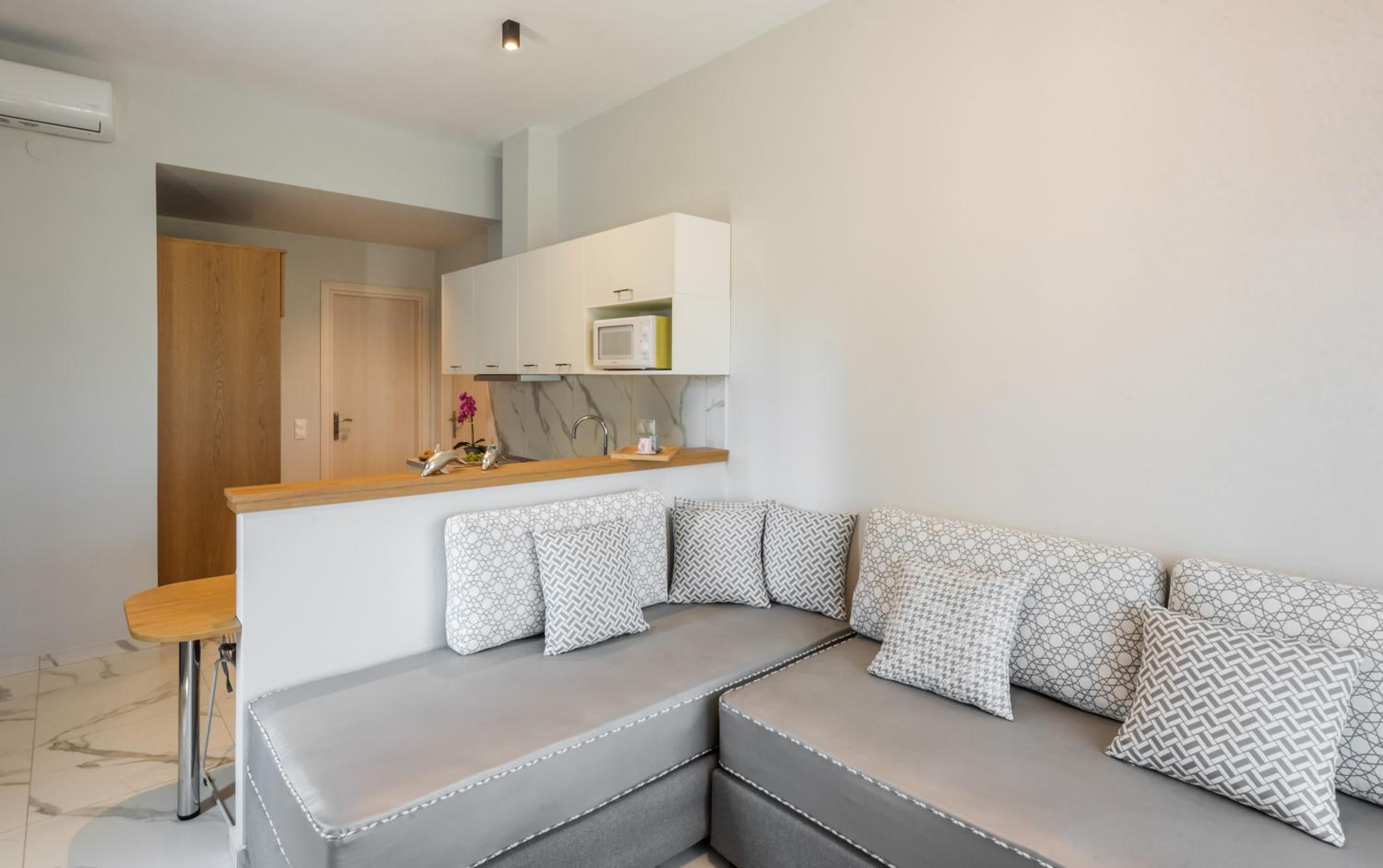 The interior of this apartment is definitely not suitable for four adults. It's ergonomically inadequate, even for families with children. The bedroom area is smaller than a standard bedroom, and there's not even a nightstand at the bedside. The bedroom wardrobe is so small you can't even open and move suitcases. A separate wardrobe has been added to the kitchen, making the space extremely cramped. Using two sofa beds turns the entire space into a dormitory :) Upon arrival, I smelled urine in the bathroom. While the property is convenient for two people, it's definitely not suitable for three or four people. Finally, I want to mention the refreshments; there were only three bottles of water in the closet. It's the least efficient property we've visited so far :)