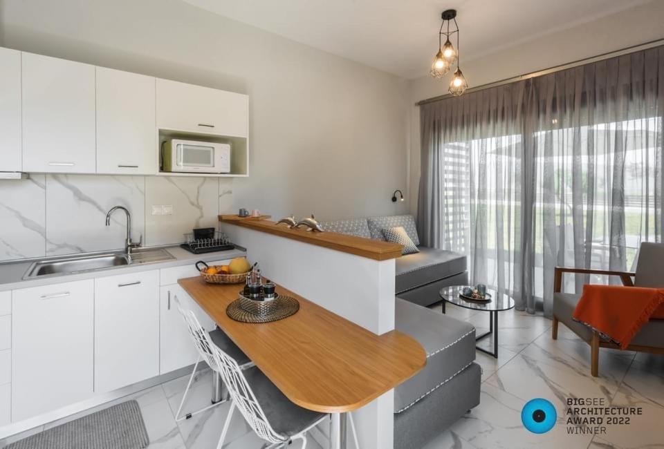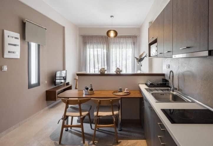 Great location, close to the beach. New built houses, nicely organized surrounding. Excellent amenities and devices in the kitchen, really the best I've experienced so far in greece.