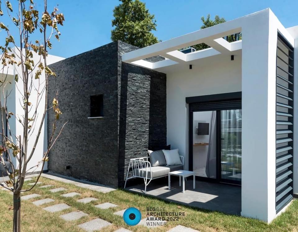 Плажа пред вилата е каменист, но вилите са супер.