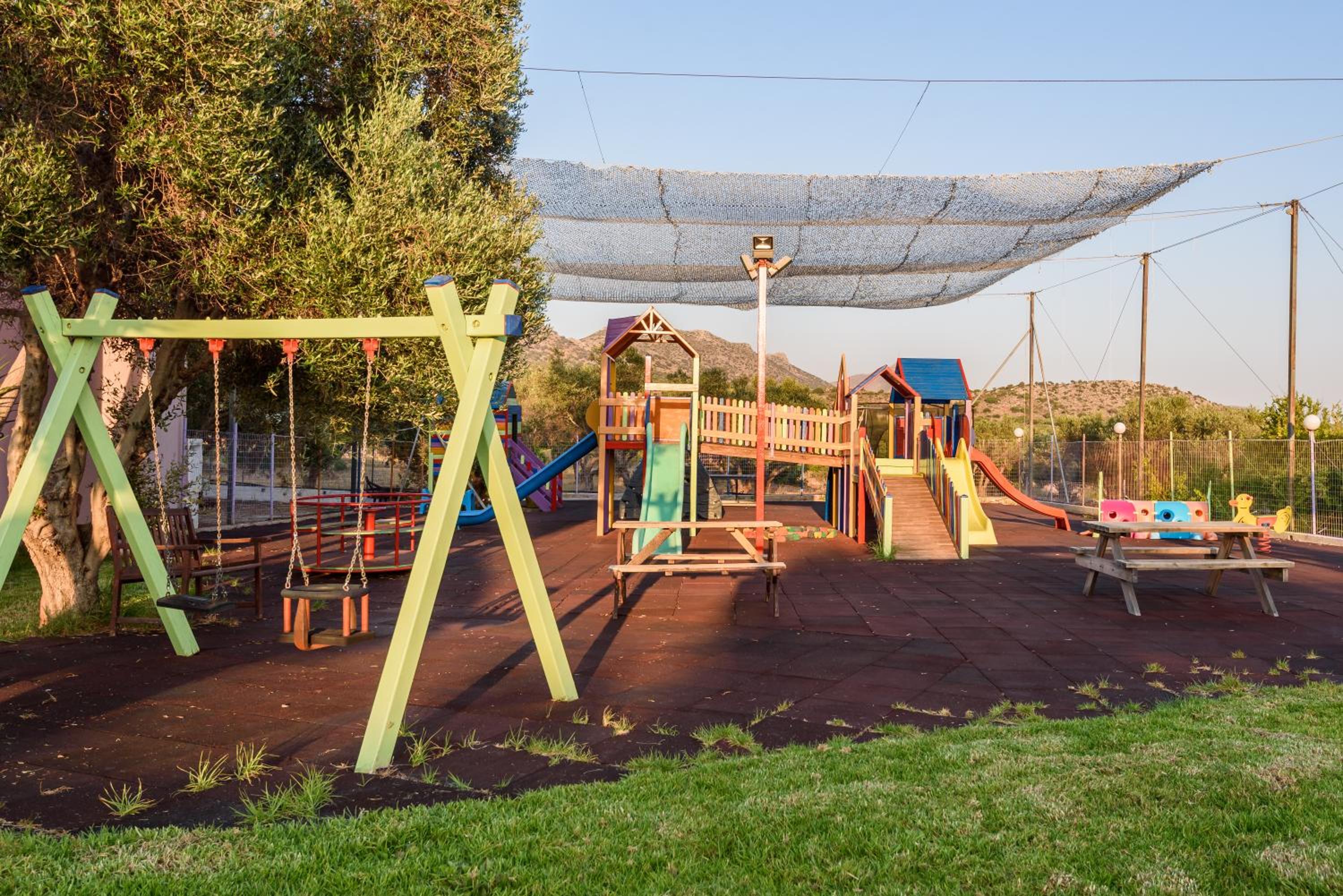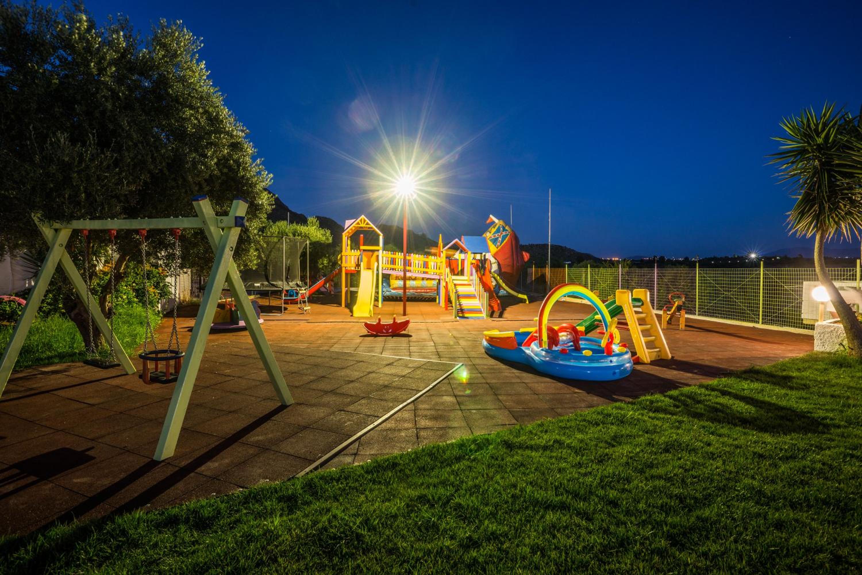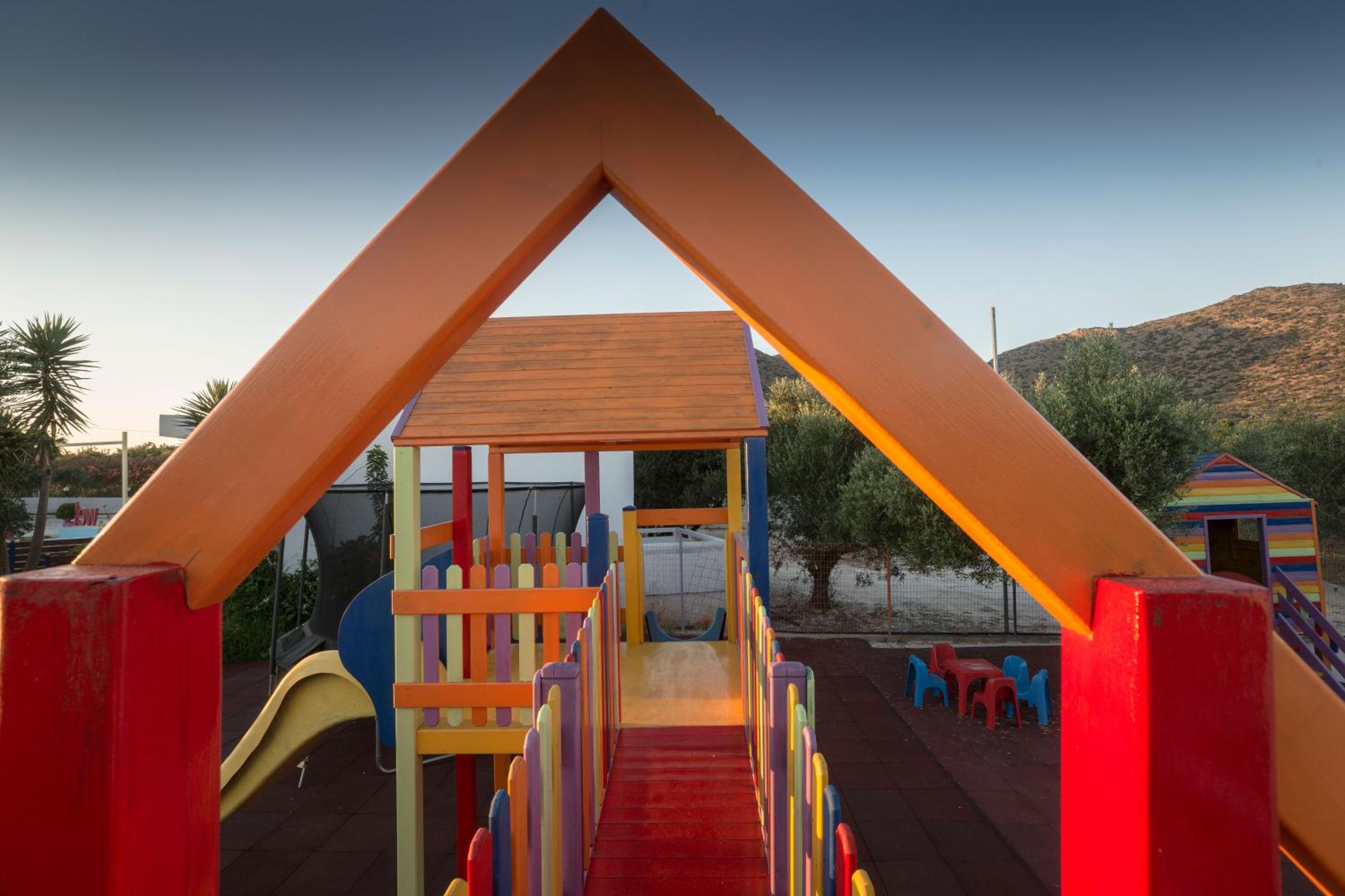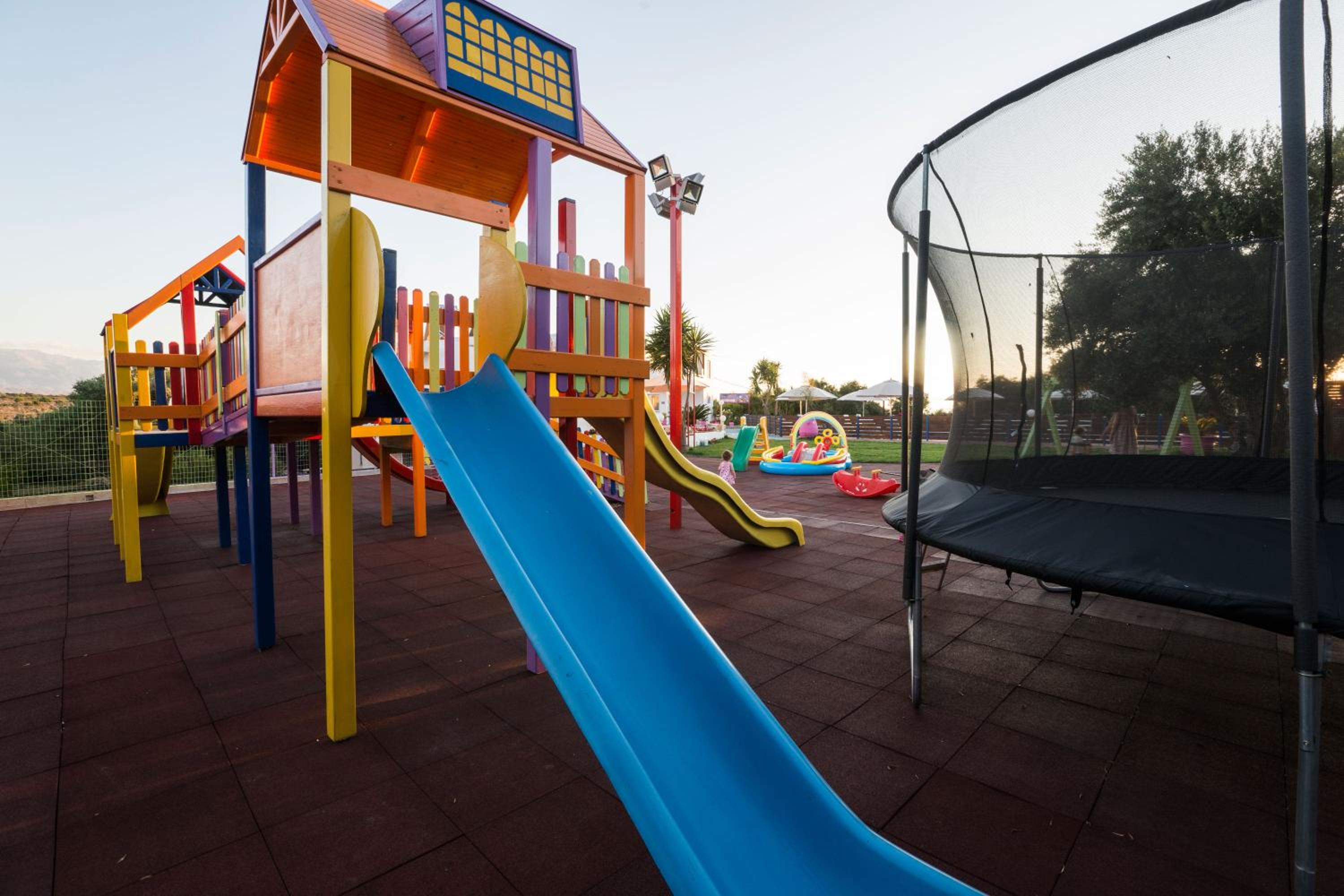 Paradisio Baby & Kinder Hotel in Stavros is a haven for families, boasting a 400-m² play area, go kart track, tree-house, ping-pong table, and an animal farm.