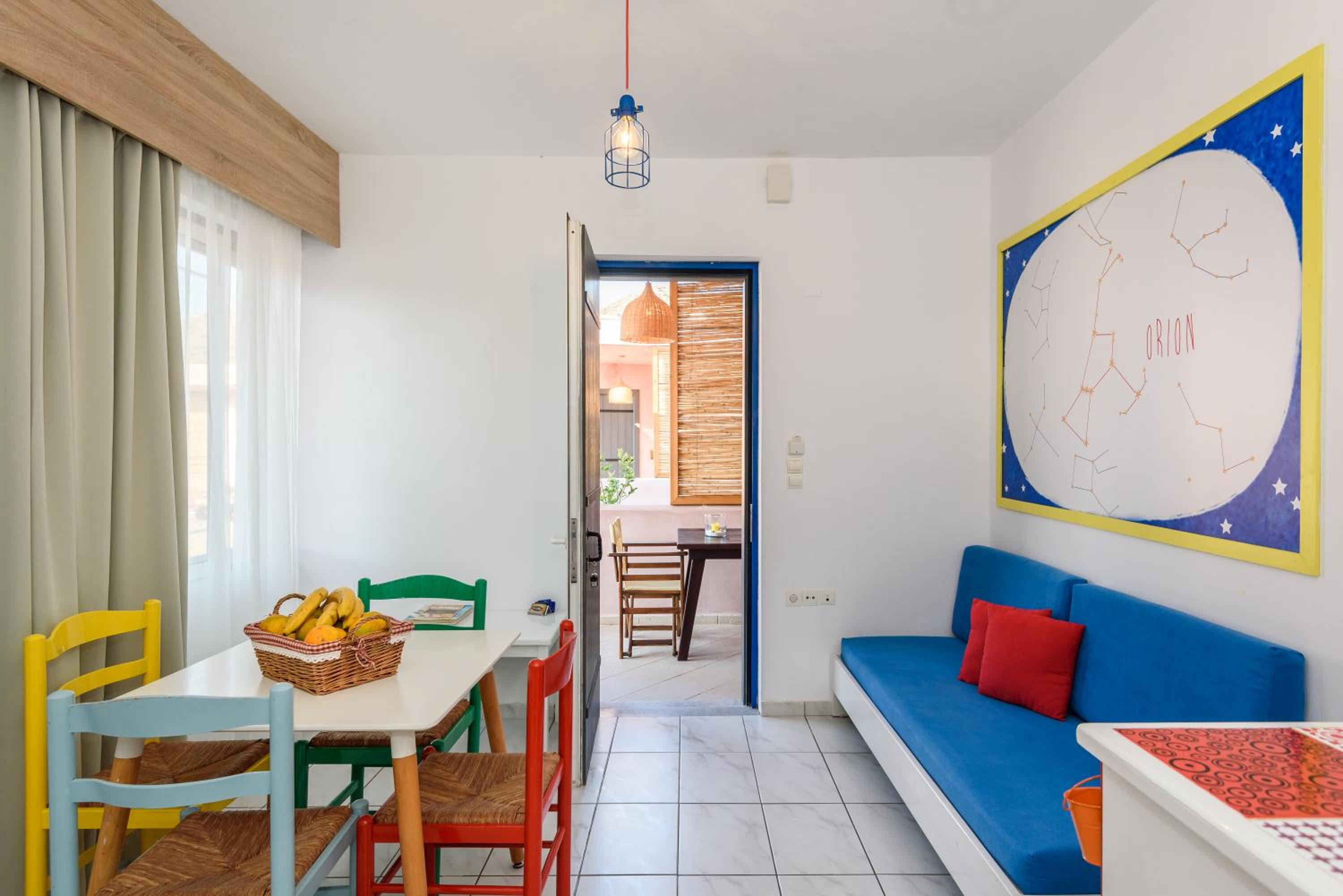 This place is fab! It’s better than the pictures and Soula has thought of so many things to help with kids! The breakfast she provides in your room is great and then they service the rooms each morning which is such a treat to be so looked after! It’s self catering and doesn’t have a restaurant but Soula hosted an amazing bbq one night and there are plenty of restaurants/shops a short drive or cycle away.