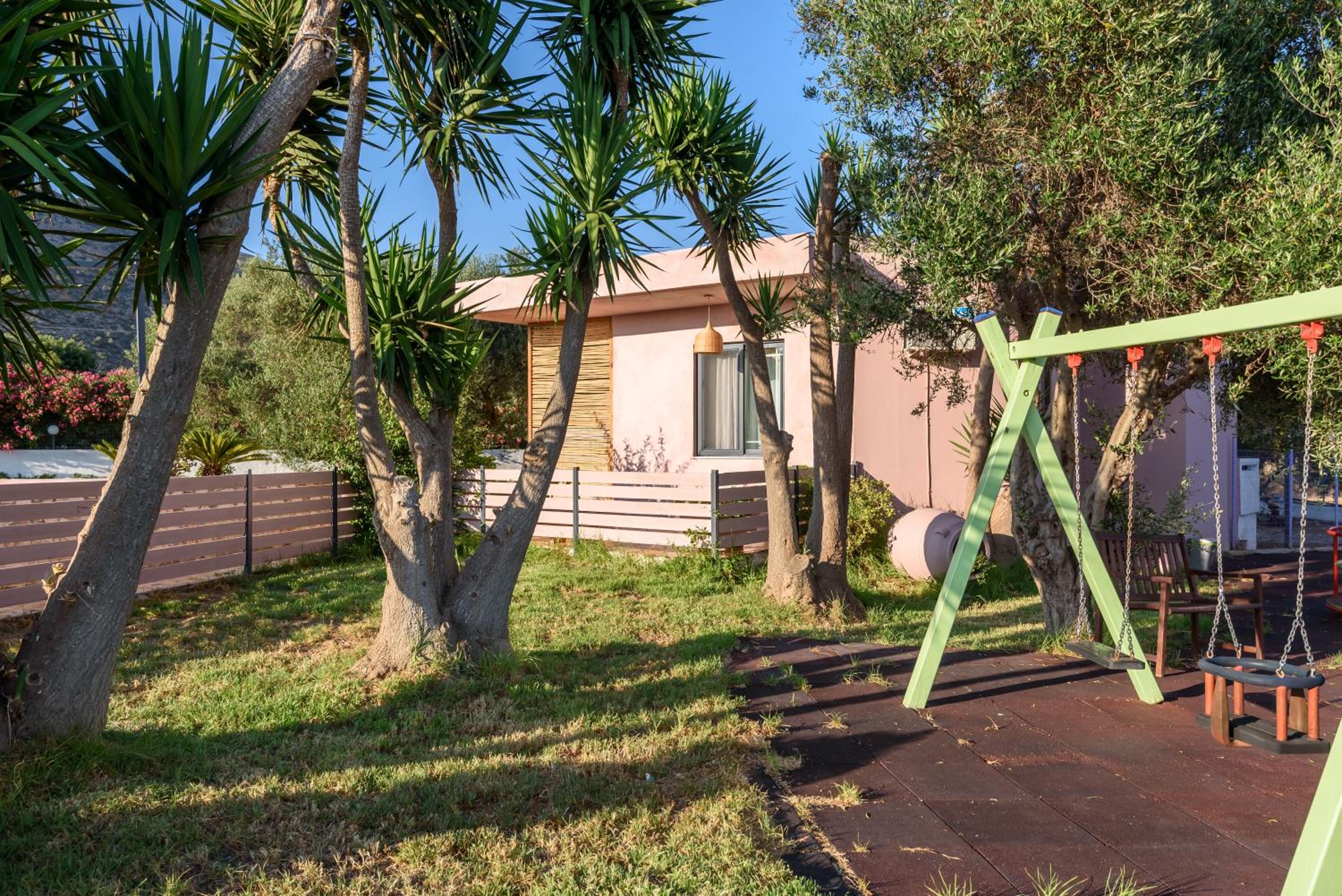 Everything! The swimming pool was great. The room and facilities were spotless and comfortable. It was safe and child friendly. But most of all, we really enjoyed the community feel of the place. Our child played with other kids nonstop and the staff was very welcoming. The Sunday barbecue was really special and the best meal we had during our stay in Crete.