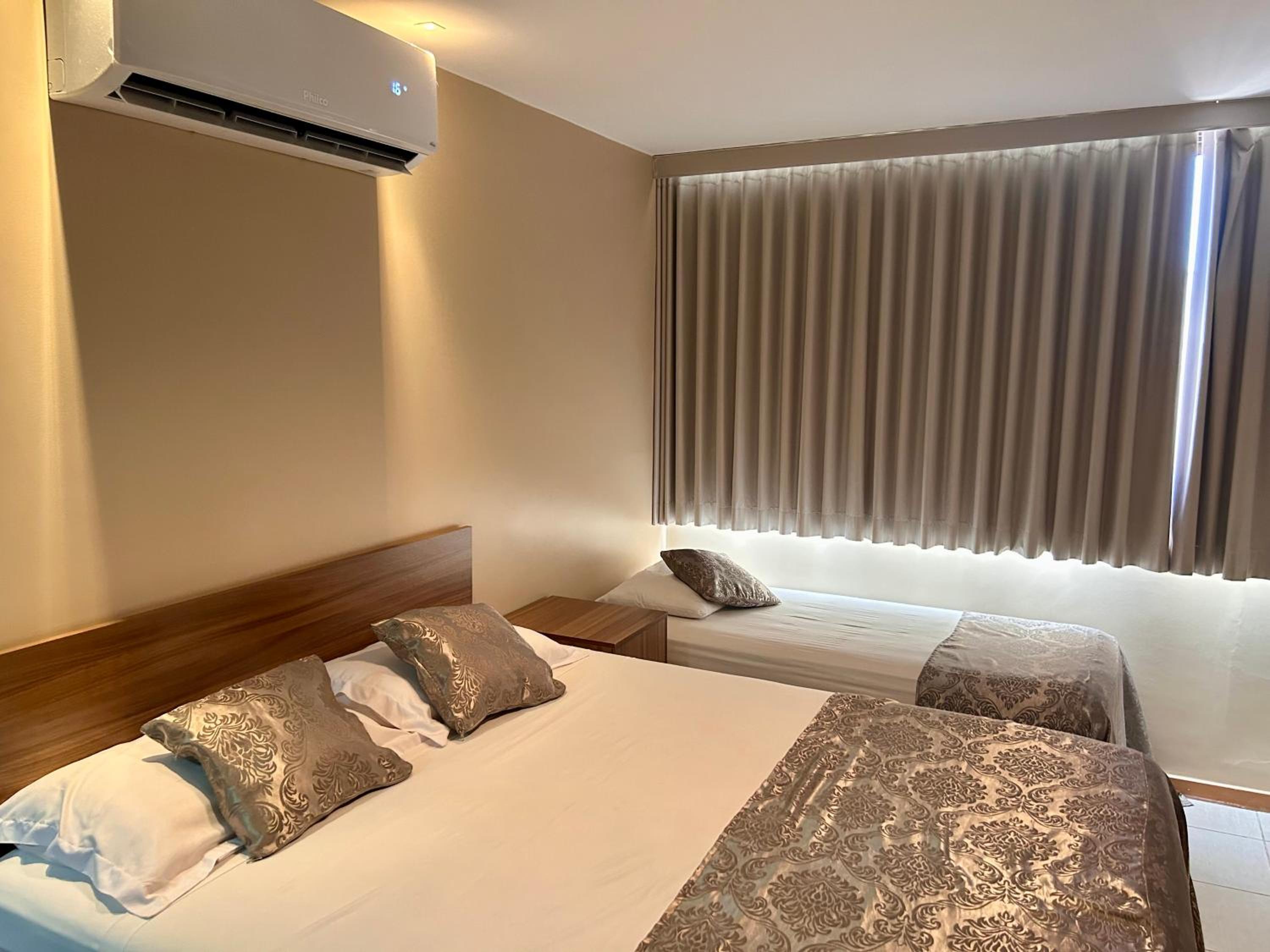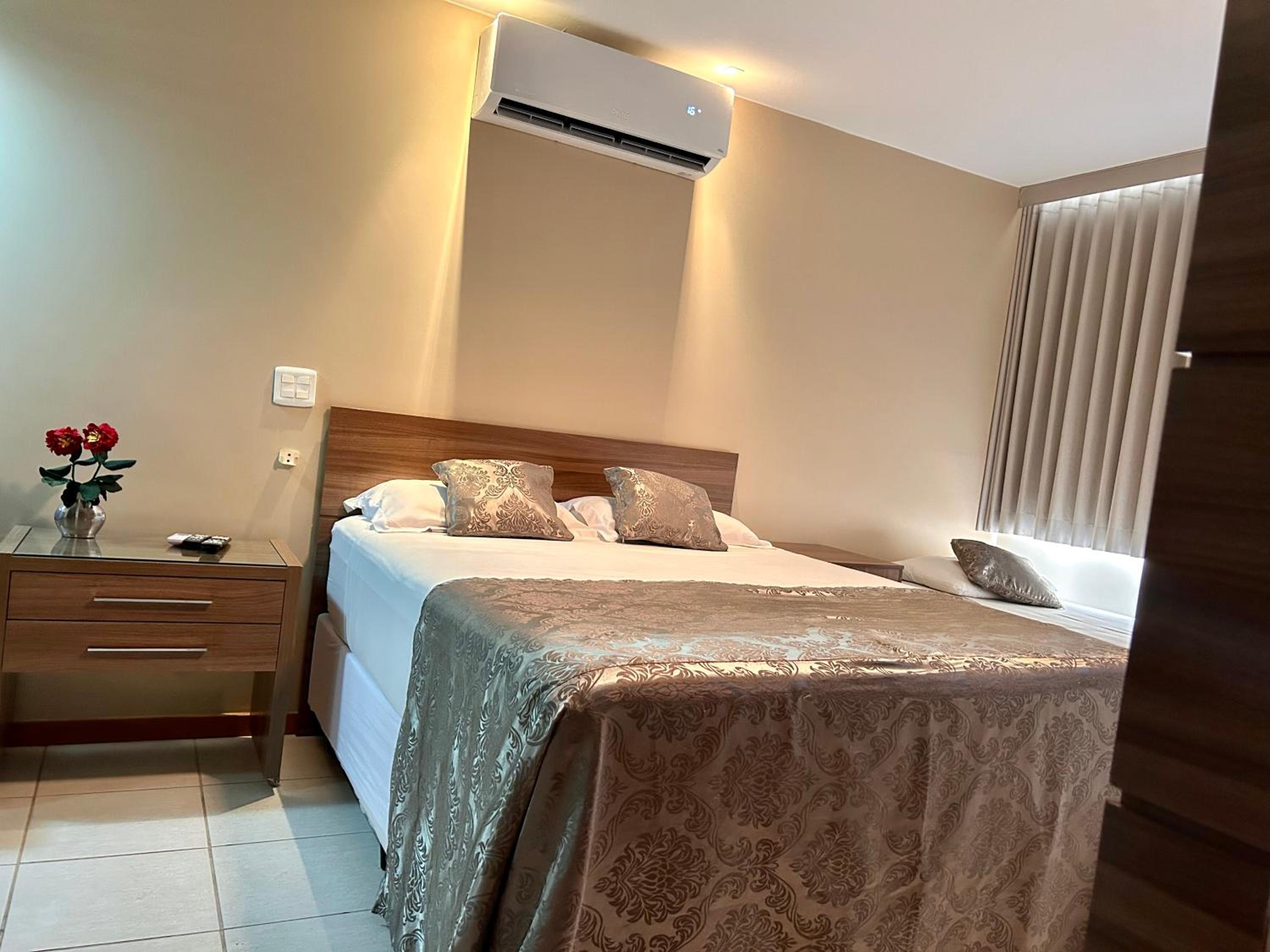 Experience the ultimate comfort at Duplex Apartamento Setor Hoteliero Norte, just steps away from Monumental Axis. Indulge in the city view from your neatly-decorated apartment equipped with modern amenities like a flat-screen TV, air conditioning, and a private sauna.