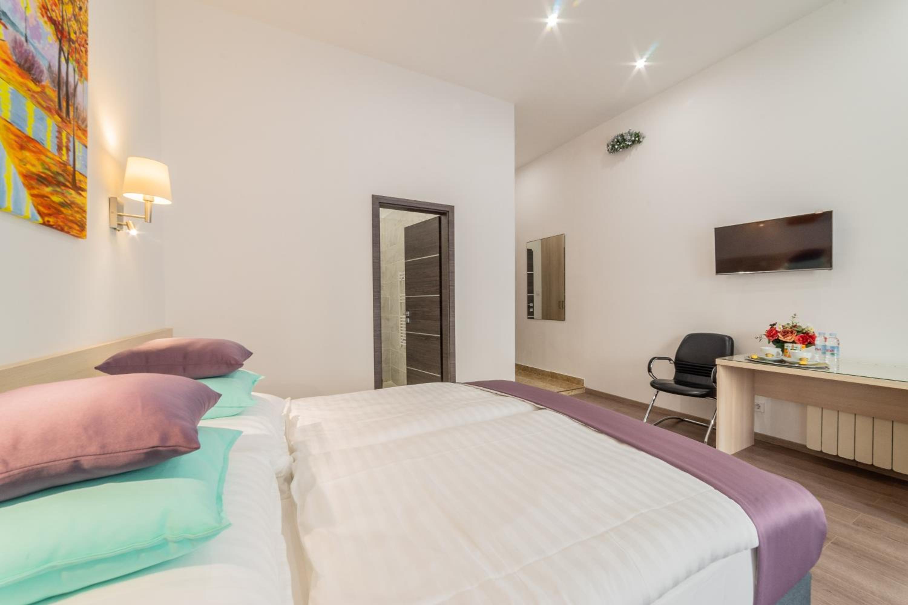Расположение самой гостиницы очень удачное. Исторические места в шаговой доступности. Неспешноая прогулка в 25-30 минут и вы у Парламента или на цепной мосту. Большая синагога вообще в 5ти минутах. Включённый завтрак был в кафе Астория в 3х минутах неспешной хотьбы. Для завтрака вполне и место красивое с дружелюбным персоналом.Был февраль, но в гостинице было тепло и горячая вода была постоянно. Нам понравилось.