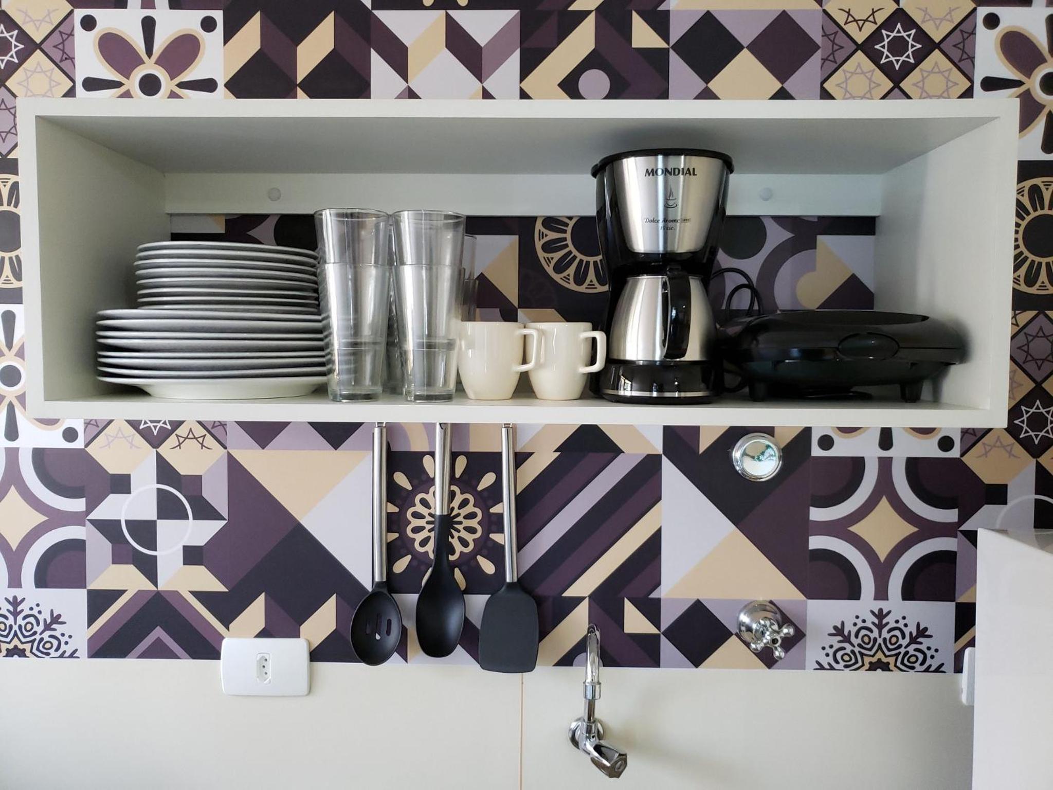 Cozinha pouca equipada, sem espaço para guardar alimentos e falta de alguns utensílios básicos.