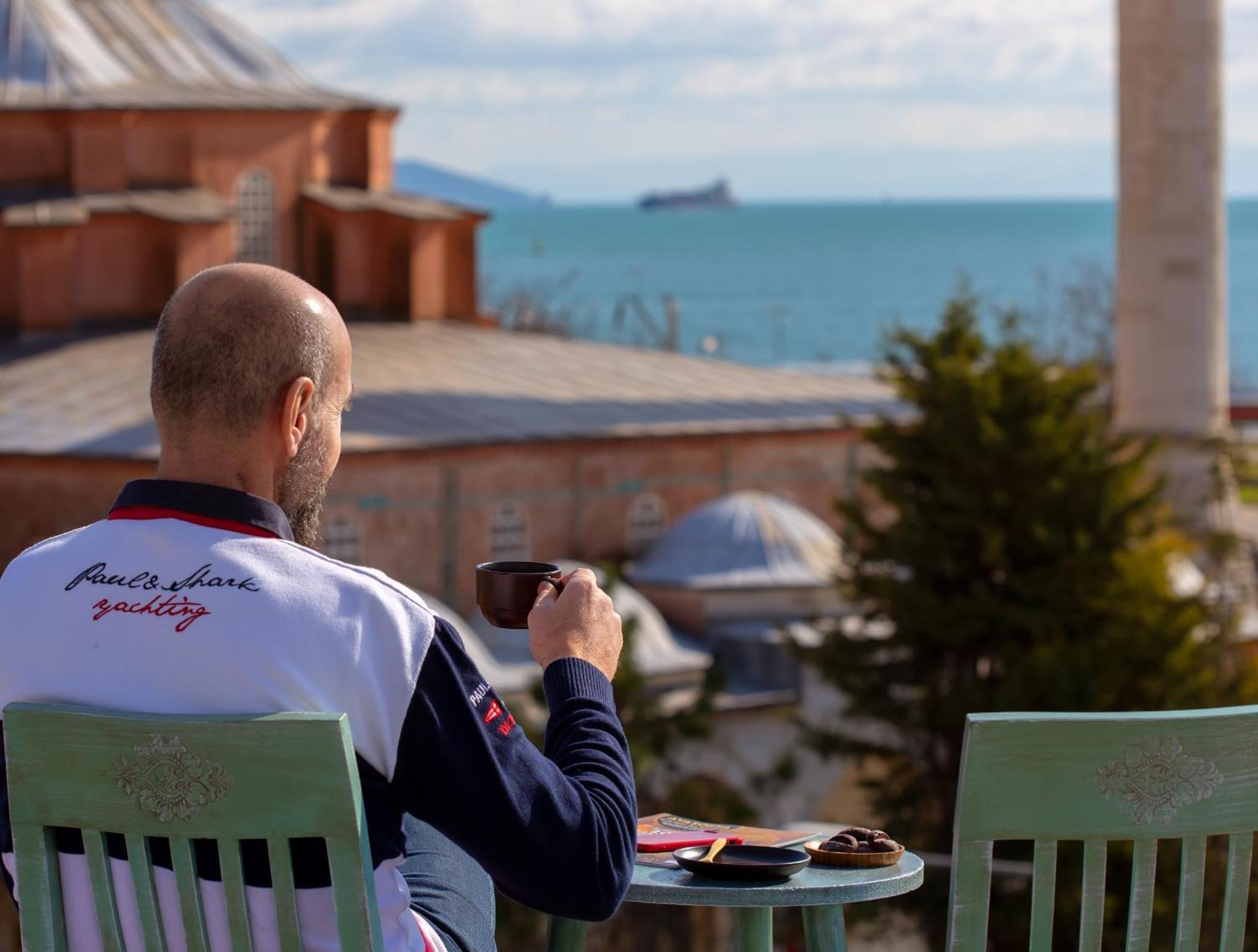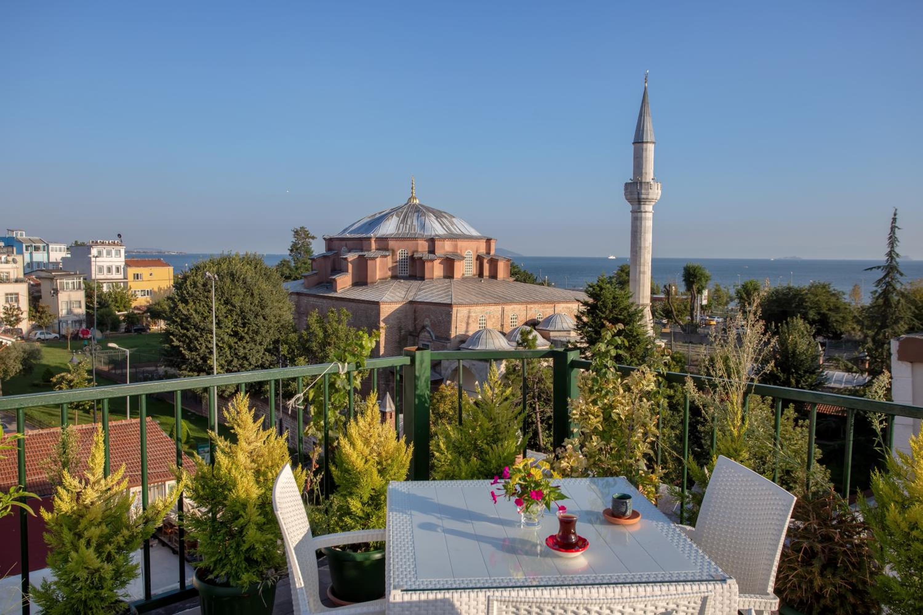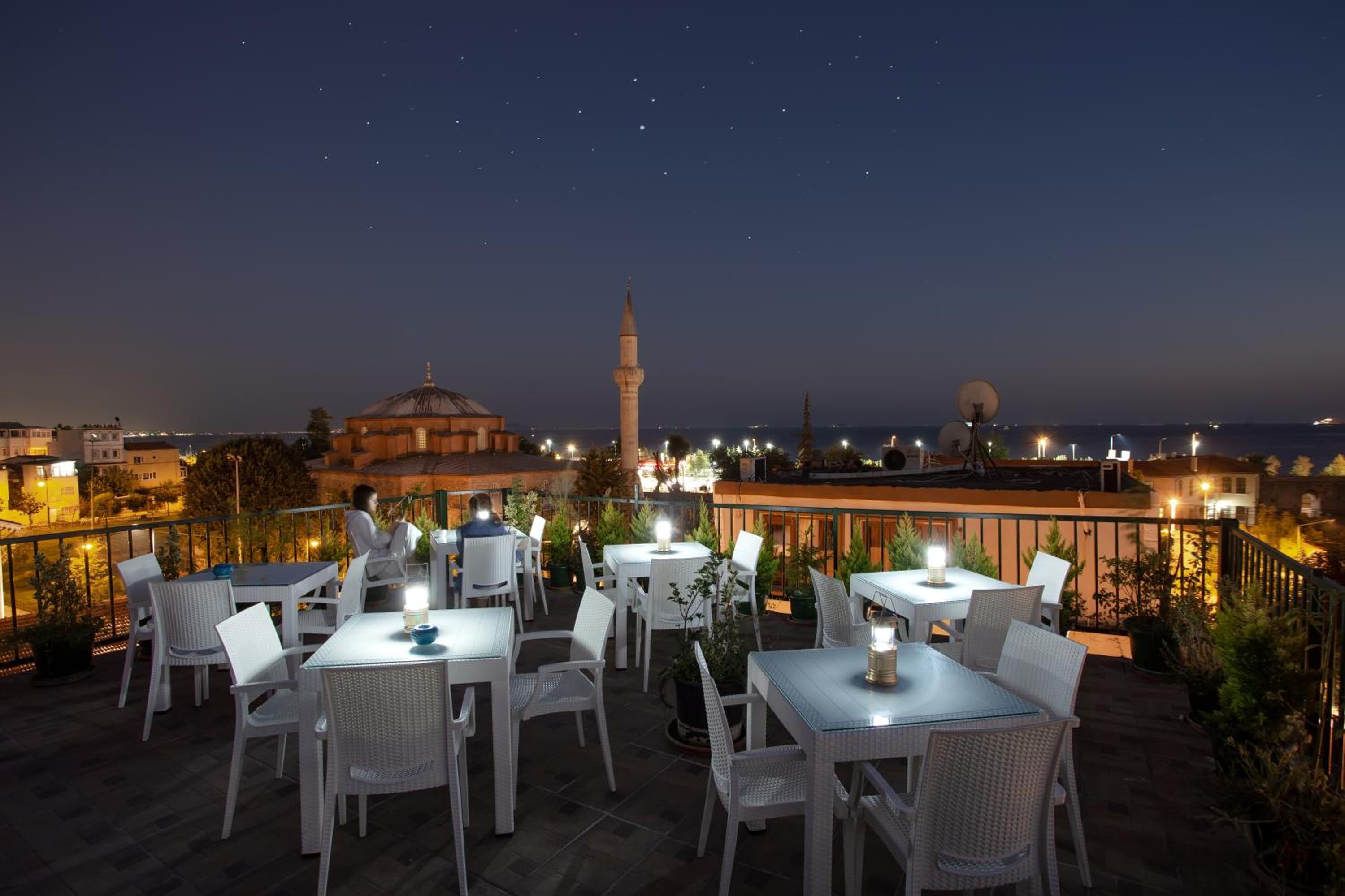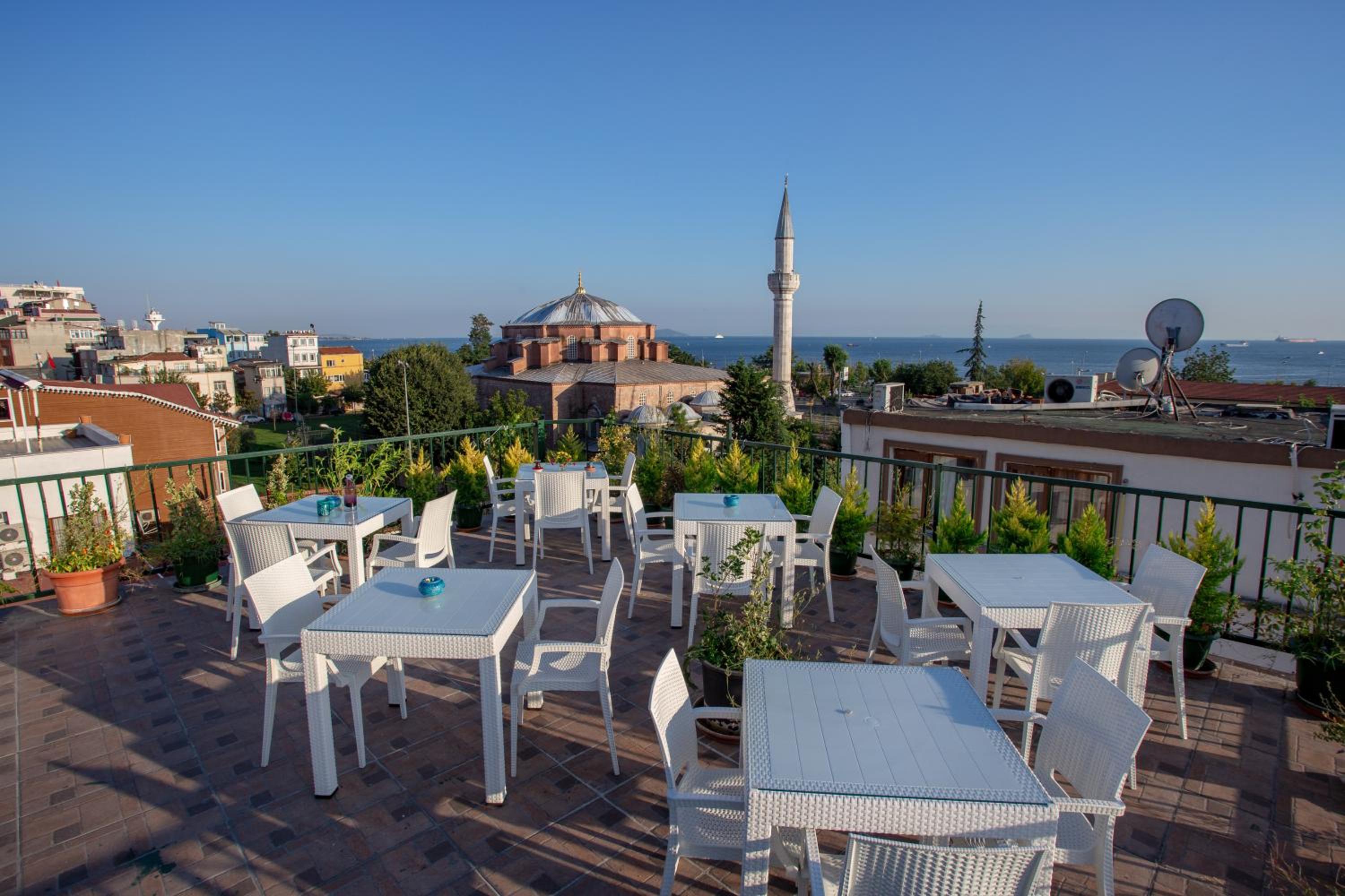 Enjoy stunning city views right from the terrace of Sofia Corner Hotel, located in the heart of Istanbul. Perfect for soaking in the vibrant atmosphere of the city.