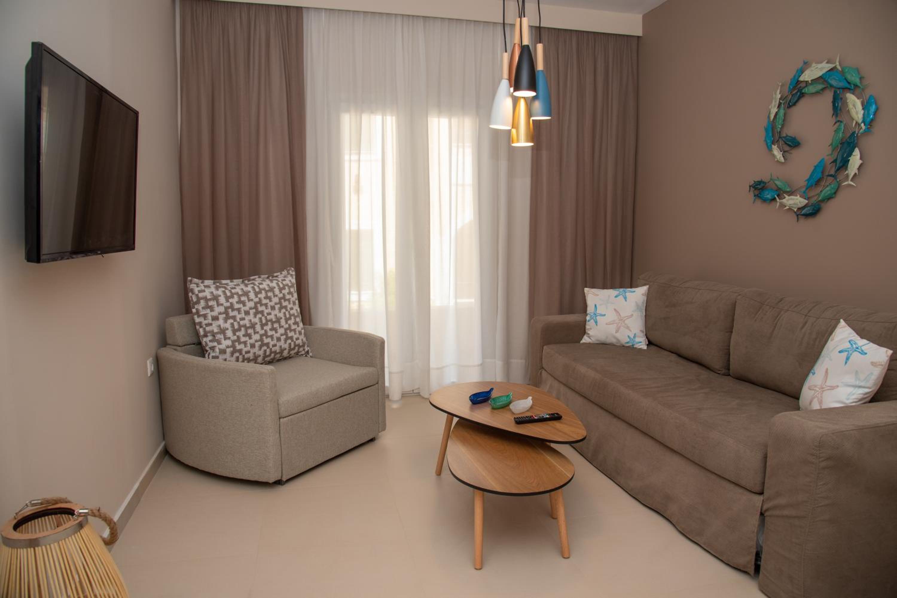 Indulge in luxury with air-conditioned suites featuring flat-screen TVs, fully equipped kitchens, and elegant bathrooms with walk-in showers and plush bathrobes. Stay connected with free WiFi and unwind in comfort with bed linen and towels provided in every unit.