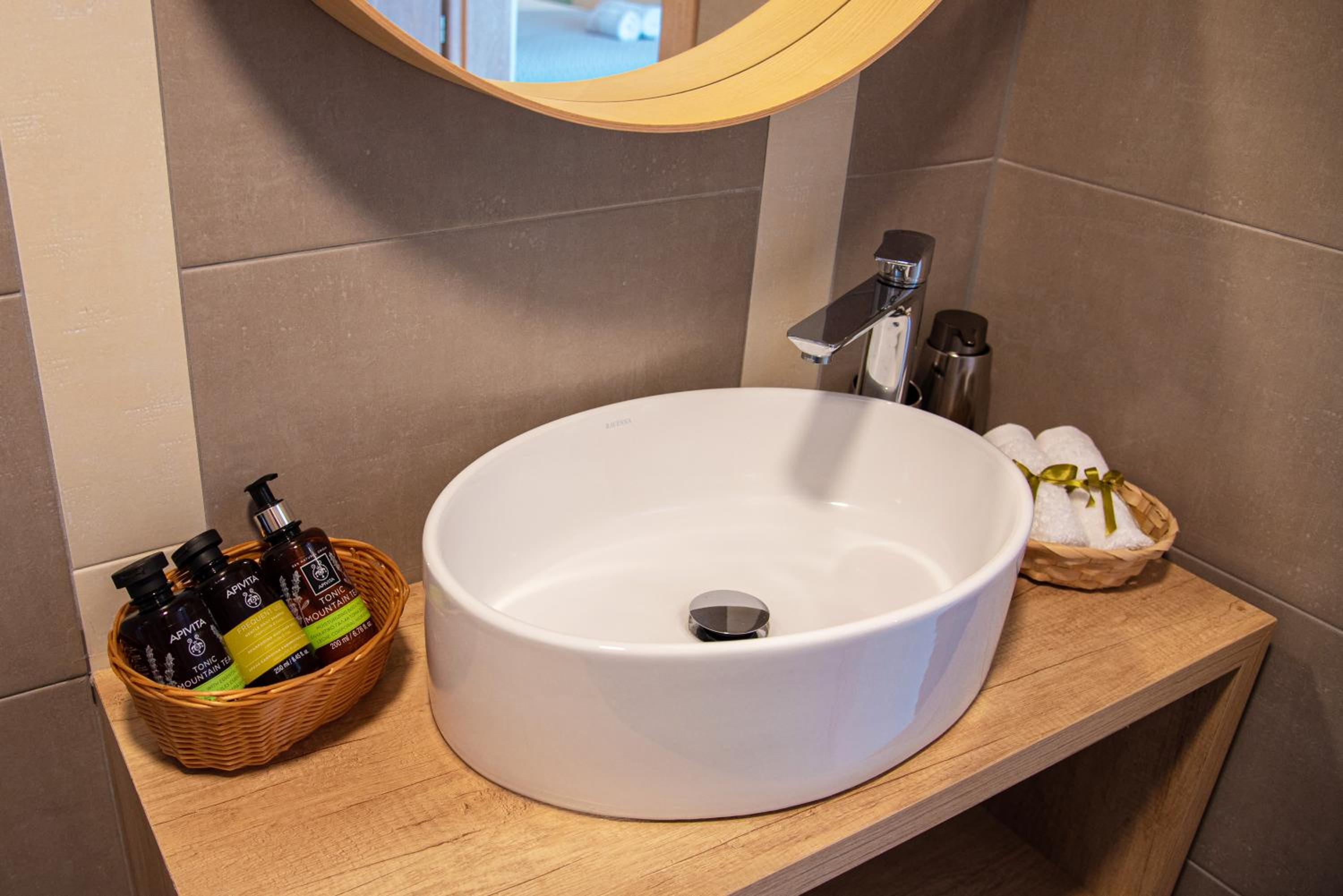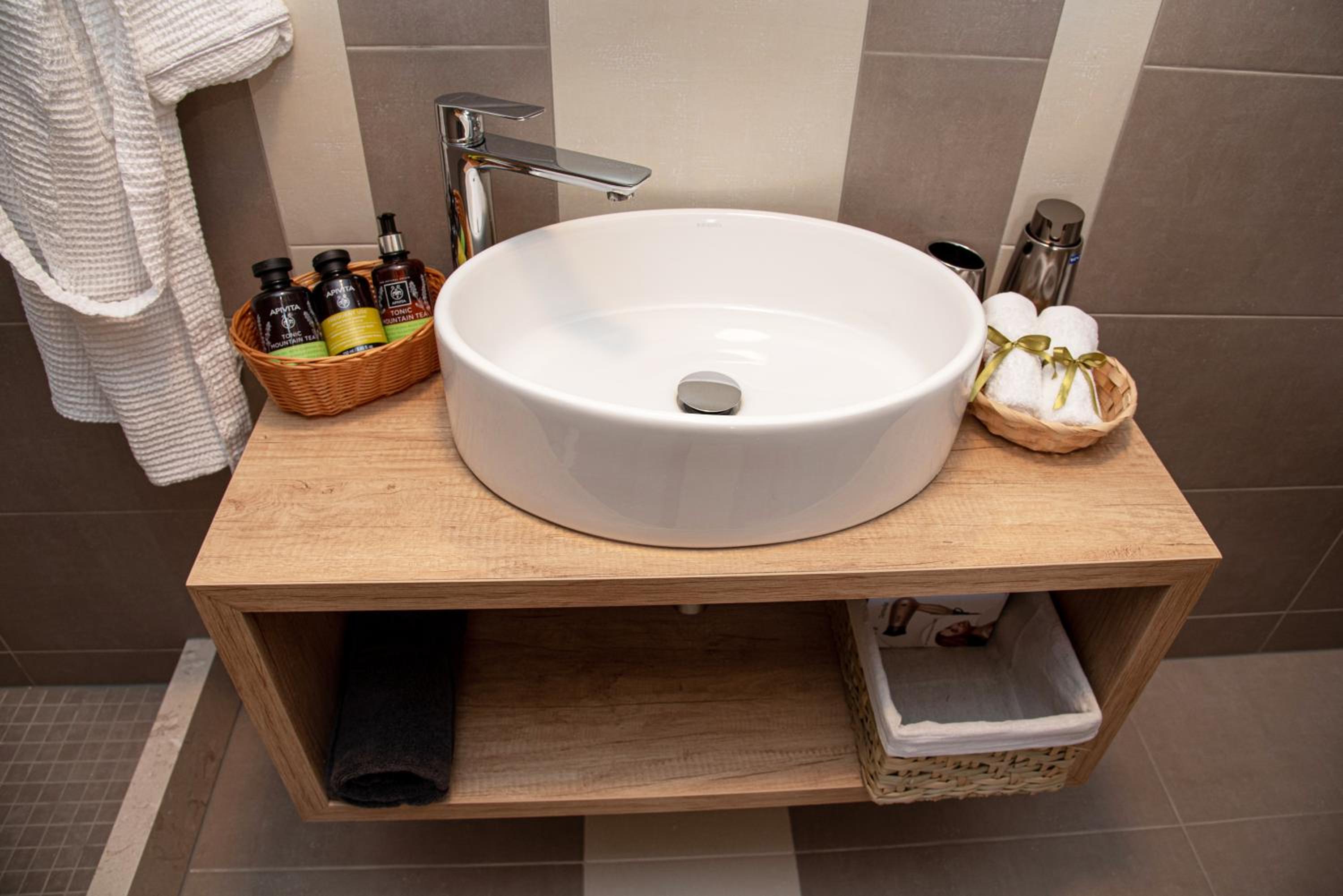 Upon our arrival, there were water, snacks, cheese, and bread as a welcome gift, and even their local liqueur. The bathroom was fully stocked with toiletries, cleaning was done every other day, the bed was very comfortable, and the bathrobes and towels in the bathroom were simply luxurious.