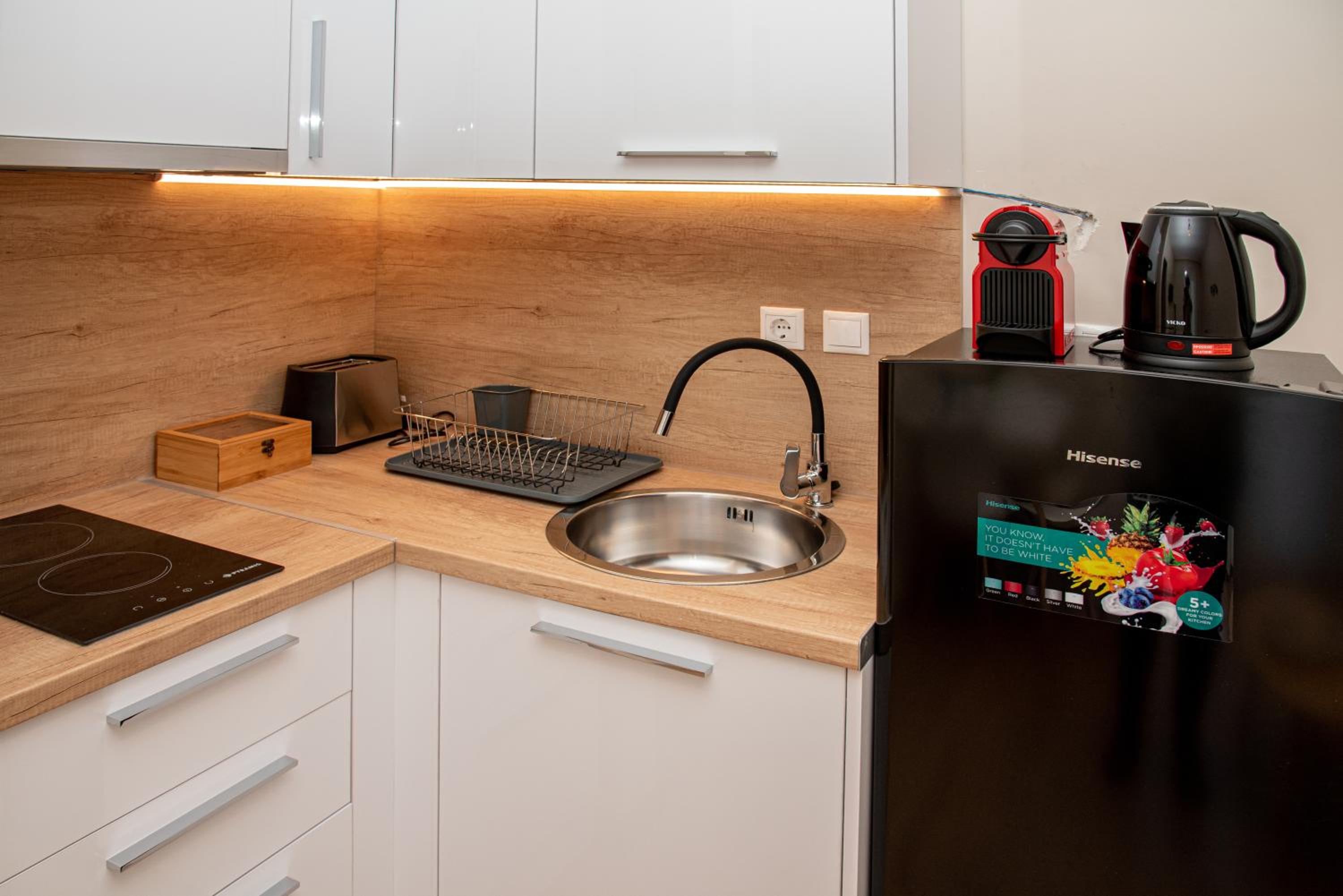 Sehr gute Kommunikation vorab, problemloser Check-In mit netter Dame. Wohnung war top, relativ neu, sauber und geräumig, in einer ruhigen Nebengasse, zu Fuß 5-7 Minuten vom Hafen gelegen. Wir waren im ersten Stock und hatten 2 Balkone mit Wäscheständer. Klimaanlage hat einwandfrei und leise funktioniert. Kaffee, Orangensaft, Toast, Butter, Marmeladen, Honig und Zwieback waren vorhanden, sodass man die Basics zum Frühstücken schon da hatte. Zur Begrüßung gab es darüber hinaus eine kleine falsche Kumquat-Likör, eine Spezialität von Korfu. In 2 Minuten Gehweite waren 2 super Tavernen, ein Bäcker und ein Supermarkt. Parken problemlos auf der Hauptstraße ums Eck (es ist nicht nötig sich für 5€ pro Nacht auf den bewachten Parkplatz zu stellen).