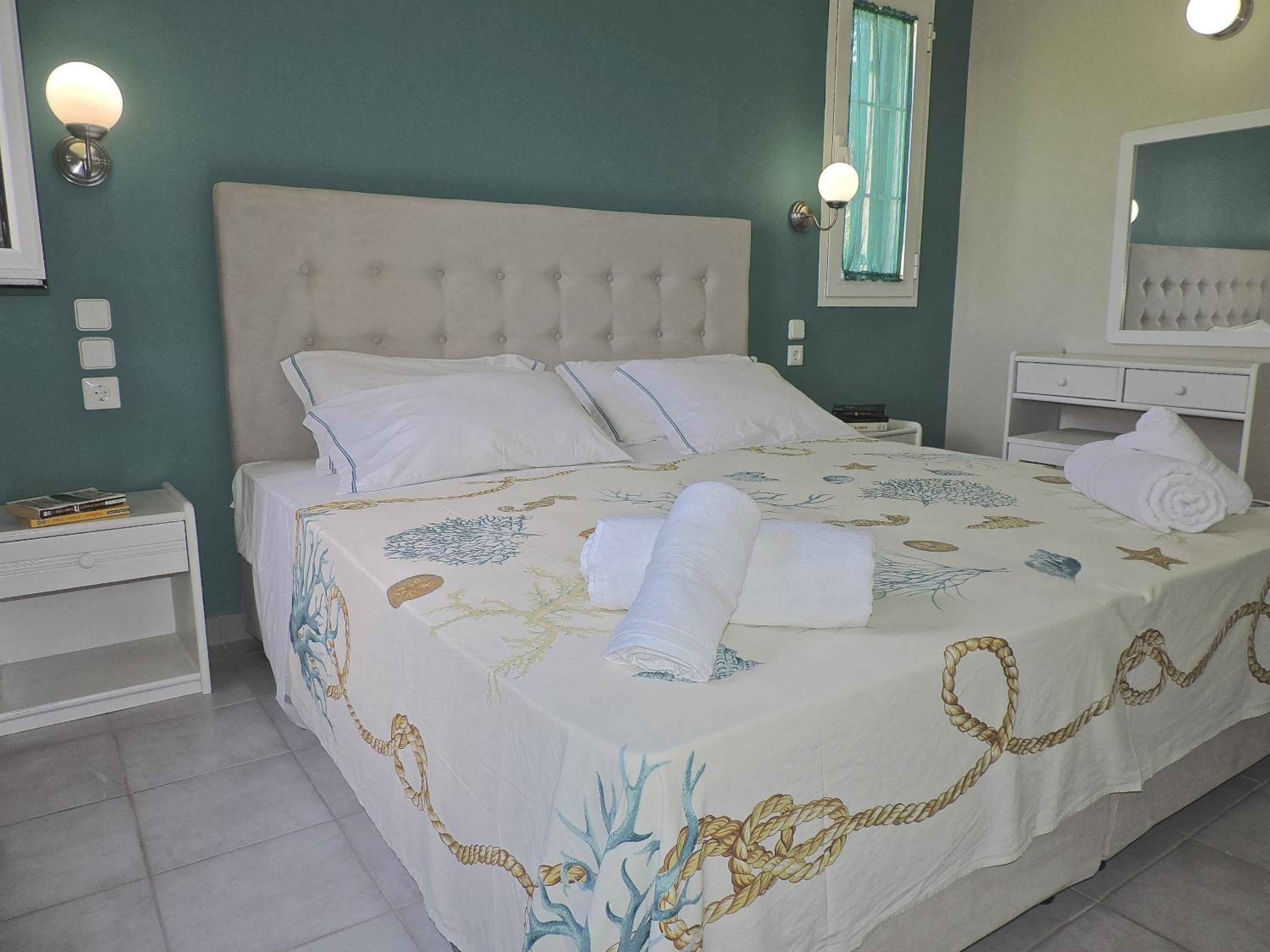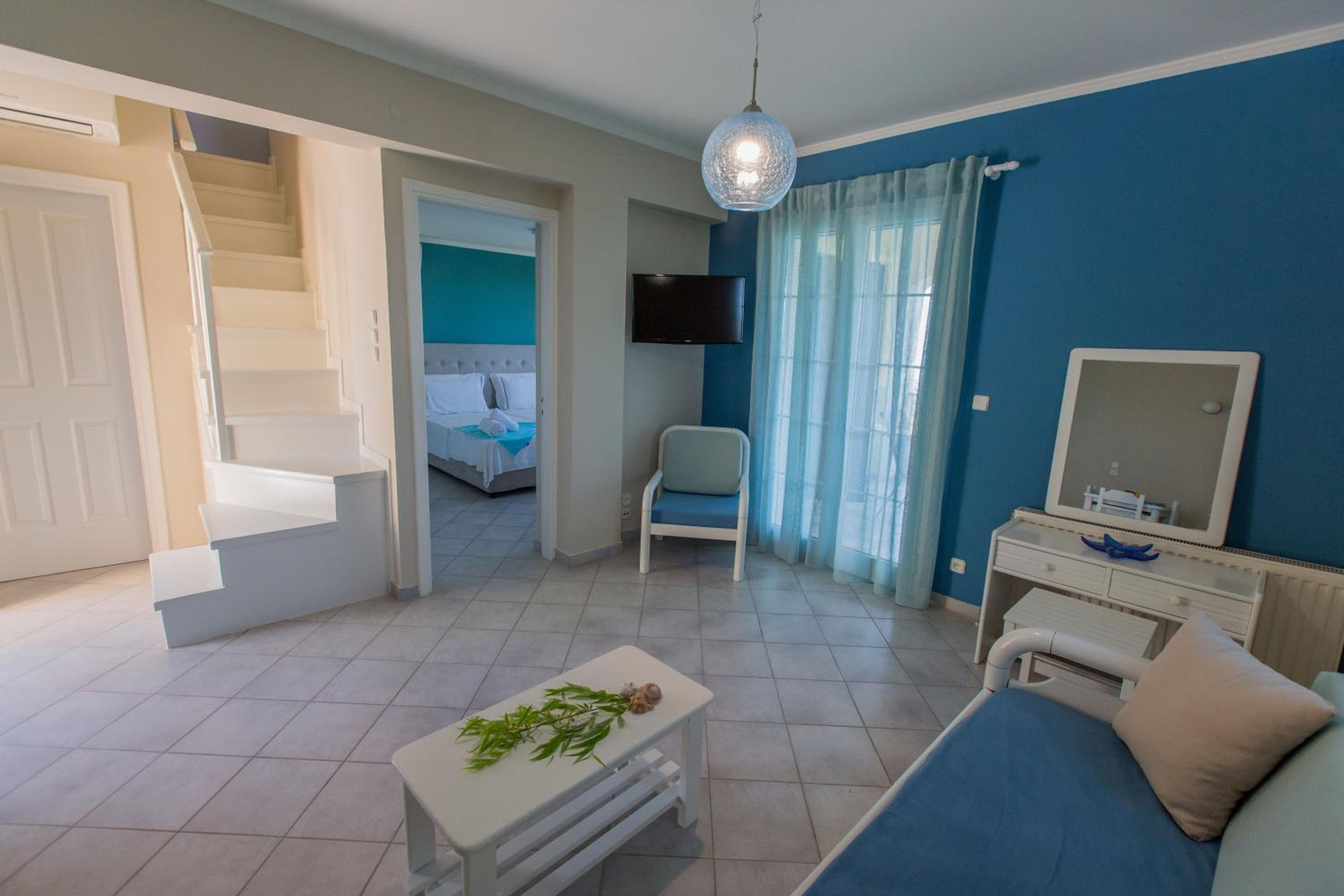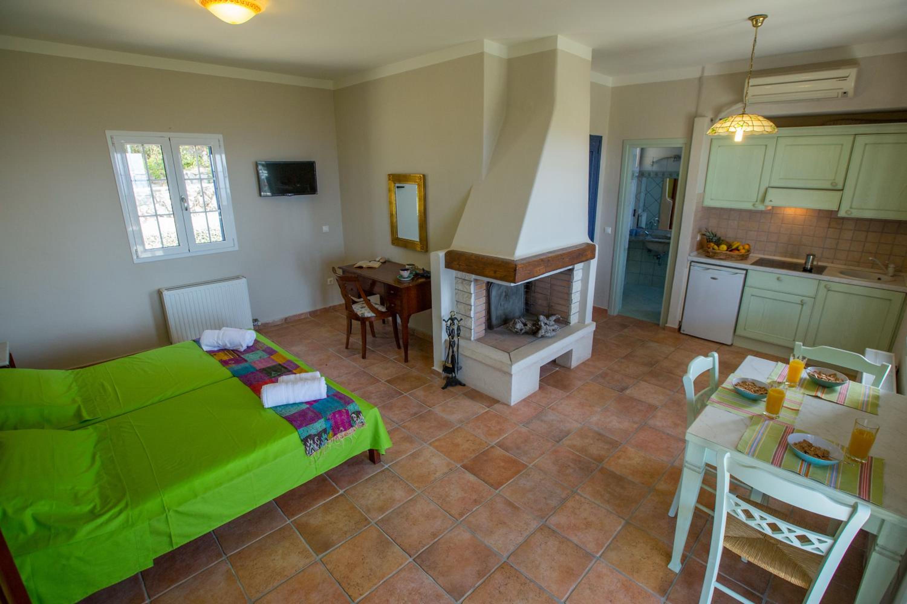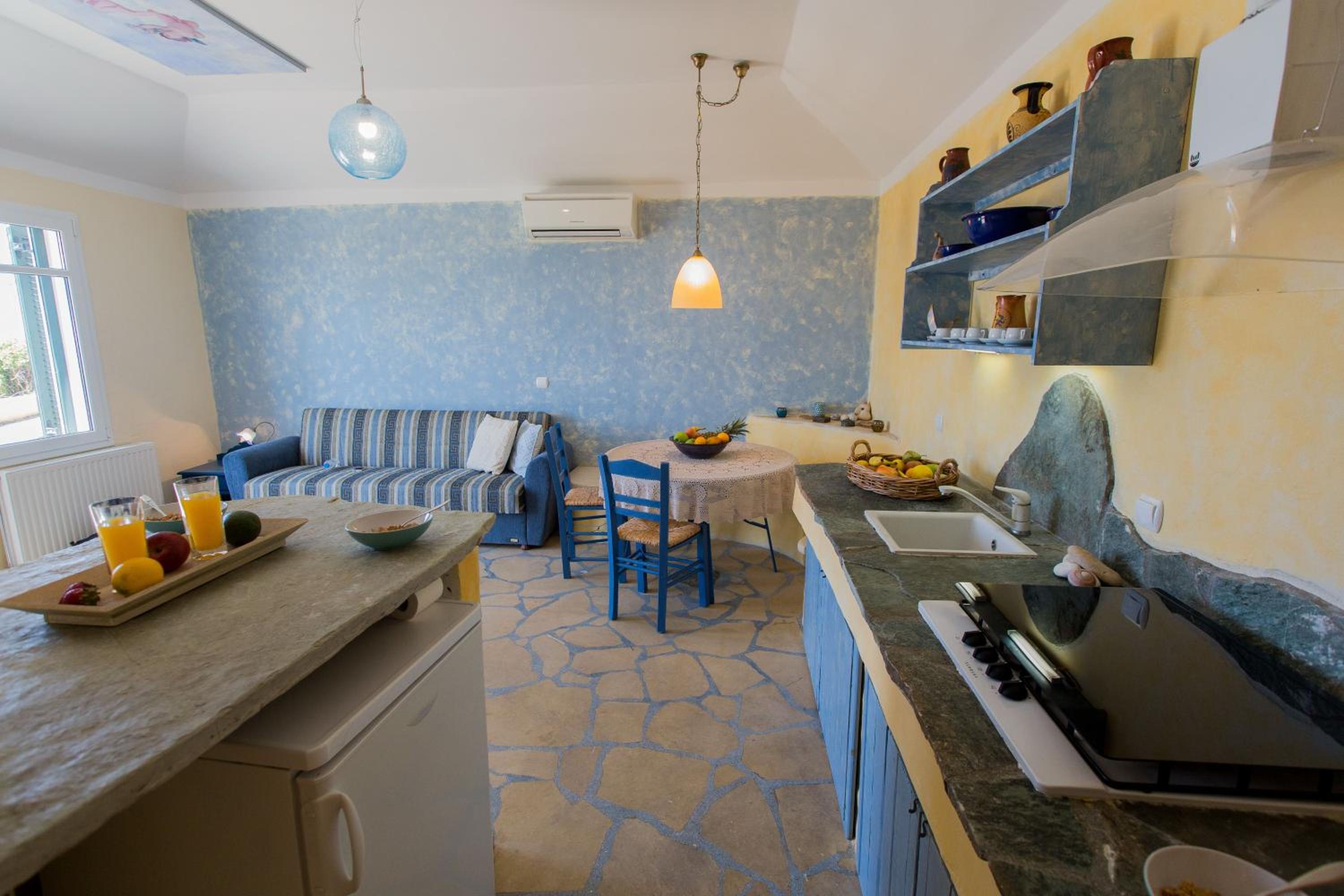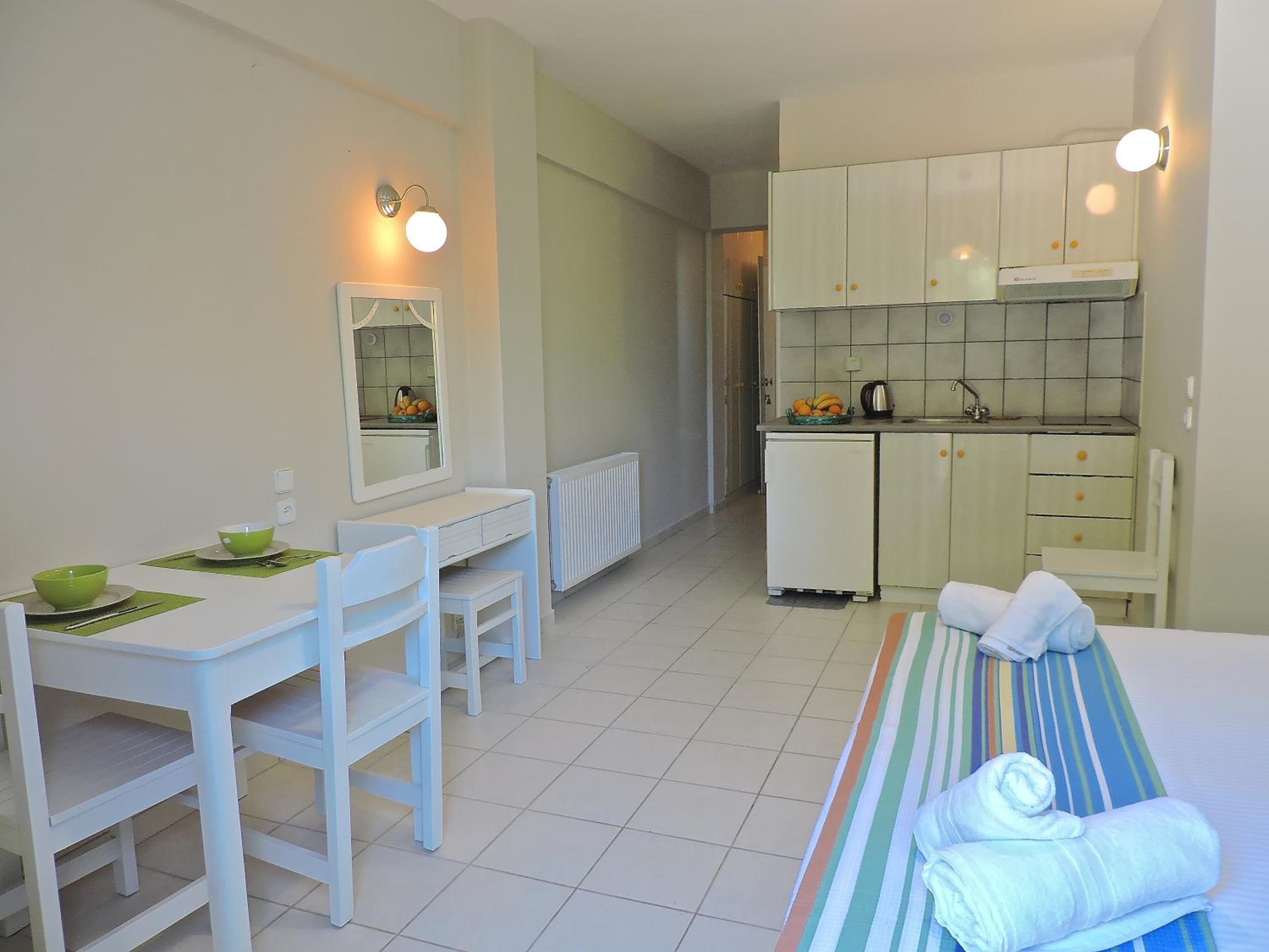 Villa Theodora offers a comfortable stay with spacious seating and dining areas, equipped with modern amenities like a fridge, coffee machine, and kettle. Some units even feature a fully equipped kitchen for added convenience. Enjoy free WiFi throughout the property and cozy bed linens provided for a restful night's sleep.