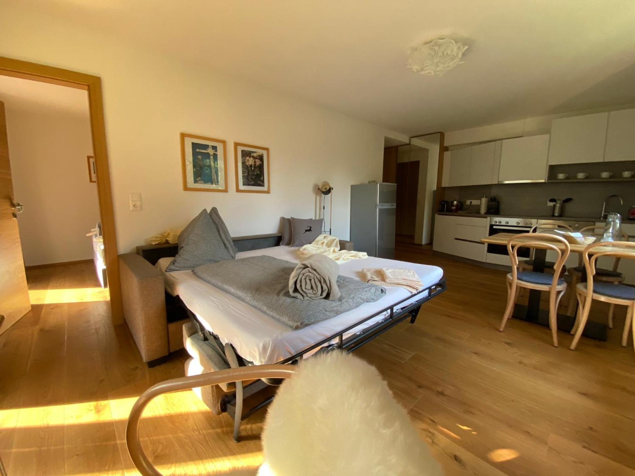 Very spacious, well cared for, friendly and very helpful staff - everything provided, even coffee pods and kitchen towels, which is not the norm in Austria. Even though there were down to minus 20 degrees Celsius during our stay, the apartment had excellent heating, with floor heating in the bathroom. Very comfortable. Definitely a location to recommend .