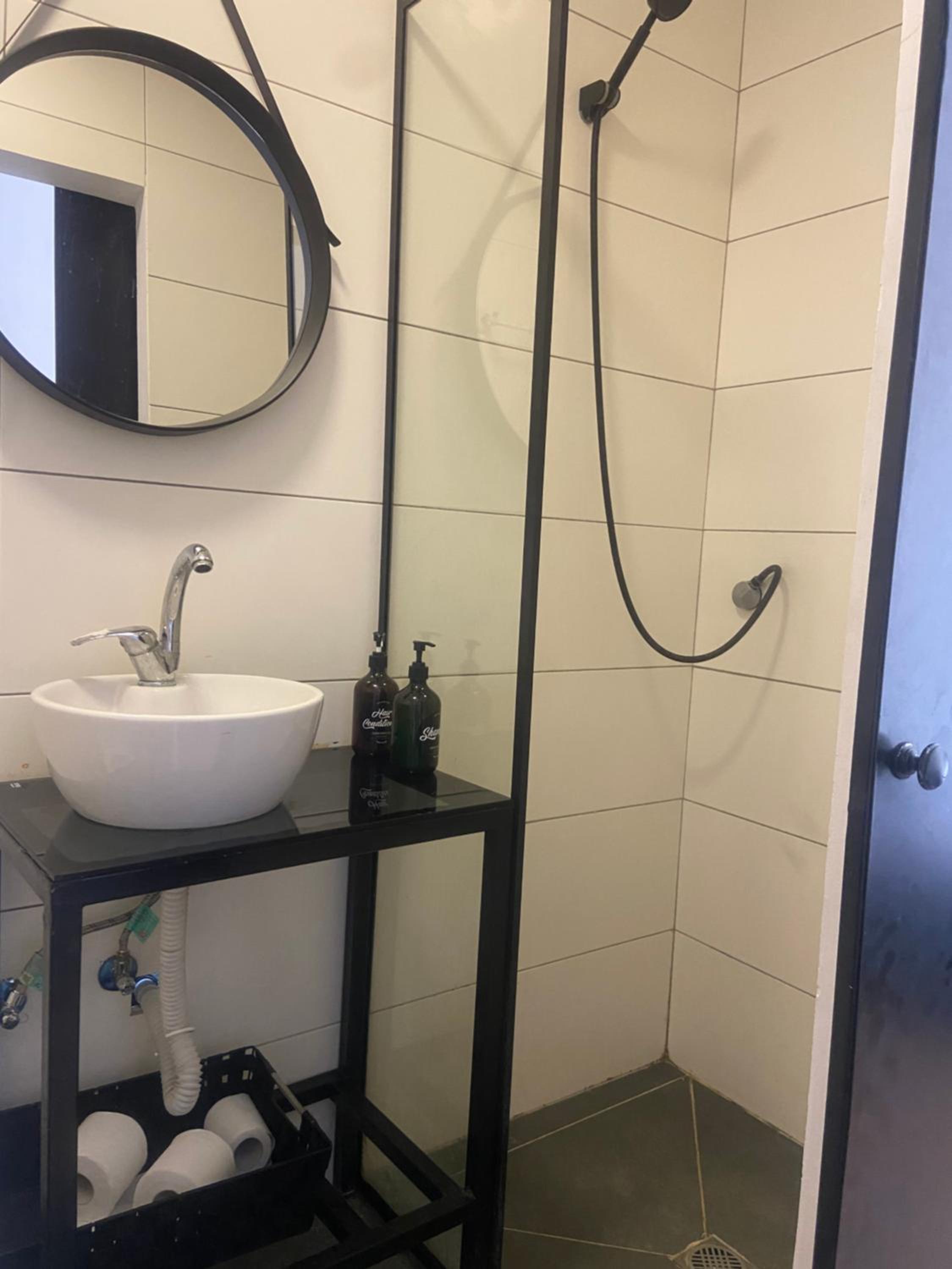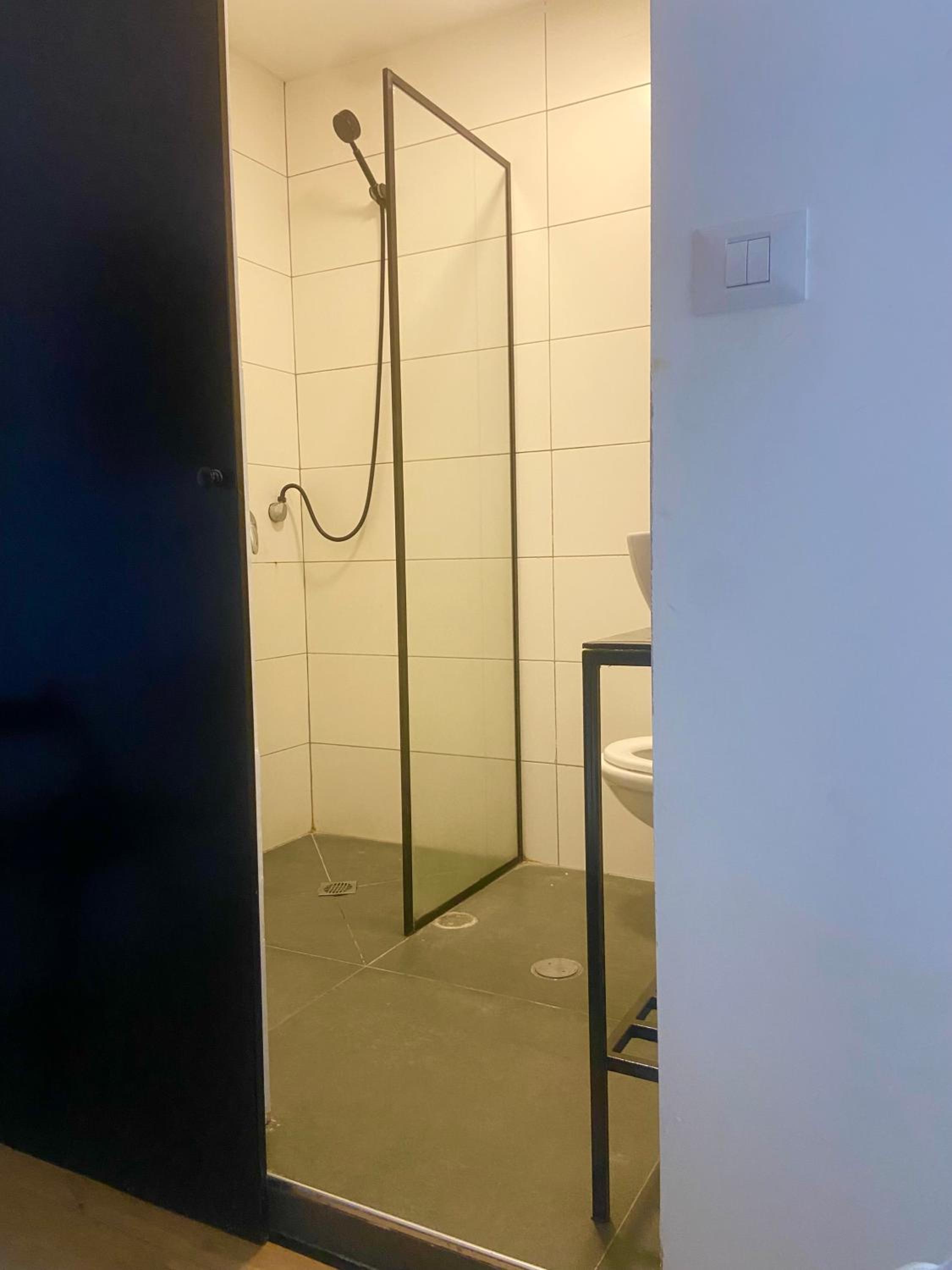 The room was very small and had an unpleasant odor. The shower was cramped and there was no floor mat, causing the bathroom to get completely wet. In the morning, there was no hot water. The room also lacked a bedside night light, which made moving around at night difficult. Additionally, the curtains did not block the sunlight, so we woke up very early in the morning.