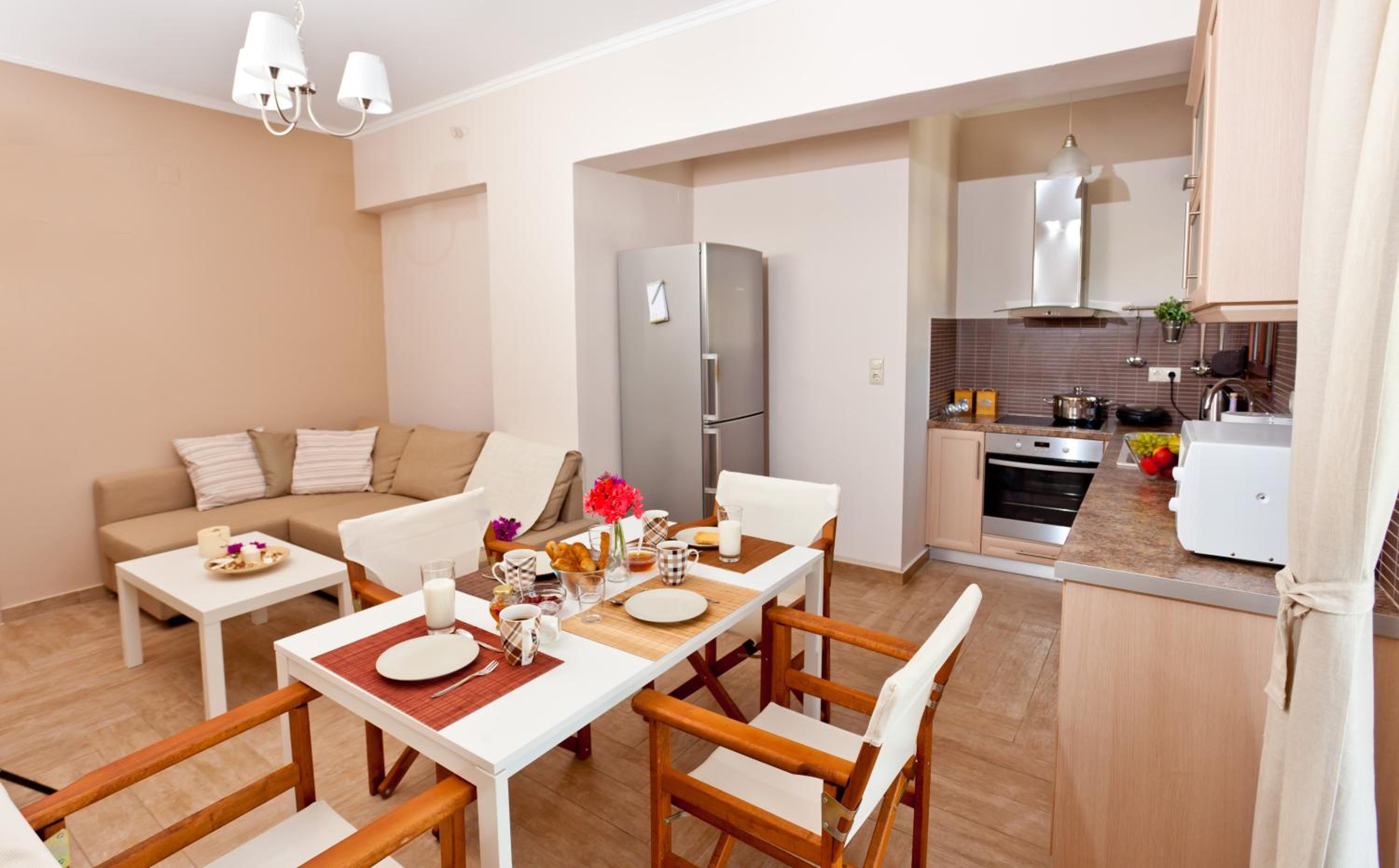 At Calm View, immerse yourself in the breathtaking scenery of Agios Petros from the comfort of your balcony. The air-conditioned rooms feature Coco-mat mattresses and modern amenities like a 32’’ flat-screen TV and a fridge. Some rooms even come with a kitchenette or a fully equipped kitchen for added convenience.