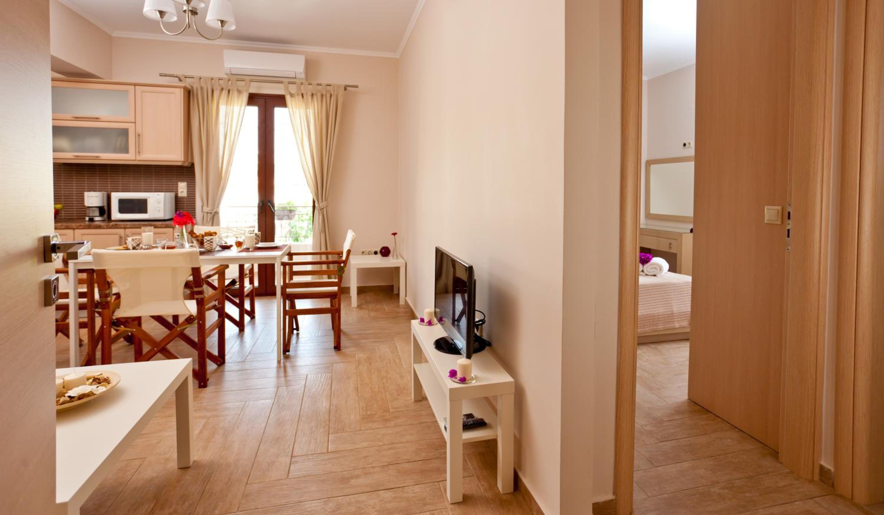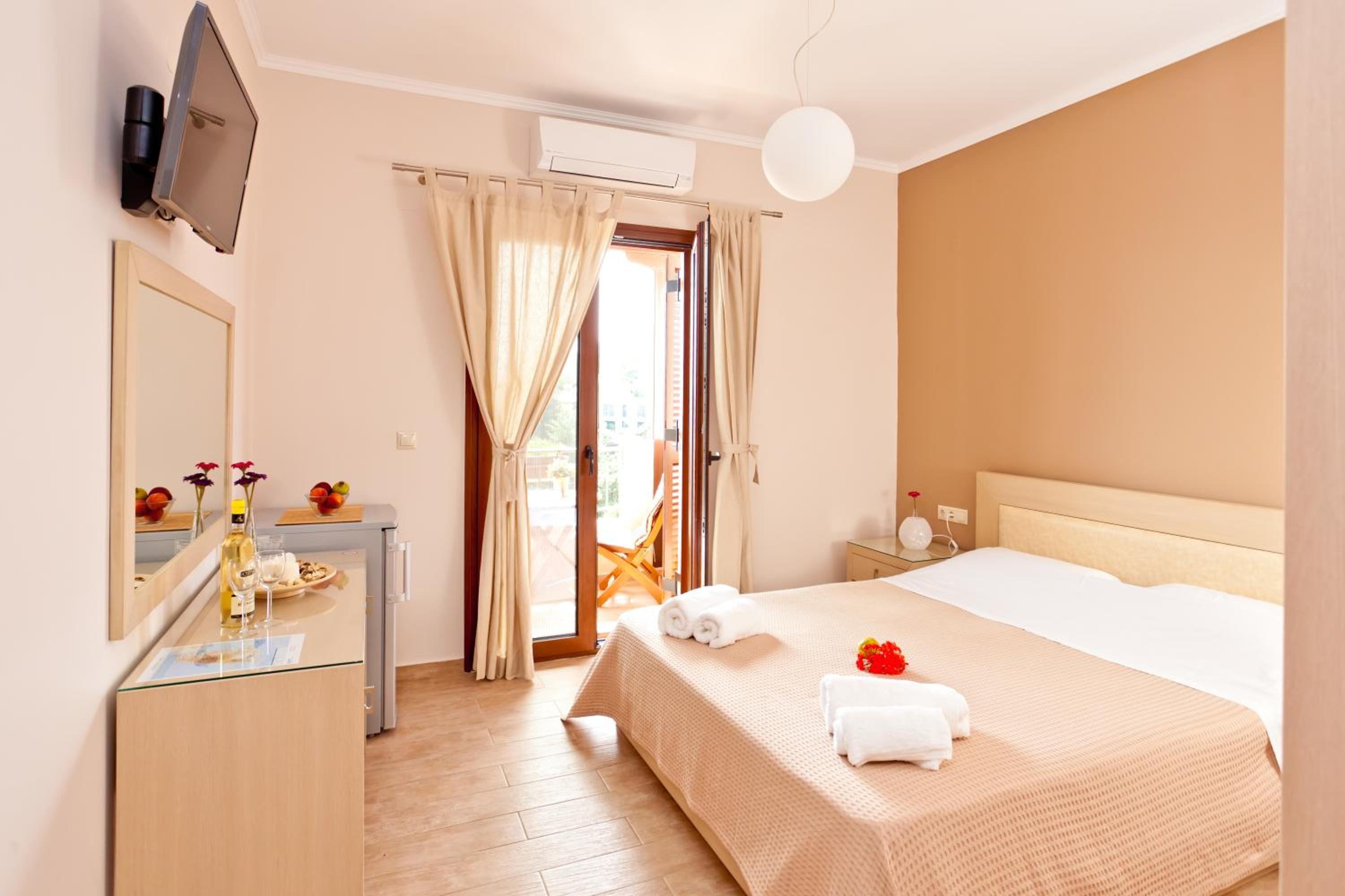 Дуже приємні, привітні та гостинні Maria та Giorgos. Щоразу запитують, чи все в порядку, чи треба нам що-небудь. В перший же день розповіли про найкрасивіші місця на острові, які варто відвідати, та відмітили їх на карті (карту досі зберігаю як сувенір). Відповідають на будь-які питання, навіть якщо вони не пов'язані безпосередньо з проживанням в отелі. В номері завжди чисто та охайно, номери прибираються щоденно звісно. На парковці завжди вистачало місць. Гарний садочок та вид на гори. Власне отель розташований в горах (приблизно 380 м над рівнем моря), що додає вражень!