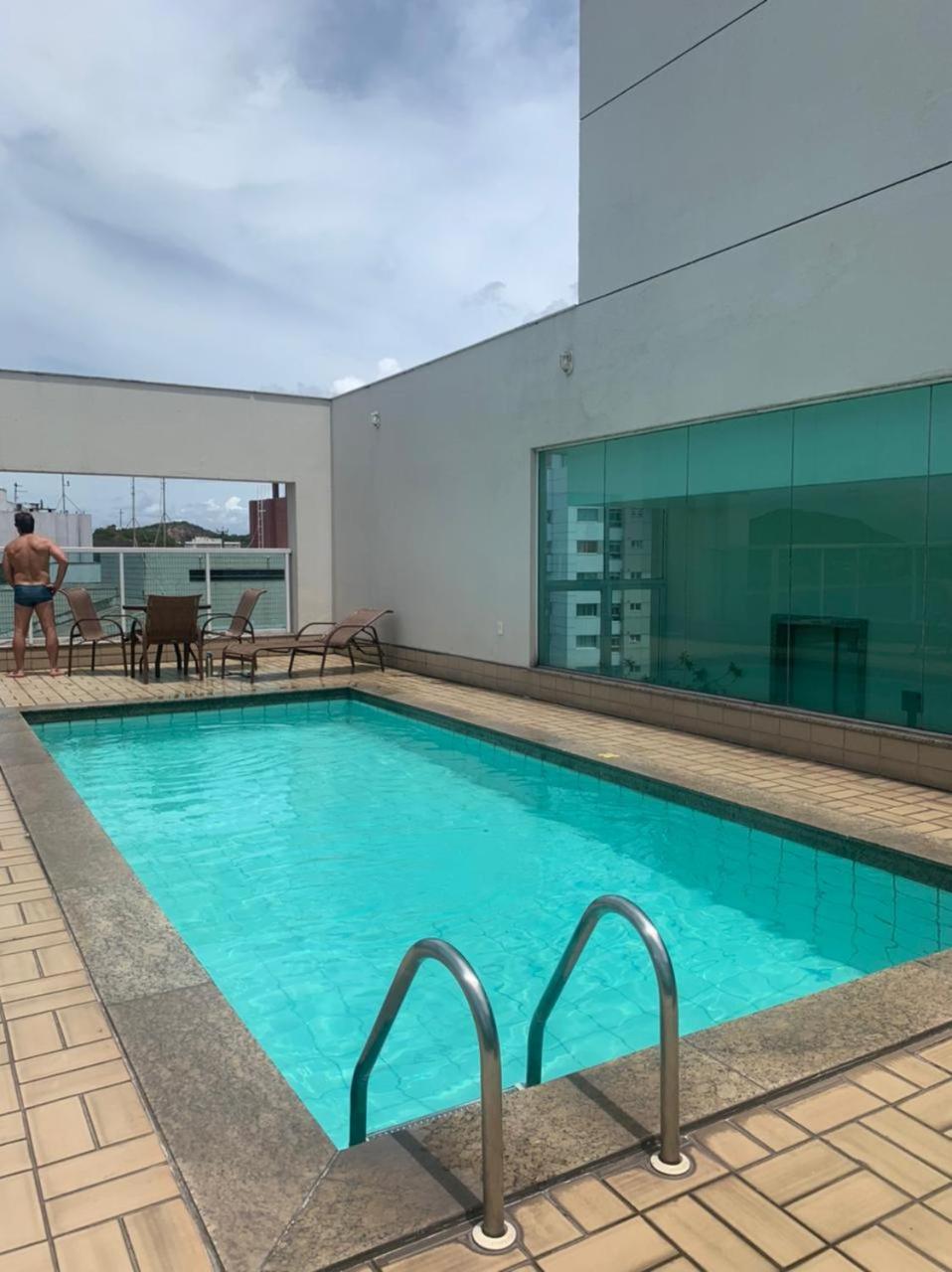 Enjoy a relaxing swim with stunning views at the rooftop pool of Flat IATE CLUBE Home Experience Praia do Canto. The perfect spot to unwind and soak up the sun.