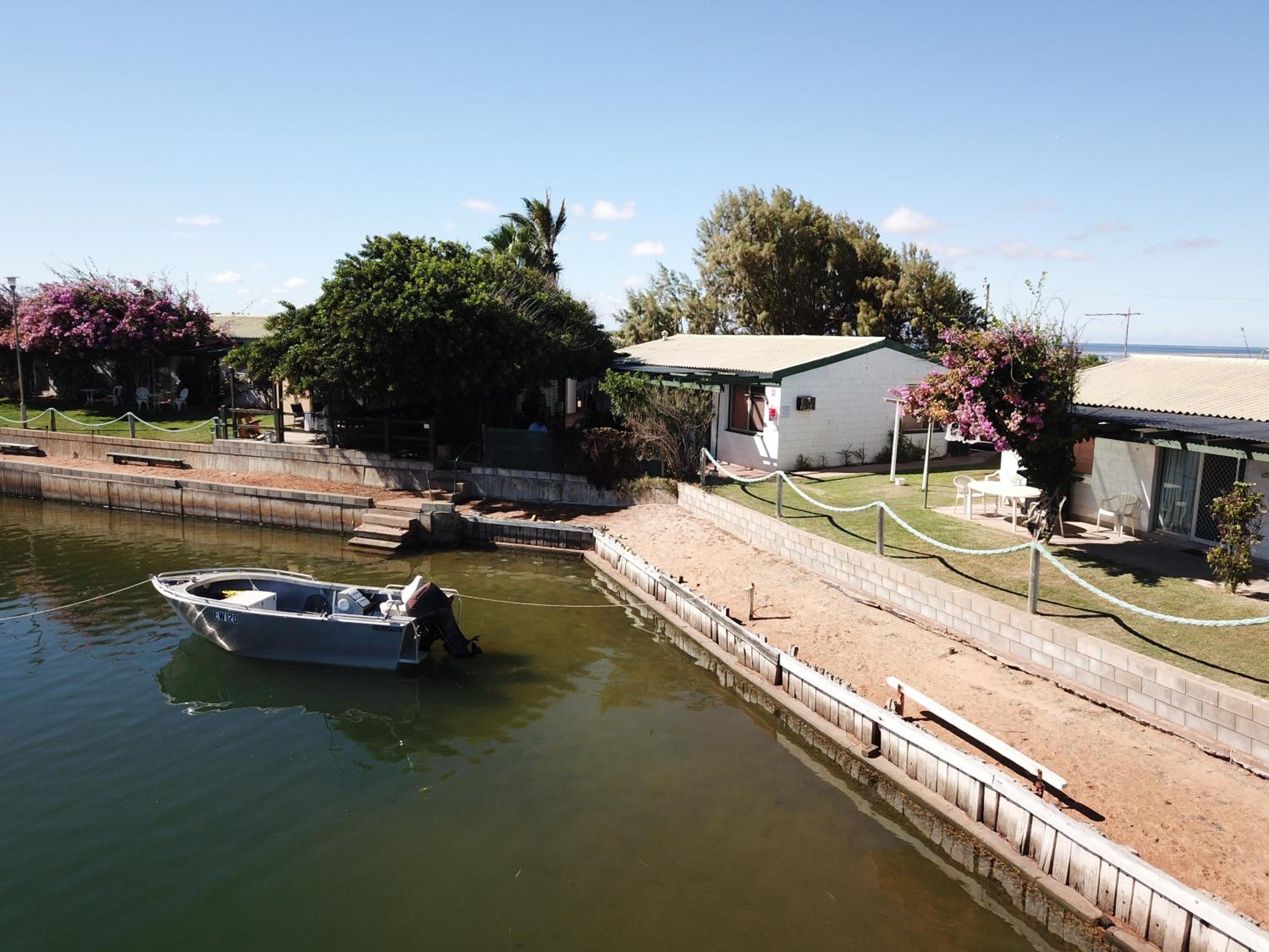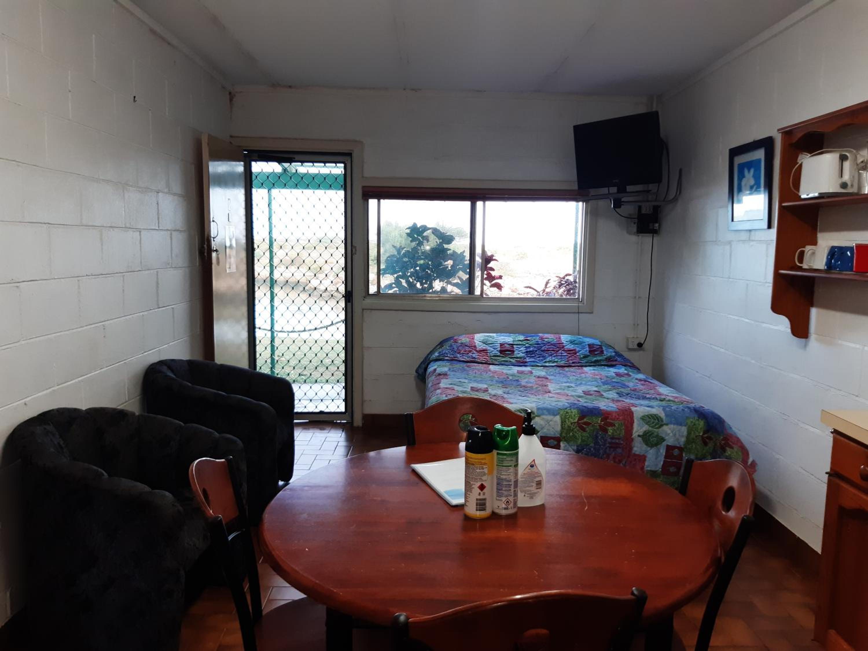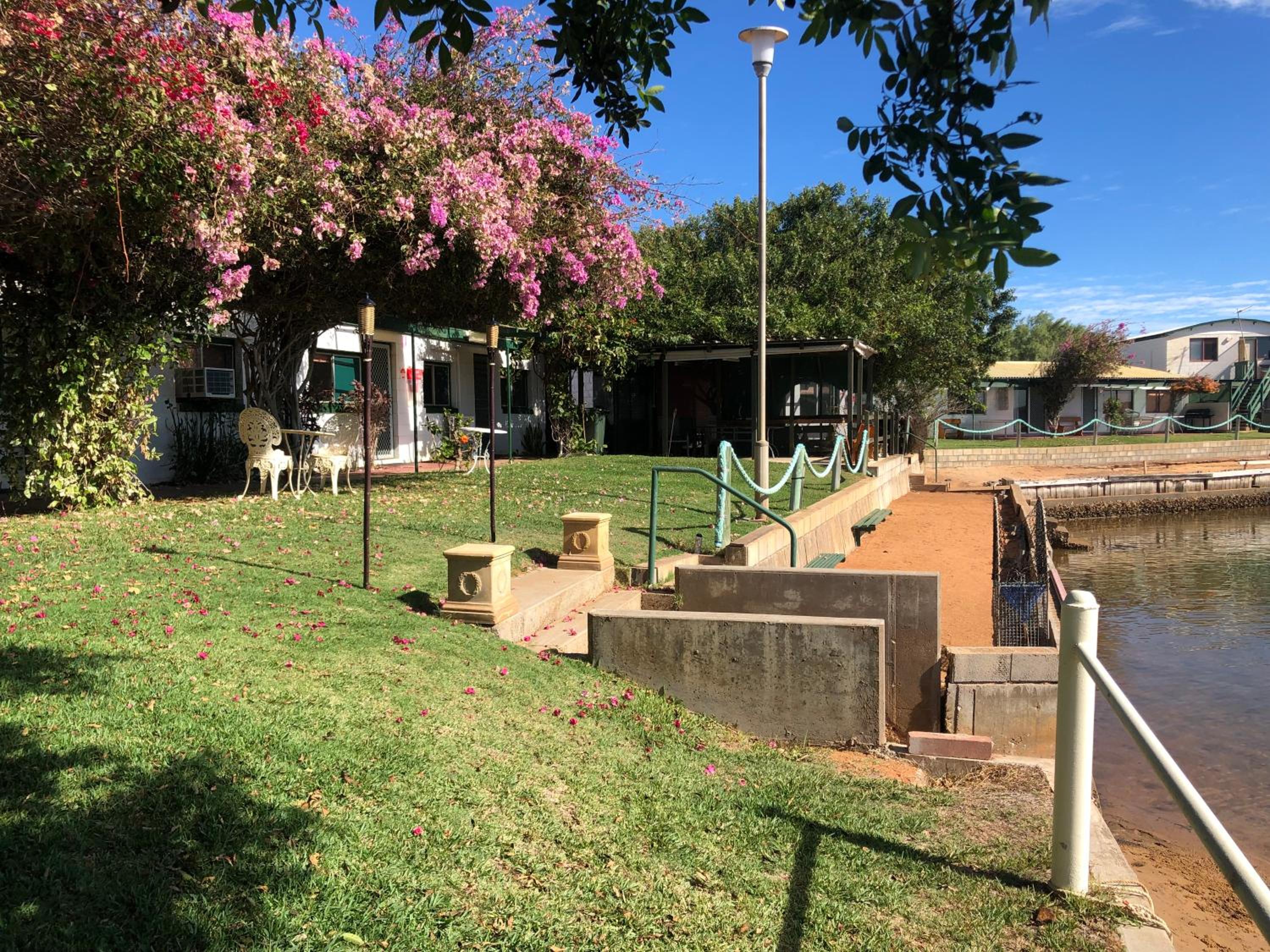 Pelican Waterfront Resort is placed at the tip of the Babbage Peninsula, only a short drive from Carnarvon but right in the middle of nature. There were water views and lovely shaded areas to sit on comfortable furniture. The host family was absolutely lovely, and the wifi was superb.